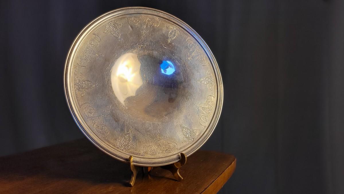This Vintage WALLACE Sterling Silver Platter has a beautiful chaised design and is in nice condition for age. A few small dings but overall a good example. 10" Wide. Approximately 318 Grams.