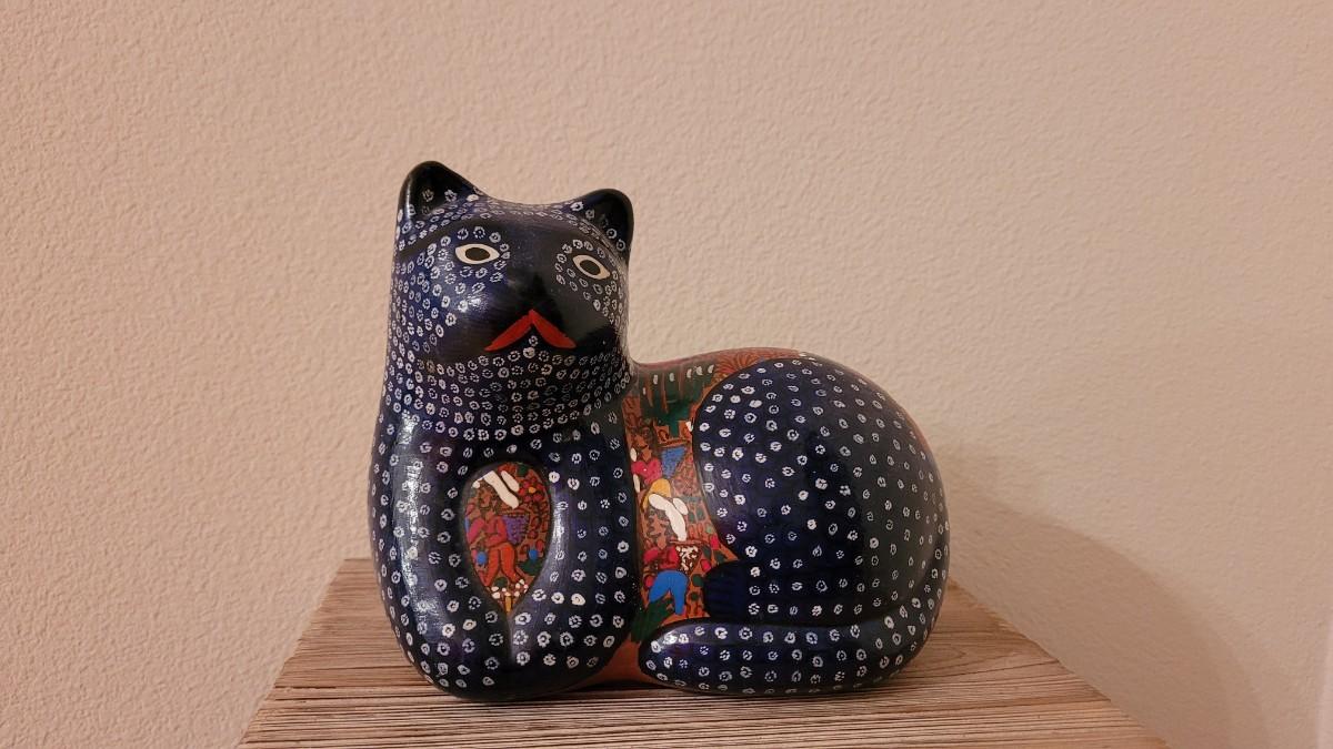 Lot 108: Vintage Mexican Folk Art Talavera Pottery Cat