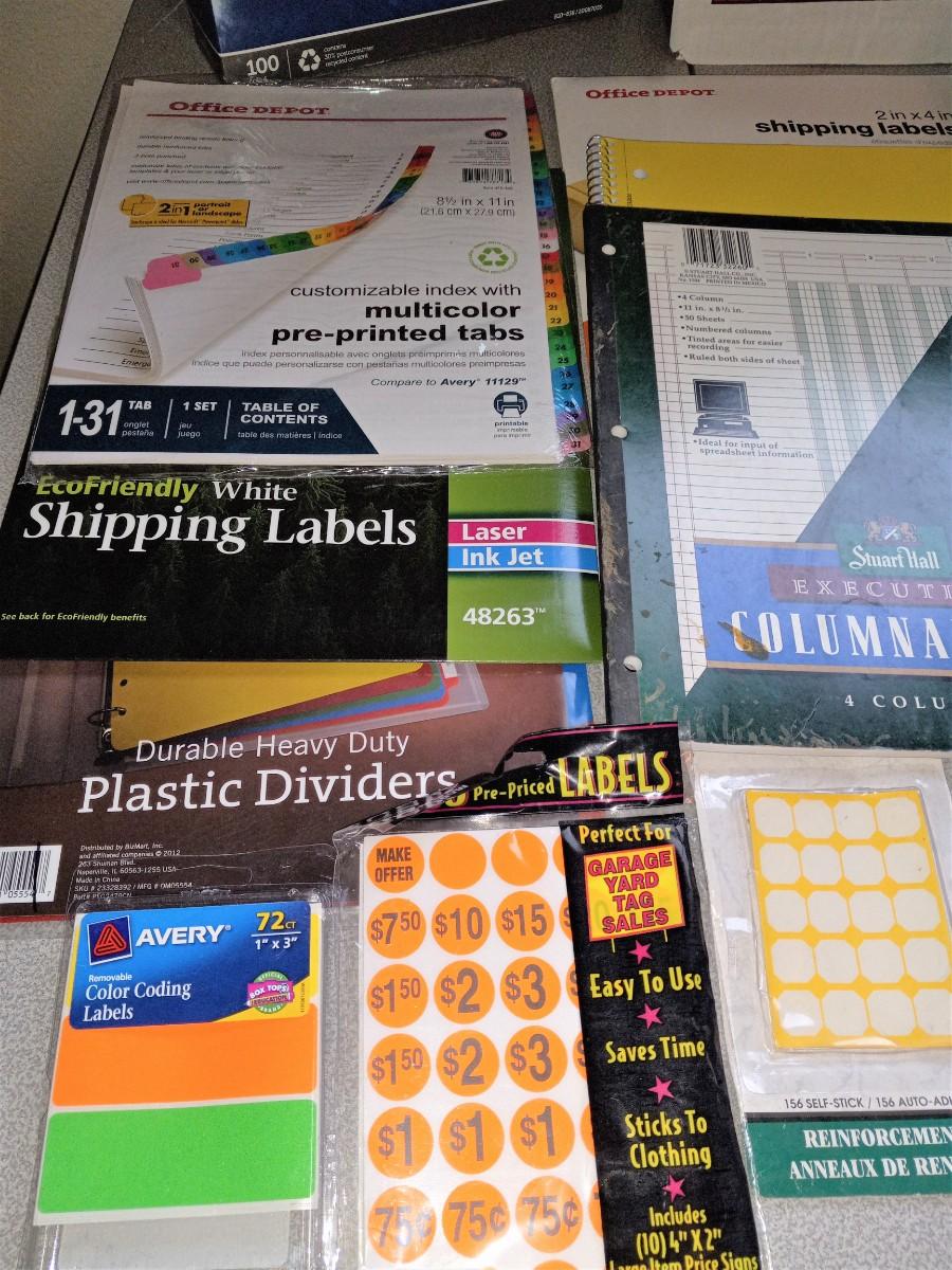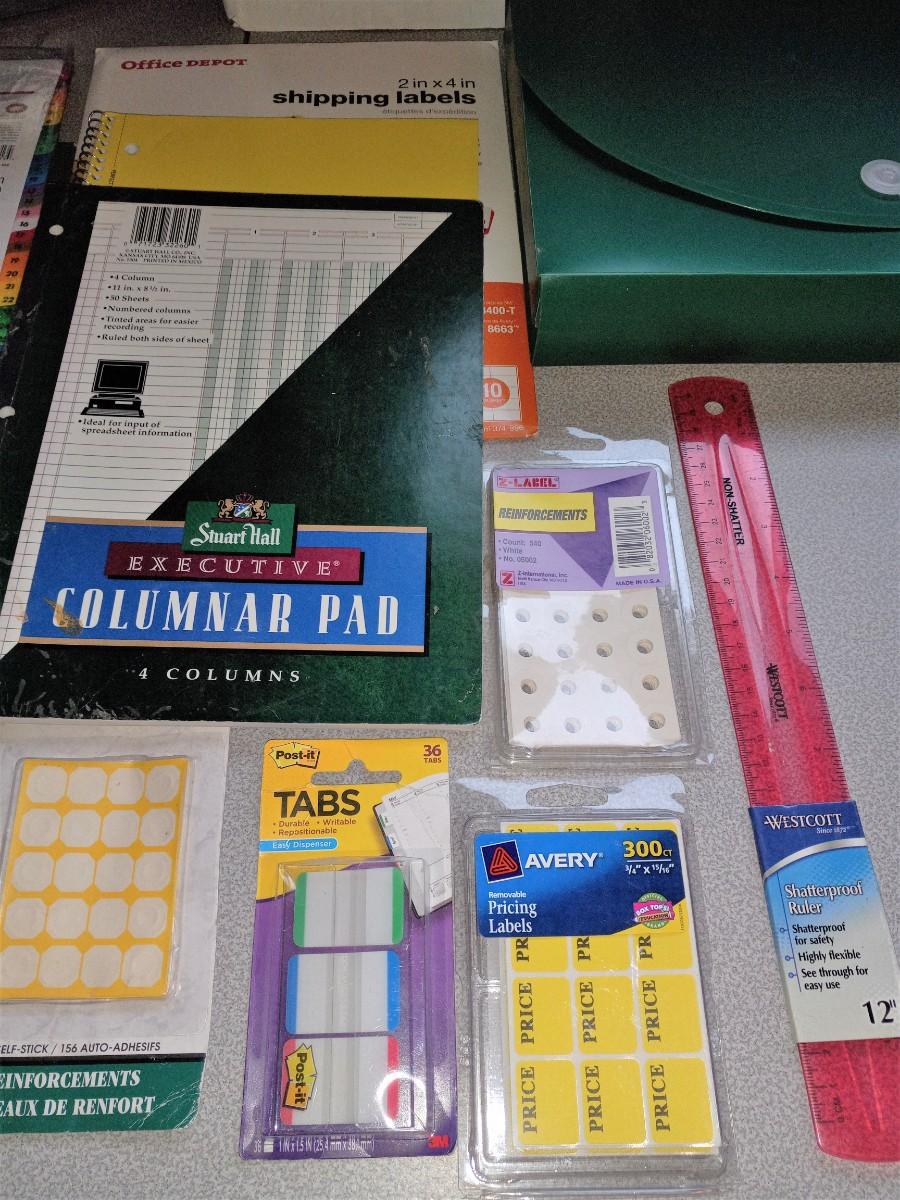 COLUMNAR PAD, PRICING STICKERS, RULER, TABS, SHIPPING LABELS AND MORE