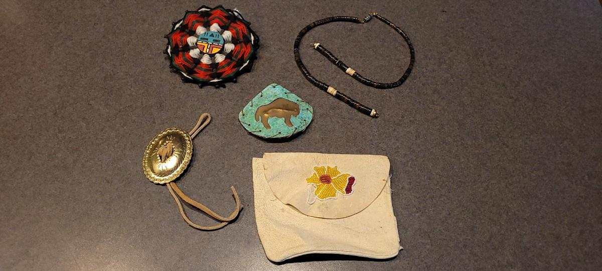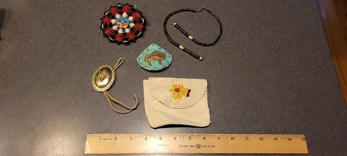 This grouping of items features a fun assortment of Native American themed adornments including a Heshi Beaded Necklace that needs a simple repair.