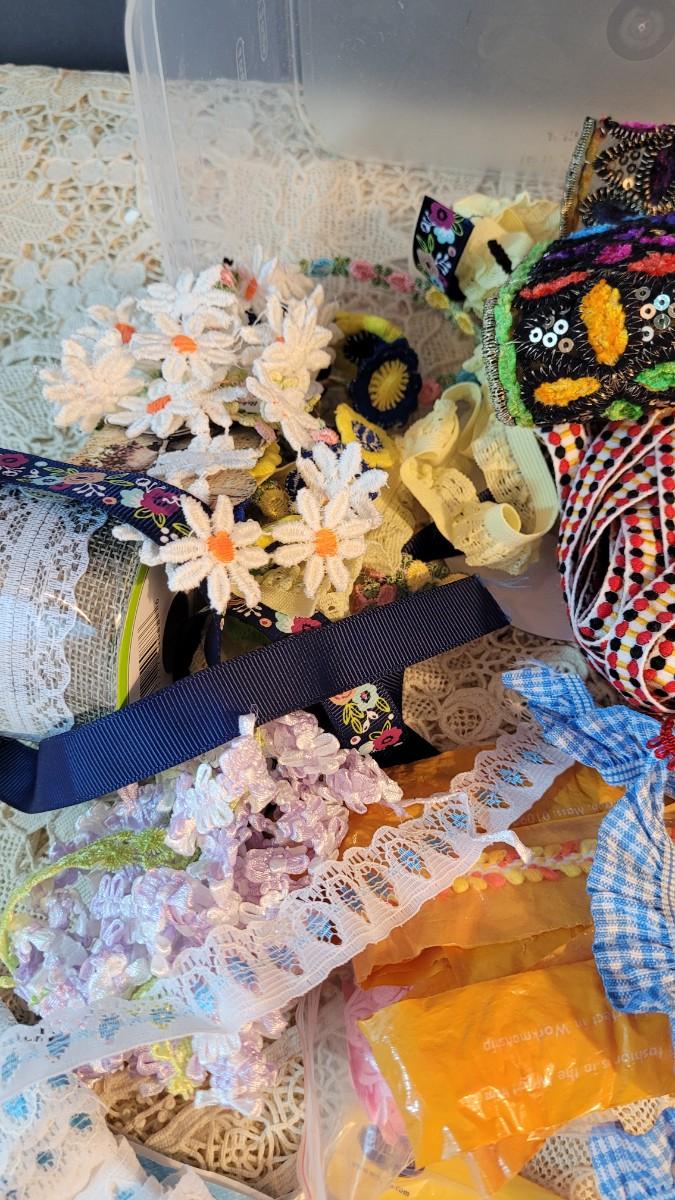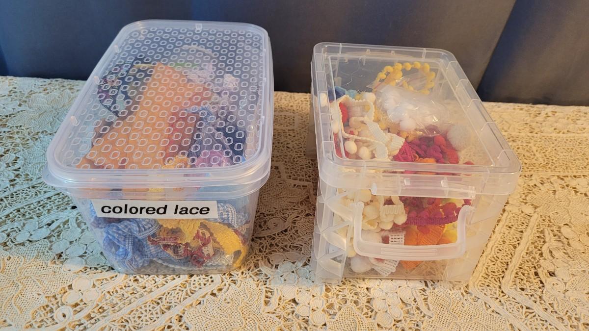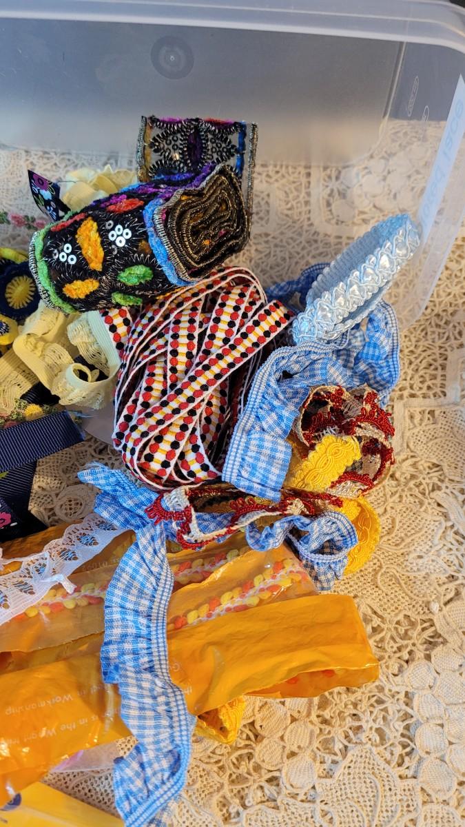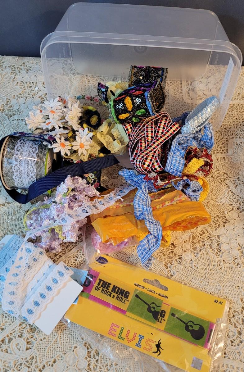 Lot 108: Trims & Ribbon in Containers