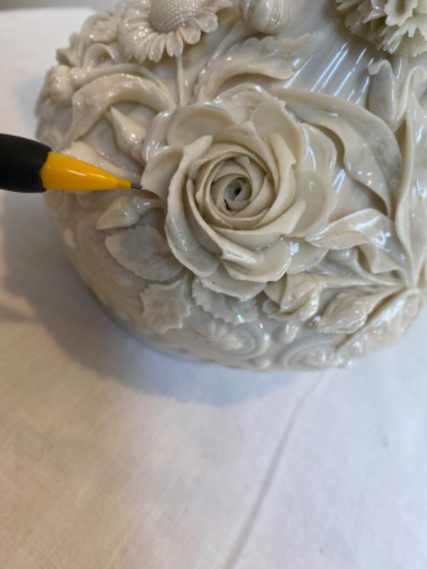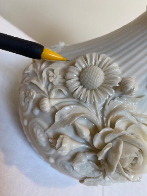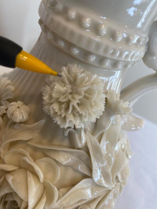 Beautiful antique Belleek black mark porcelain pitcher with damage (see pictures)
