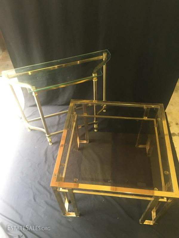 Two tables, one square coffee table or side table. One wall table. Wall table measures 33" x 12"x27". Square one is 28"x28" x21". This lot is available for local pick up in Waynesville, NC only.