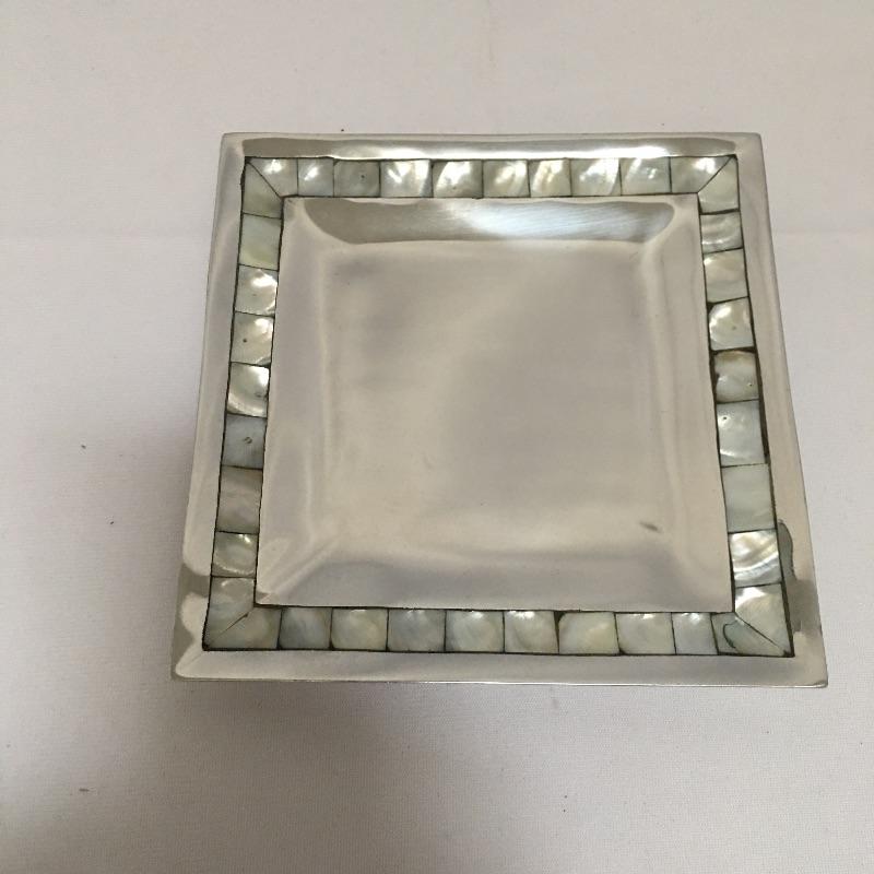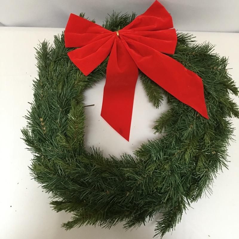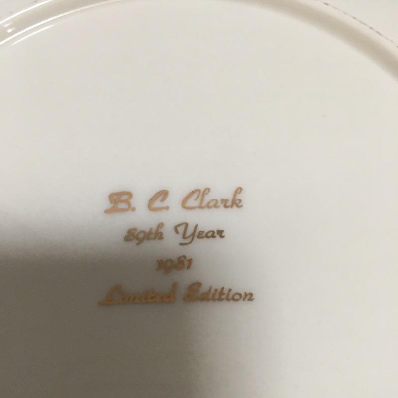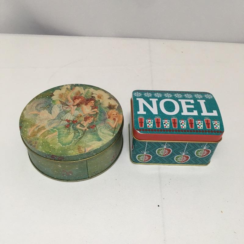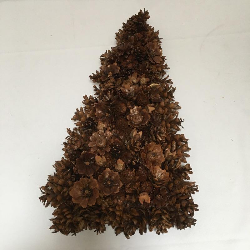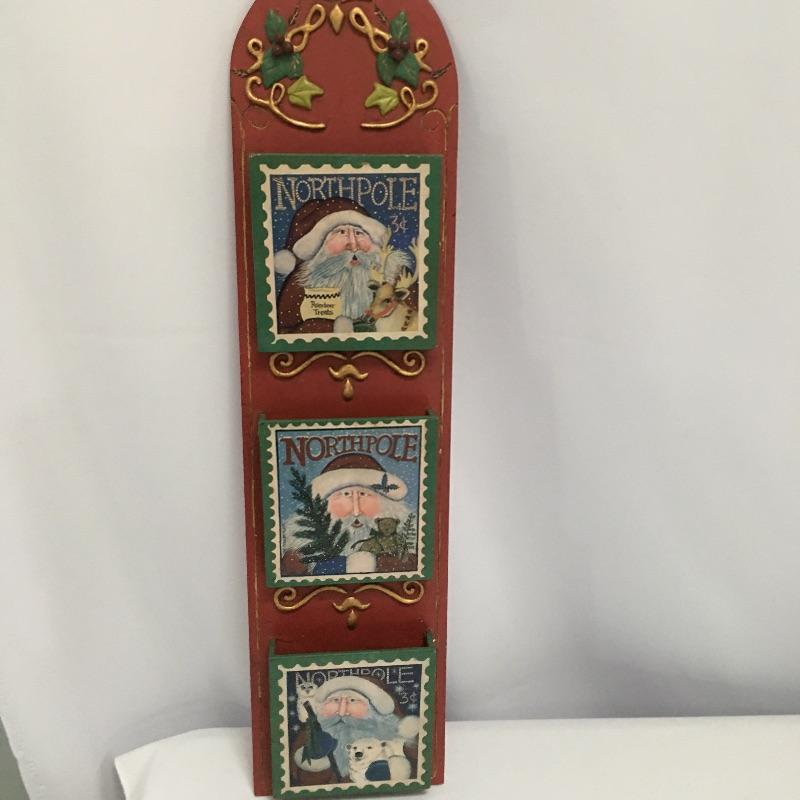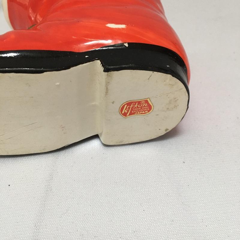 Christmas lot includes four strings of vintage lights, three tops sized P/M, wreath, pinecone tree, pair of elves, Mr and Mrs Claus, tray, six salad plates an two dinner plates by B.C. Clark, Mother of Pearl inlaid plate, Lefton boot and more. Round wreath measures 17”D.