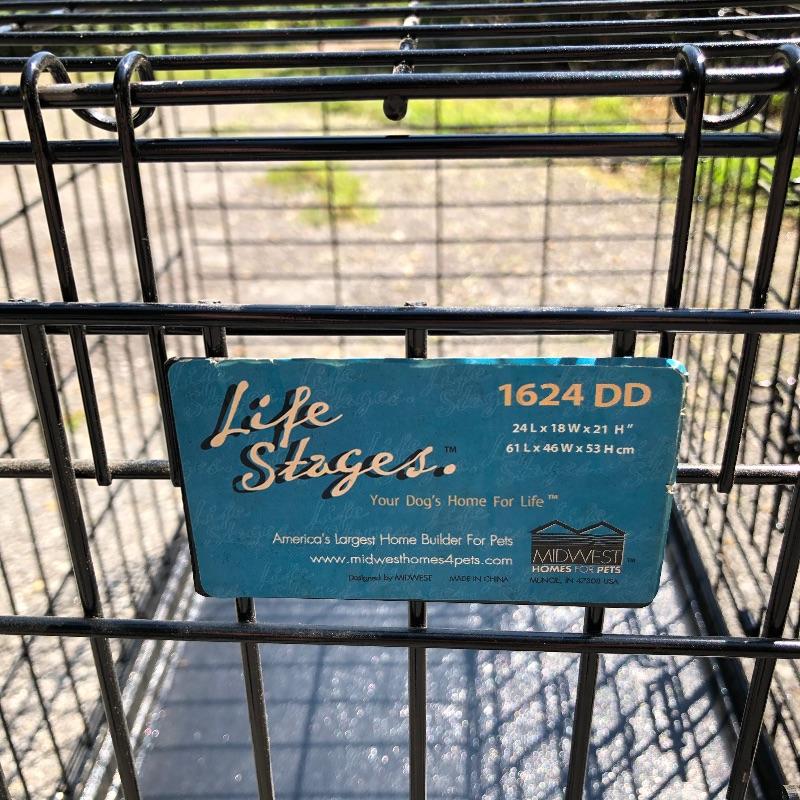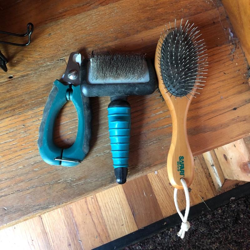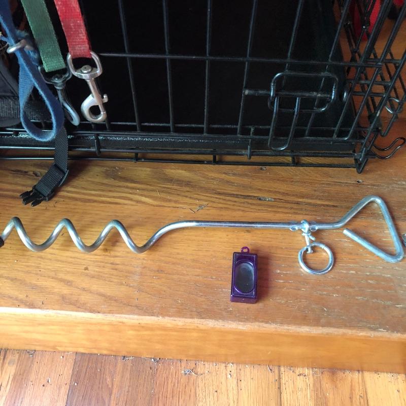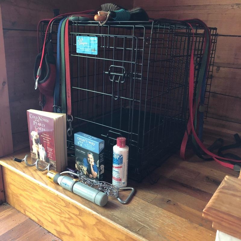 A little bit of everything in this dog care lot. Included are brushes, nail PediPaws, leashes, book, stake and more. The medium size crate is in excellent condition and has the benefit of both a side and front door, see images for dimensions.