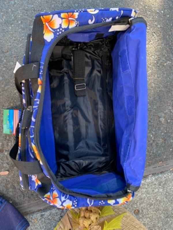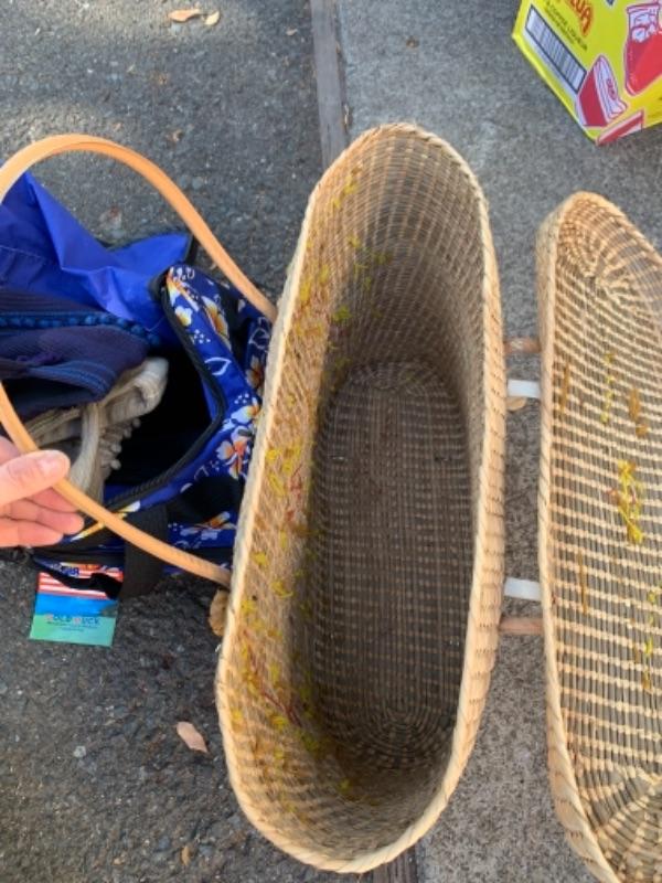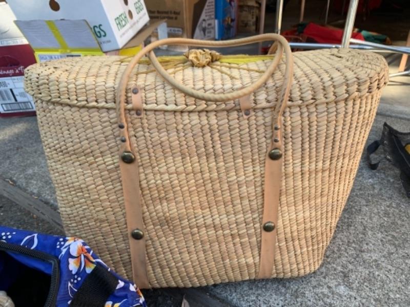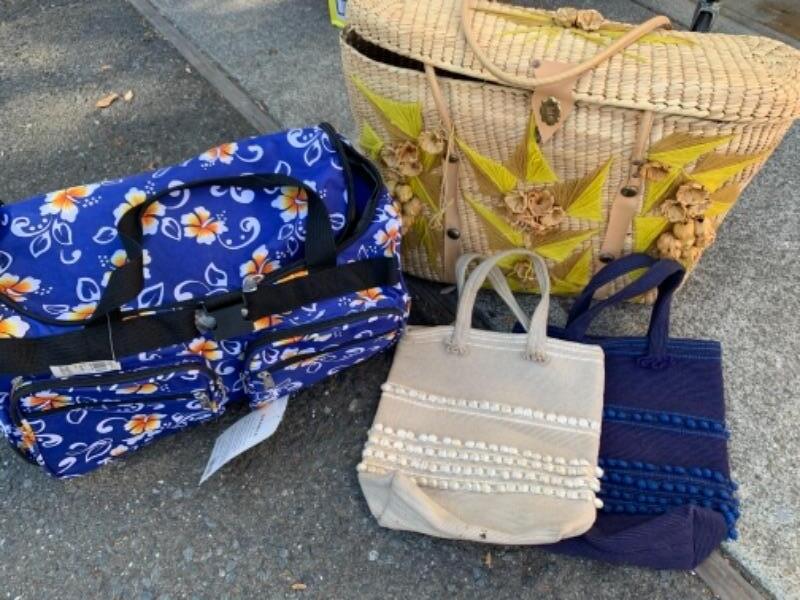 Lot 108. Duffle bag, wicker bag and two canvas totes--$25