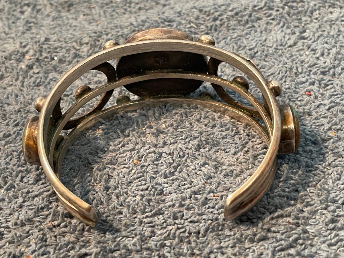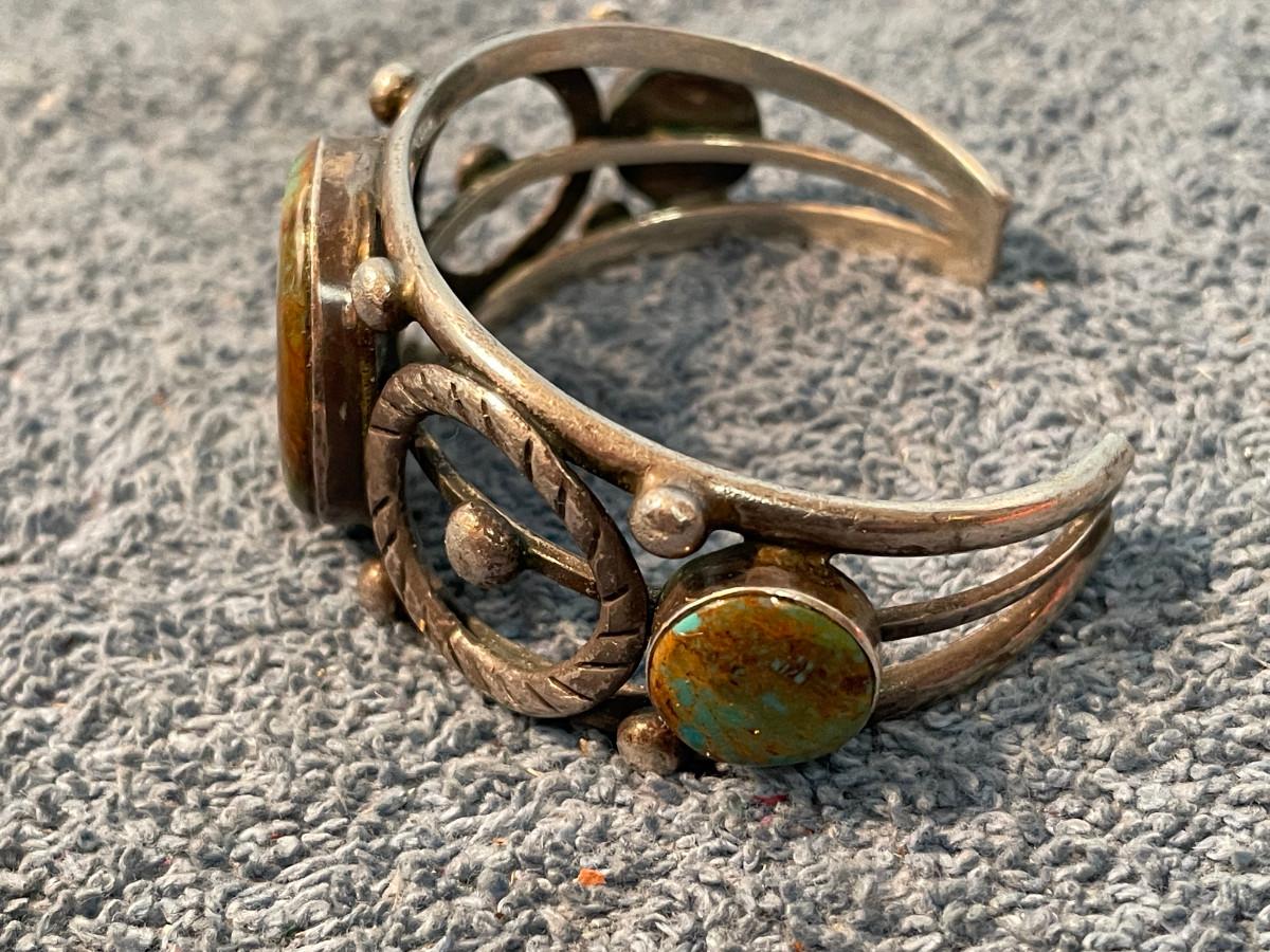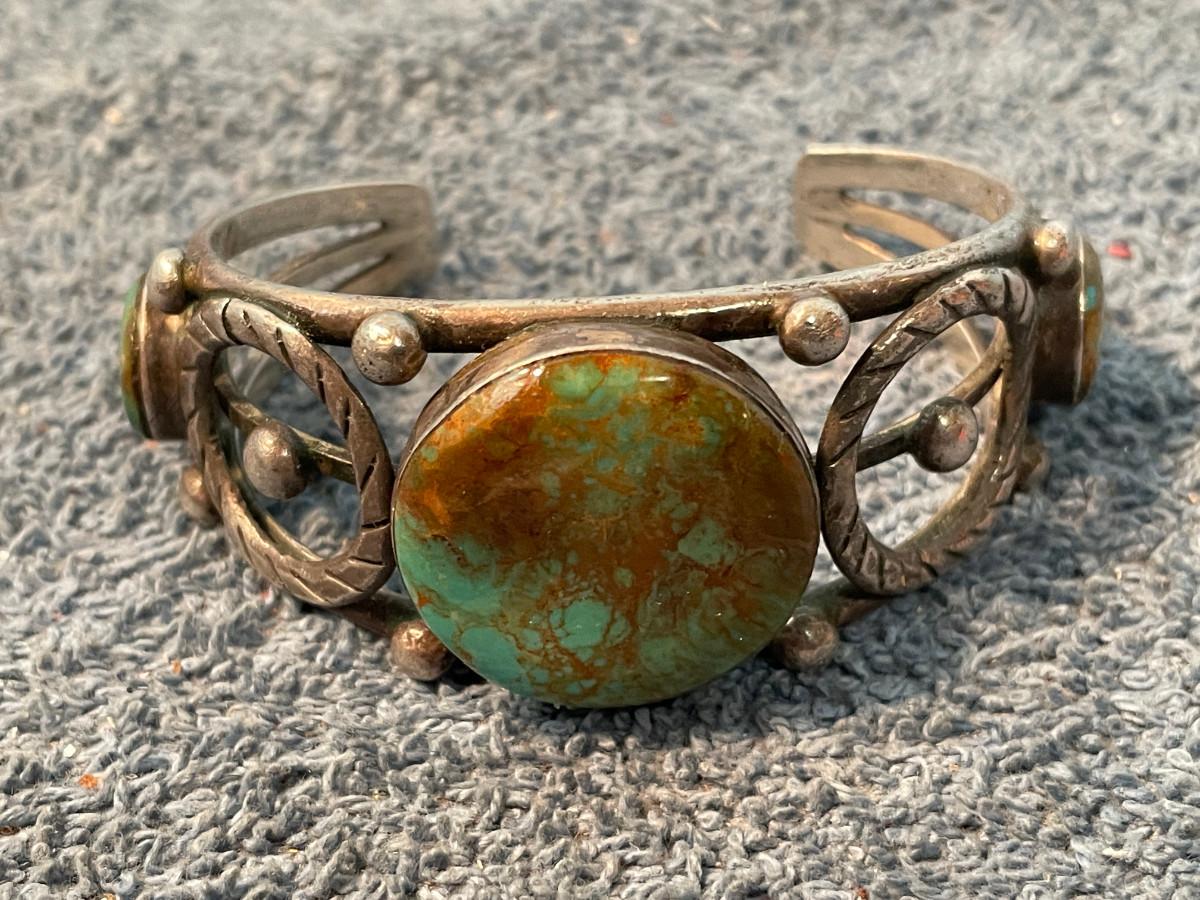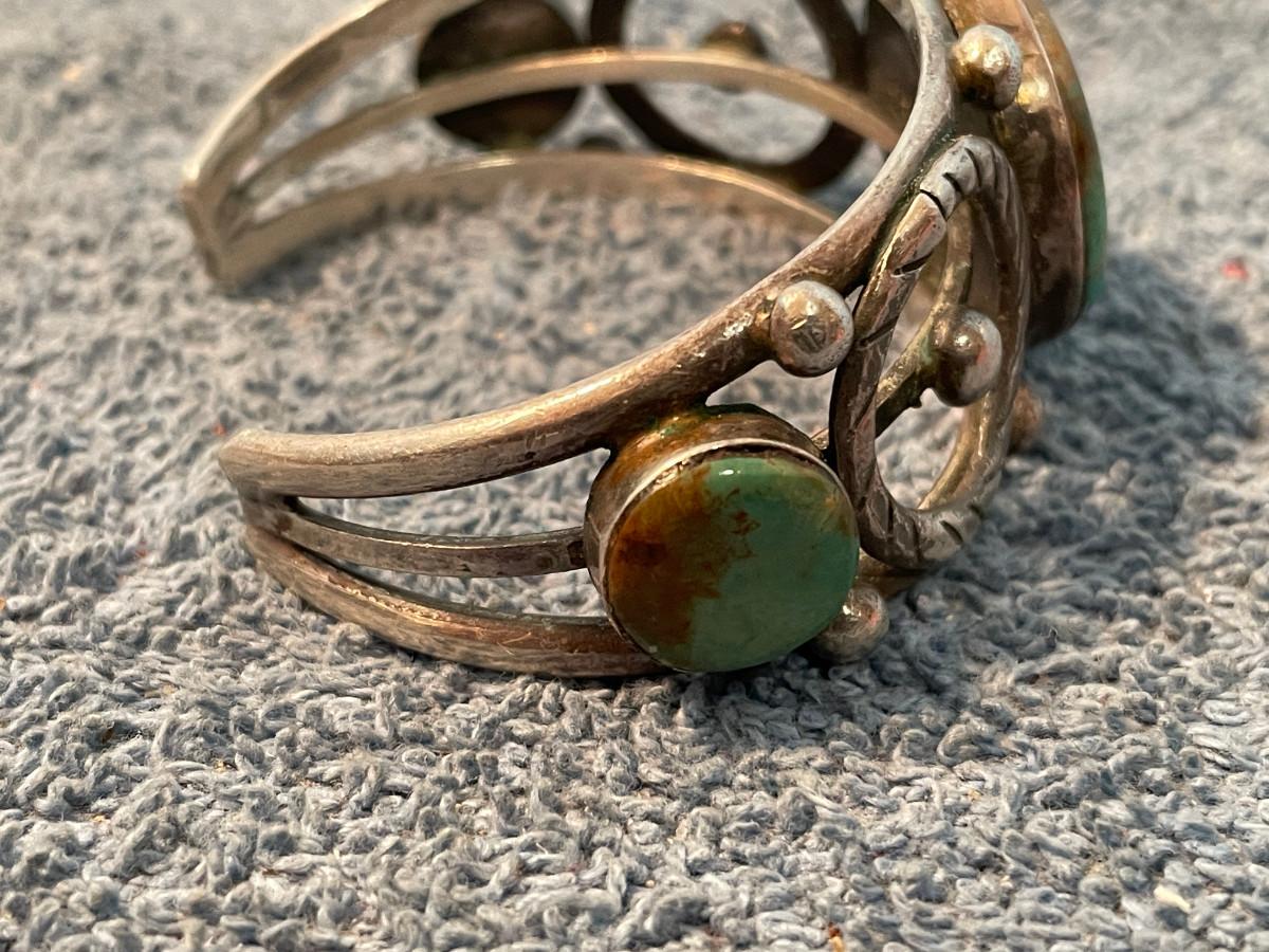 LOT 108 FABULOUS STERLING TURQUOISE NATIVE AMERICAN CUFF BRACELET