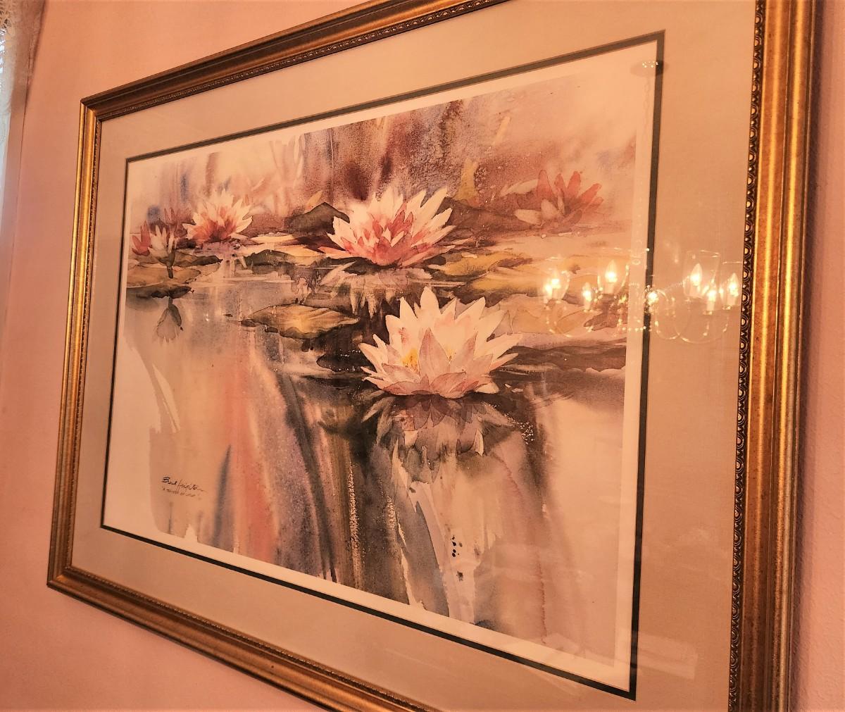Very pretty print by Brent Heighton "A Shimmer of Light" - framed - double matted, 37" x 29" - good condition.