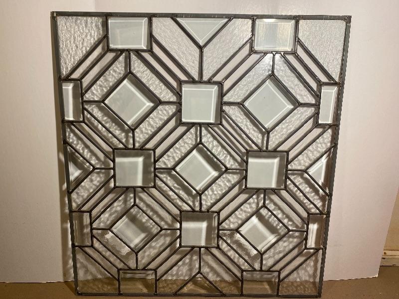 Lot# 108 Heavy Leaded Glass Window Beveled Textured No cracks!! 30” x 28”
