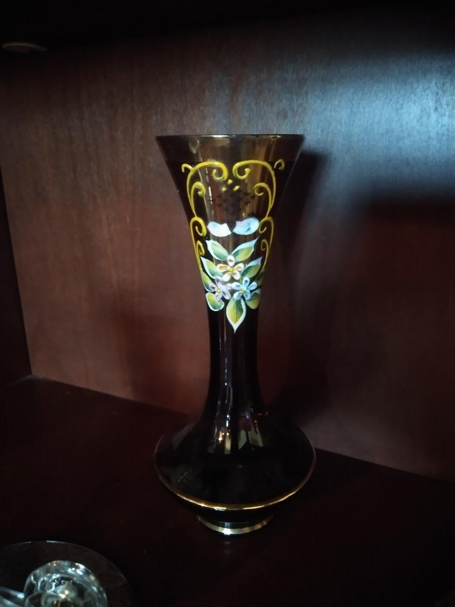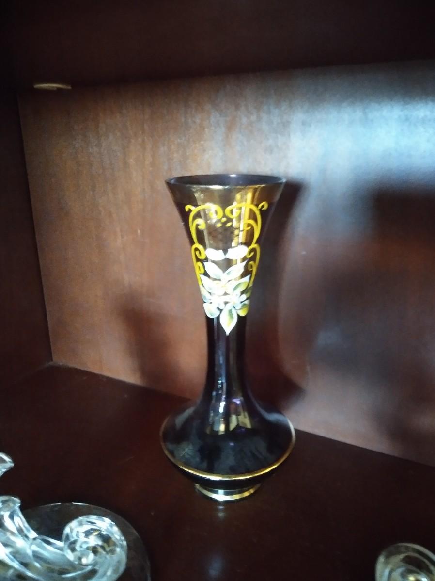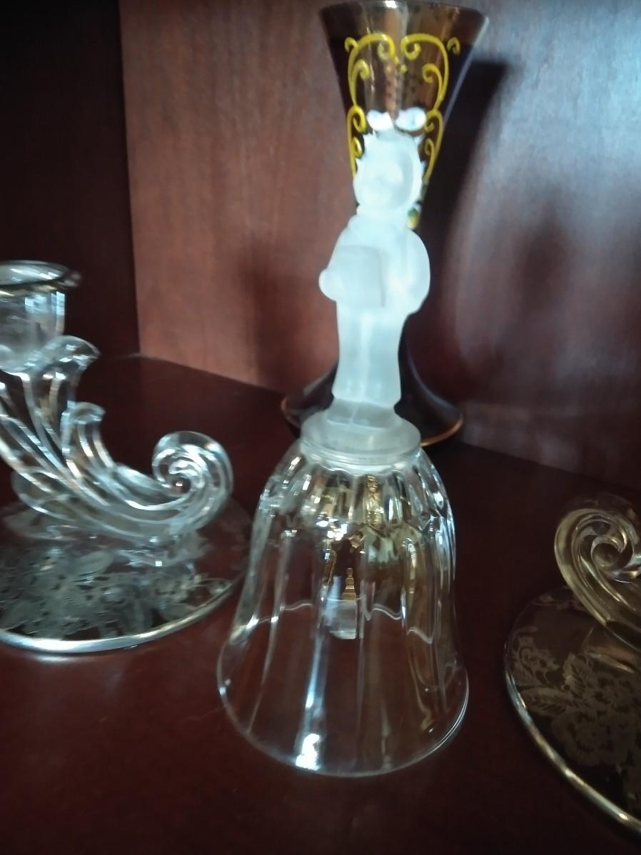 LOT 108 HUMMEL BELL, GLASSWARE AND HAND PAINTED VASE (HU)