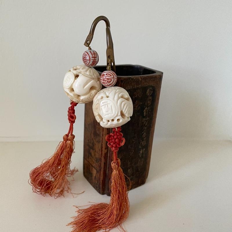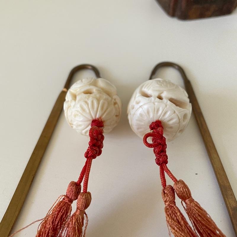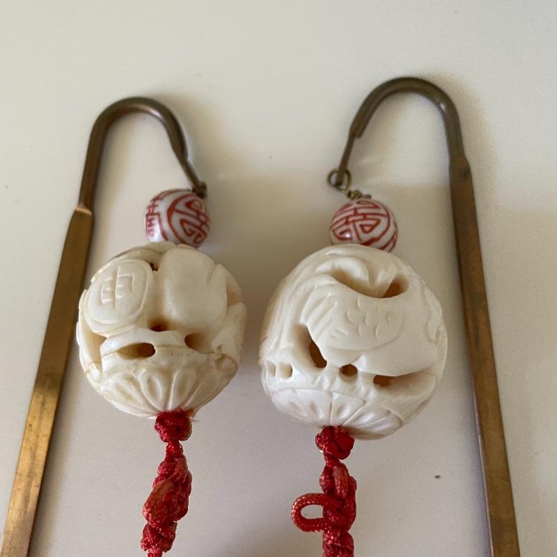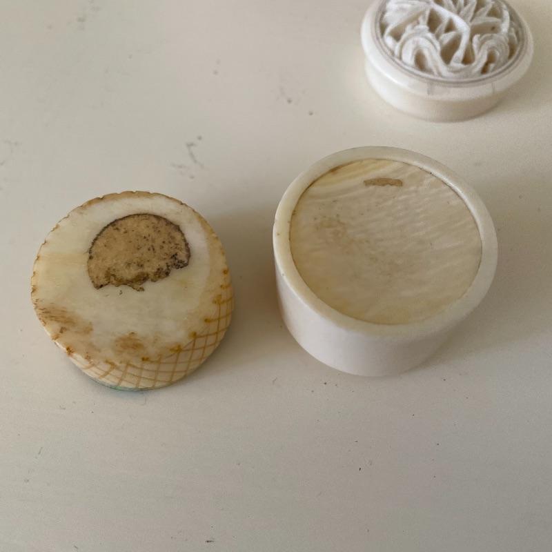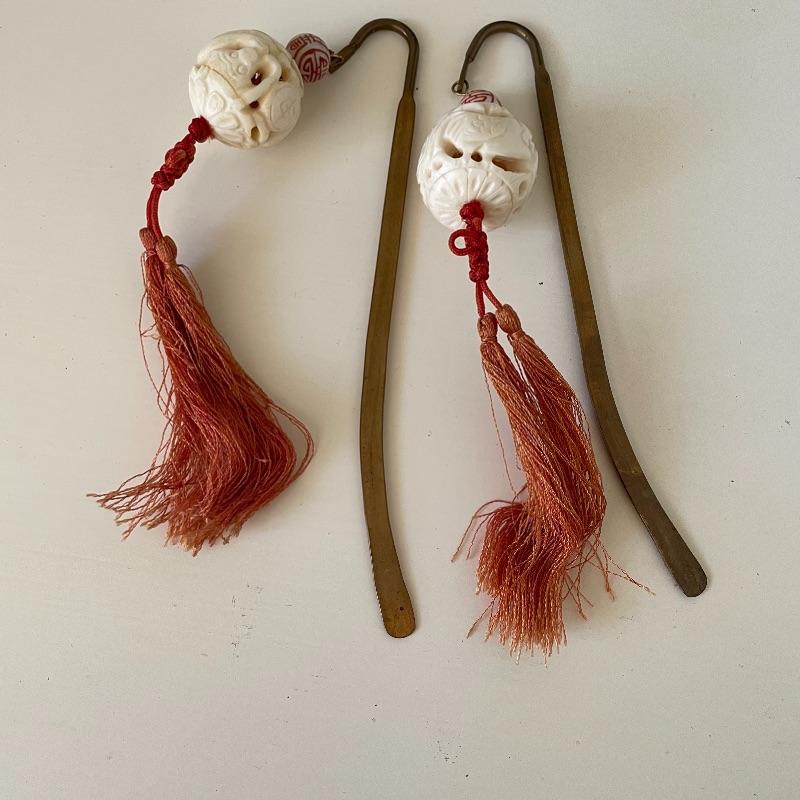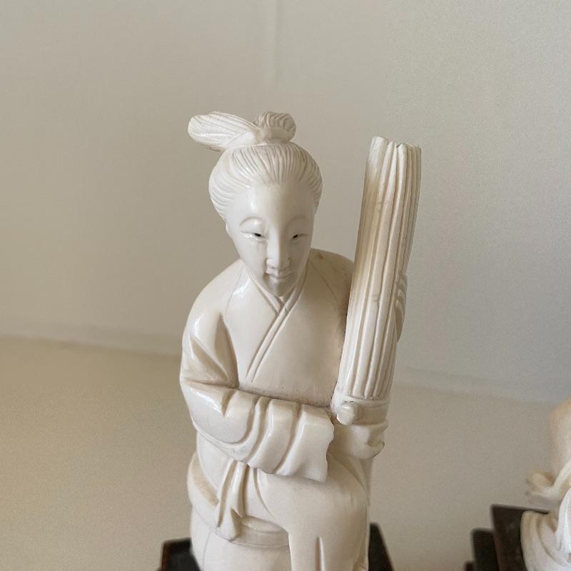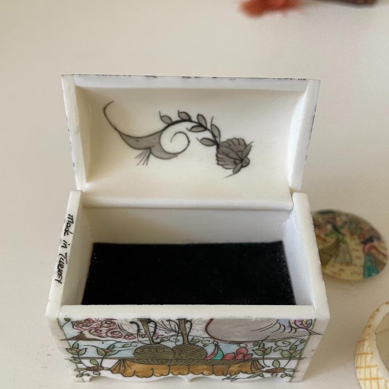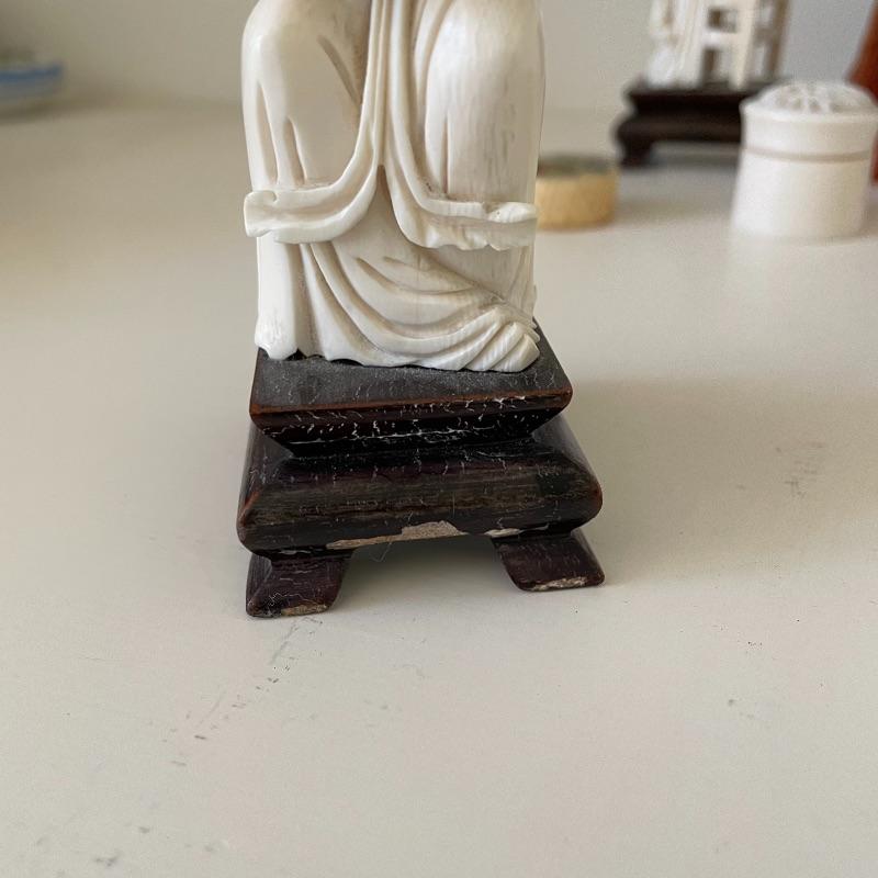Seven fascinating figurines and boxes believed to be all from East Asian countries with the exception of the Turkish box. Two sitting women are attached to their stands with metal. Lot features a lovely hand painted box, two small boxes and two book marks with an old wooden tumbler. The women sit about 5” tall with their wooden stands. We are not able to determine materials like bone or resin. Make an appointment for the preview and come check these neat trinkets out! See photos. Shipping available.