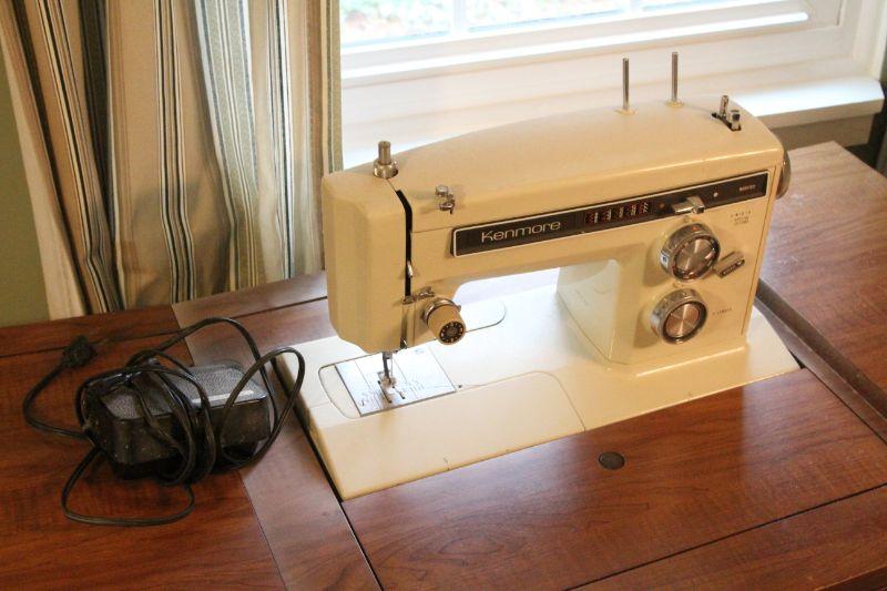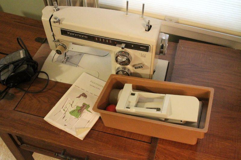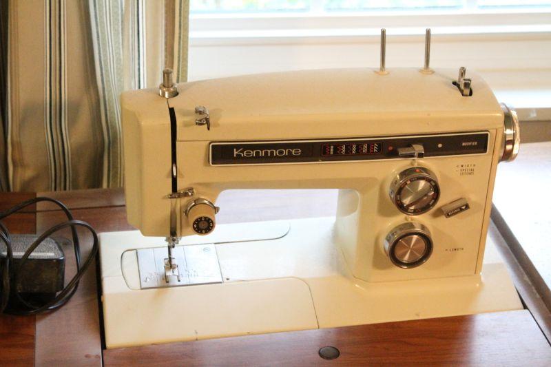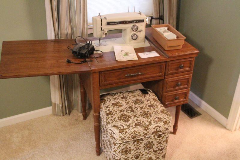 Lot 108: Kenmore Sewing Machine and Sewing Basket Storage Stool