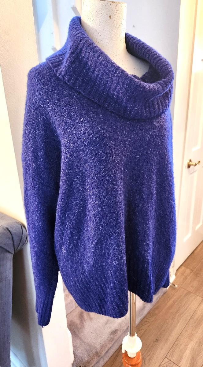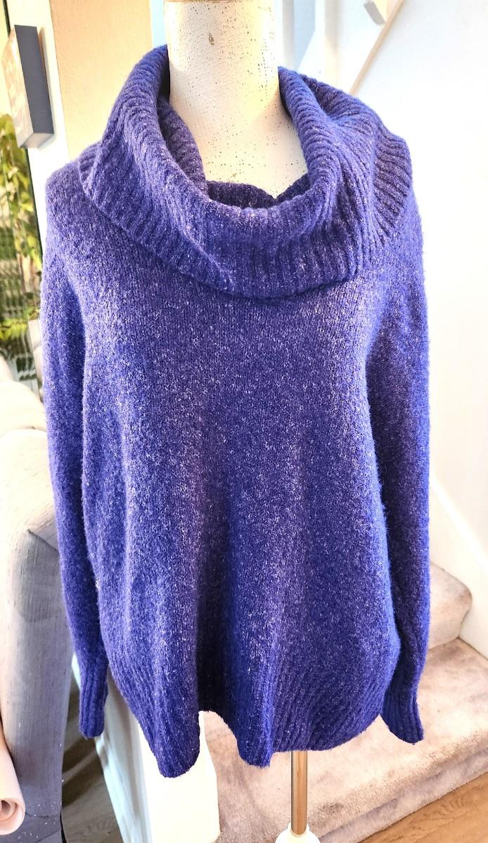 Fully marked (label and metal tag on reverse) Michael Kors perriwinkle blue cowl necked sweater. Good condition. Size Medium.