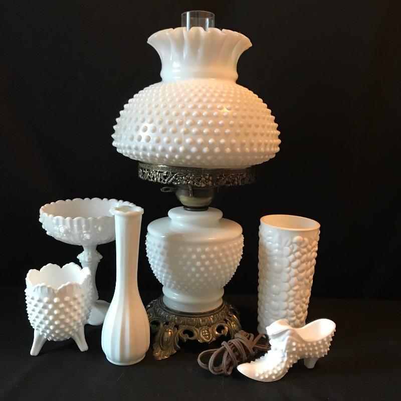 Lot 108 - Milk Glass Lamp and More