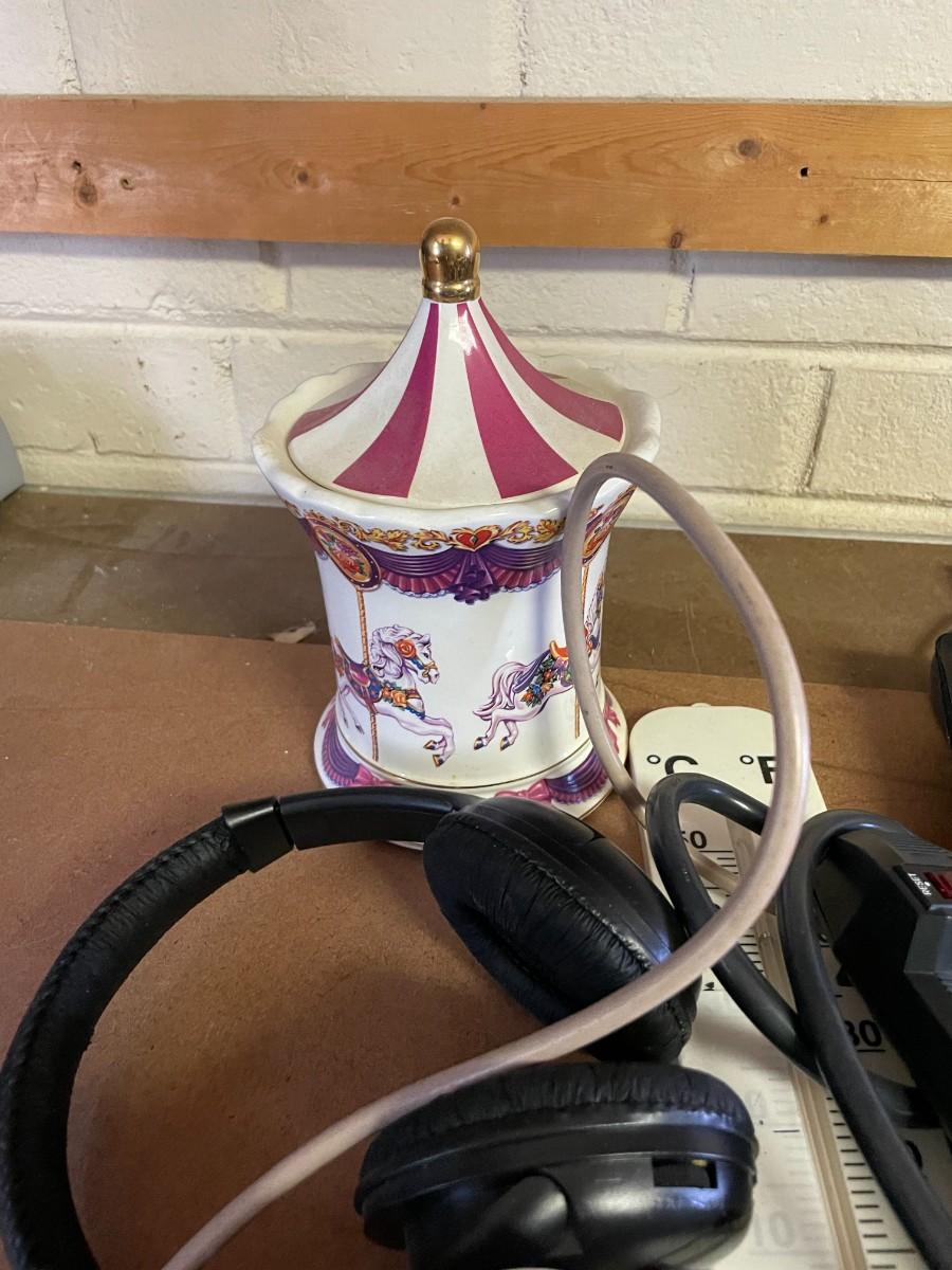 misc. electronics, music box.