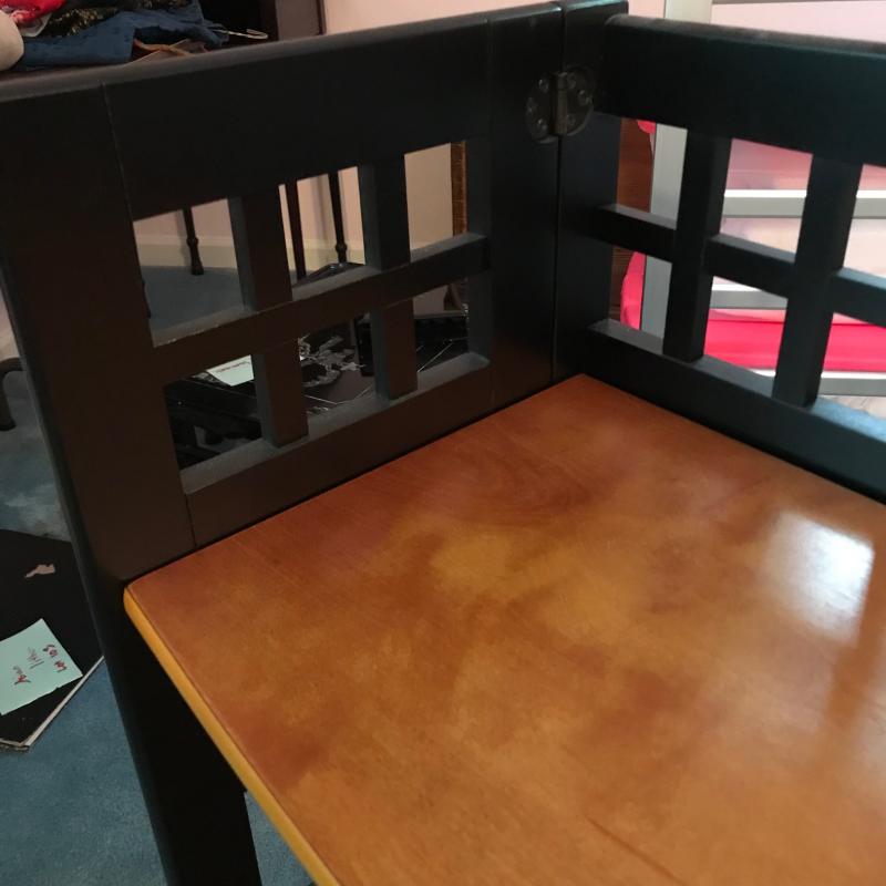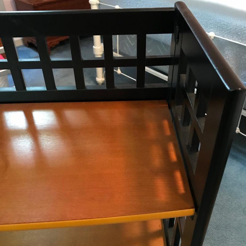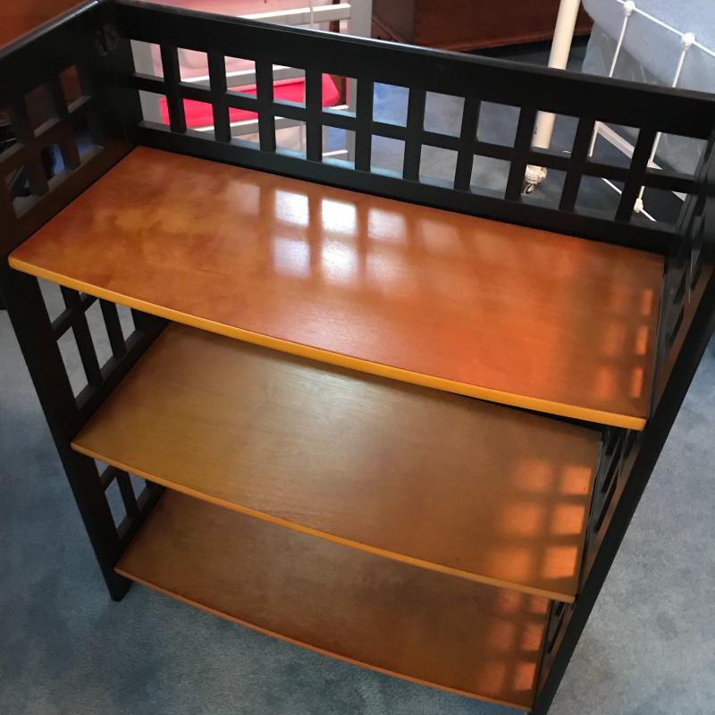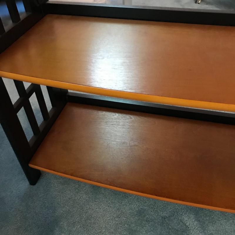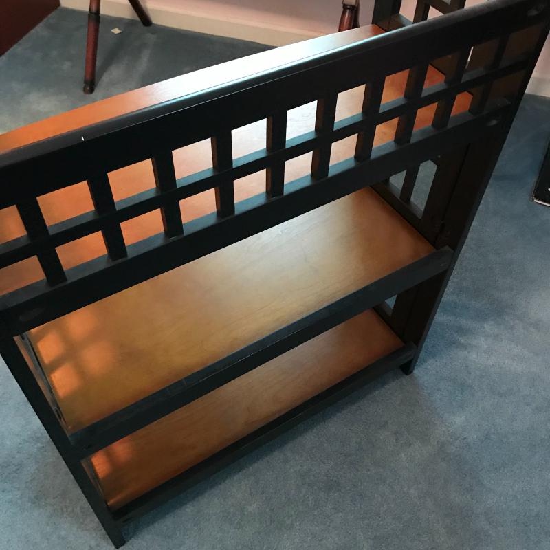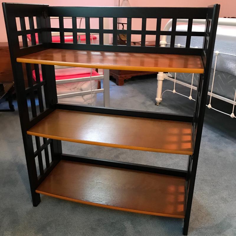 This wooden and black painted shelf collapses and is in great condition. Approx. 29” x 12” x 36”. See pics. No shipping available. Local pickup only in Arden, NC.