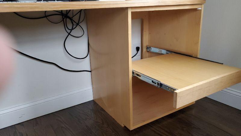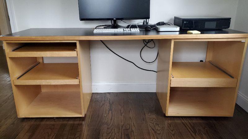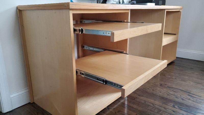 Long desk with pull out shelves.