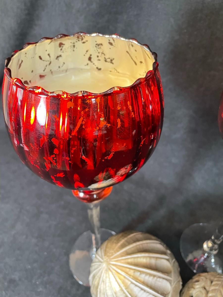 Lot 108  Pair of Glass Candle Stands & 3 Orbs