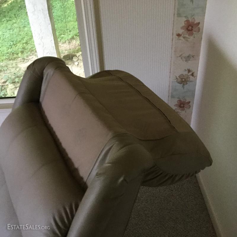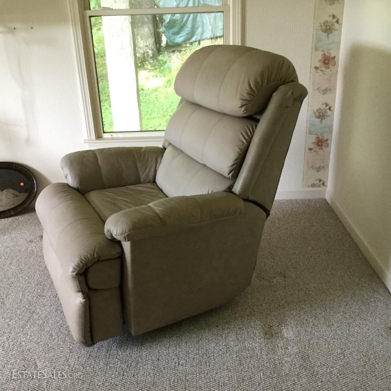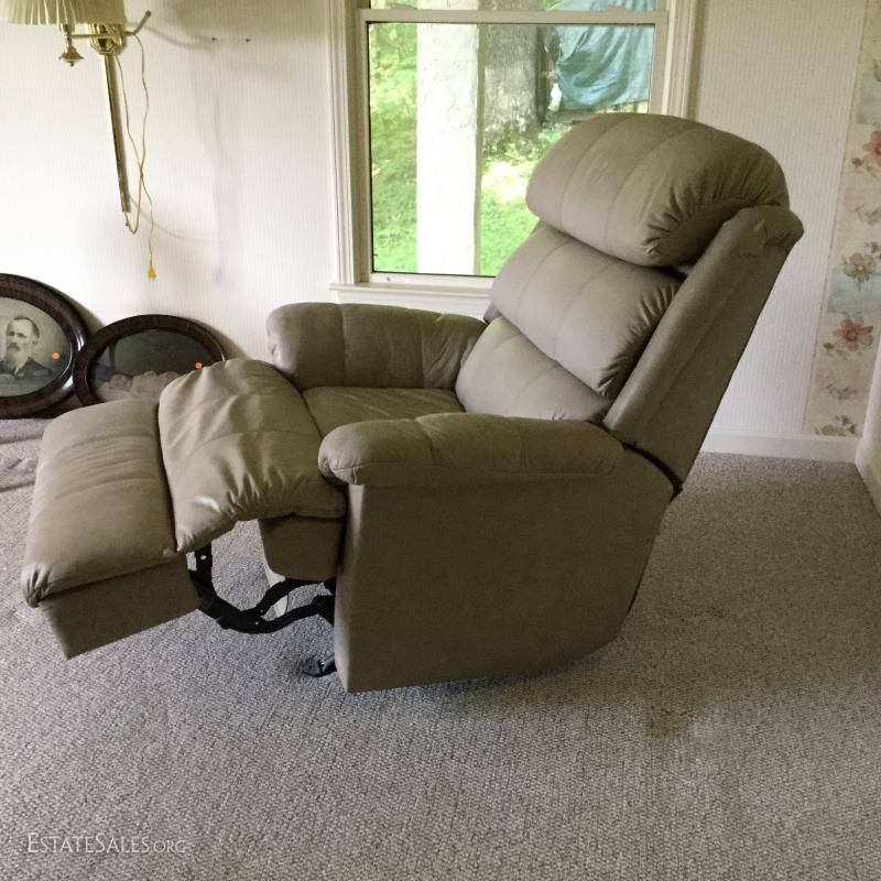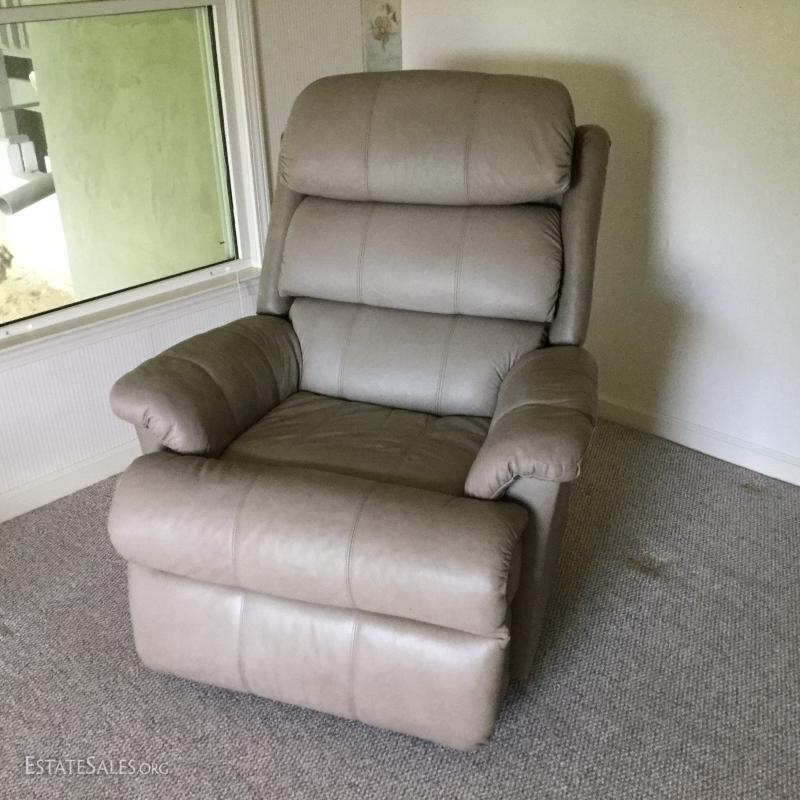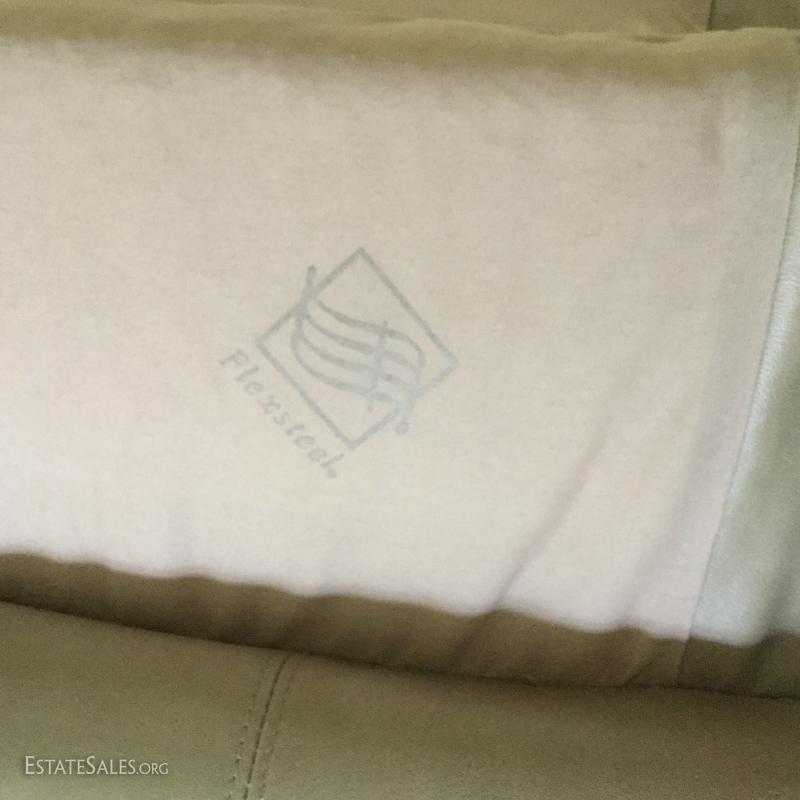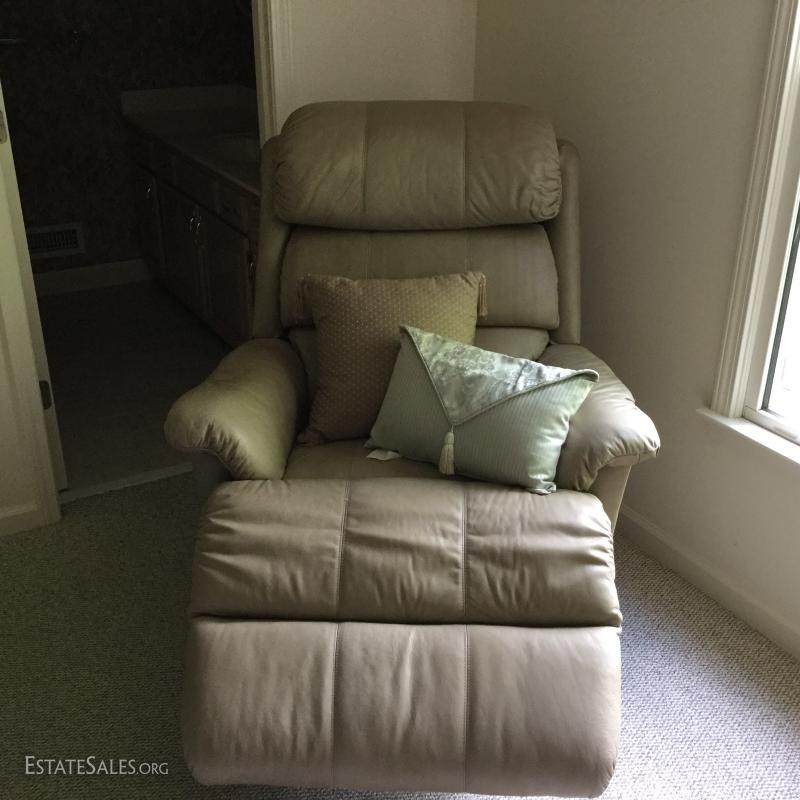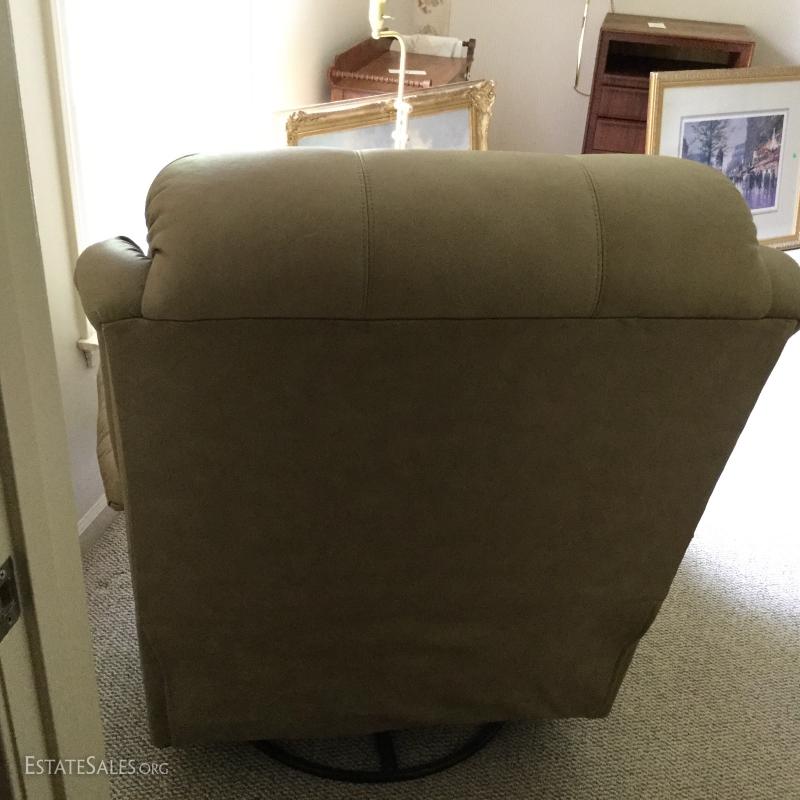 Beige adjustable leather recliners in excellent condition. One luxurious recliner Is rocking and the second is a swivel action recliner that spins all the way around. Super comfortable. Made by FlexSteel.