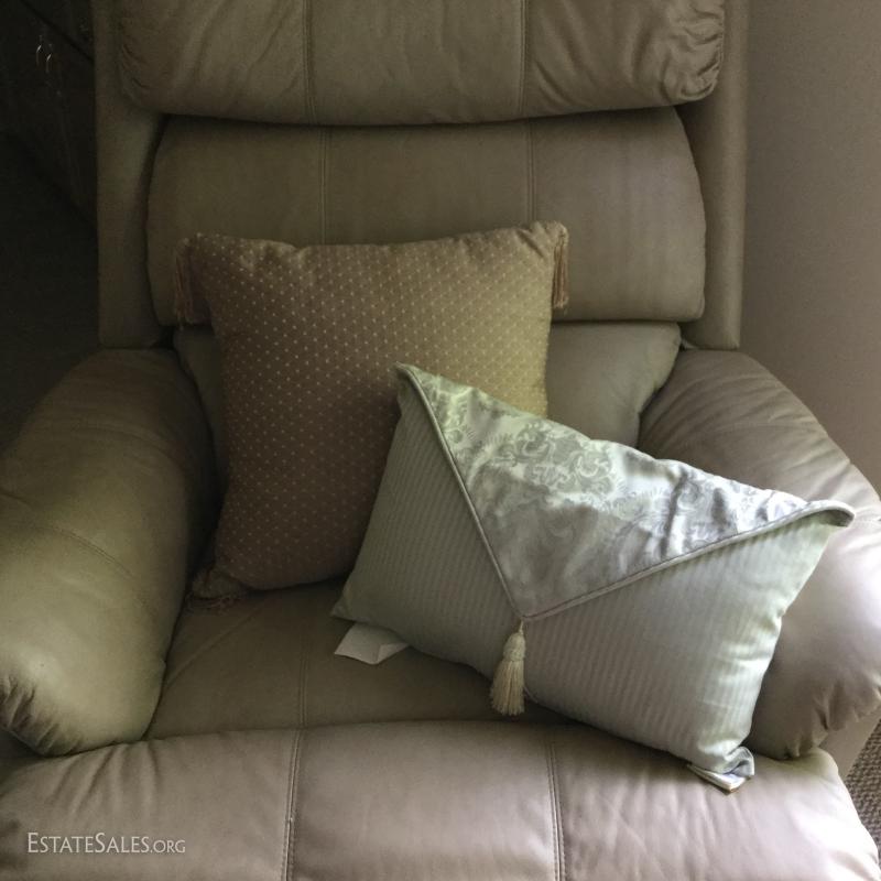 These recliners are so nice and in like-new condition! 39"l x 37"w x 47"h. Lot comes with 2 throw pillows.