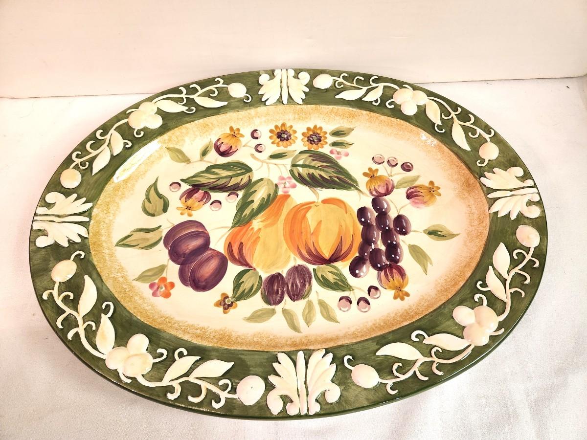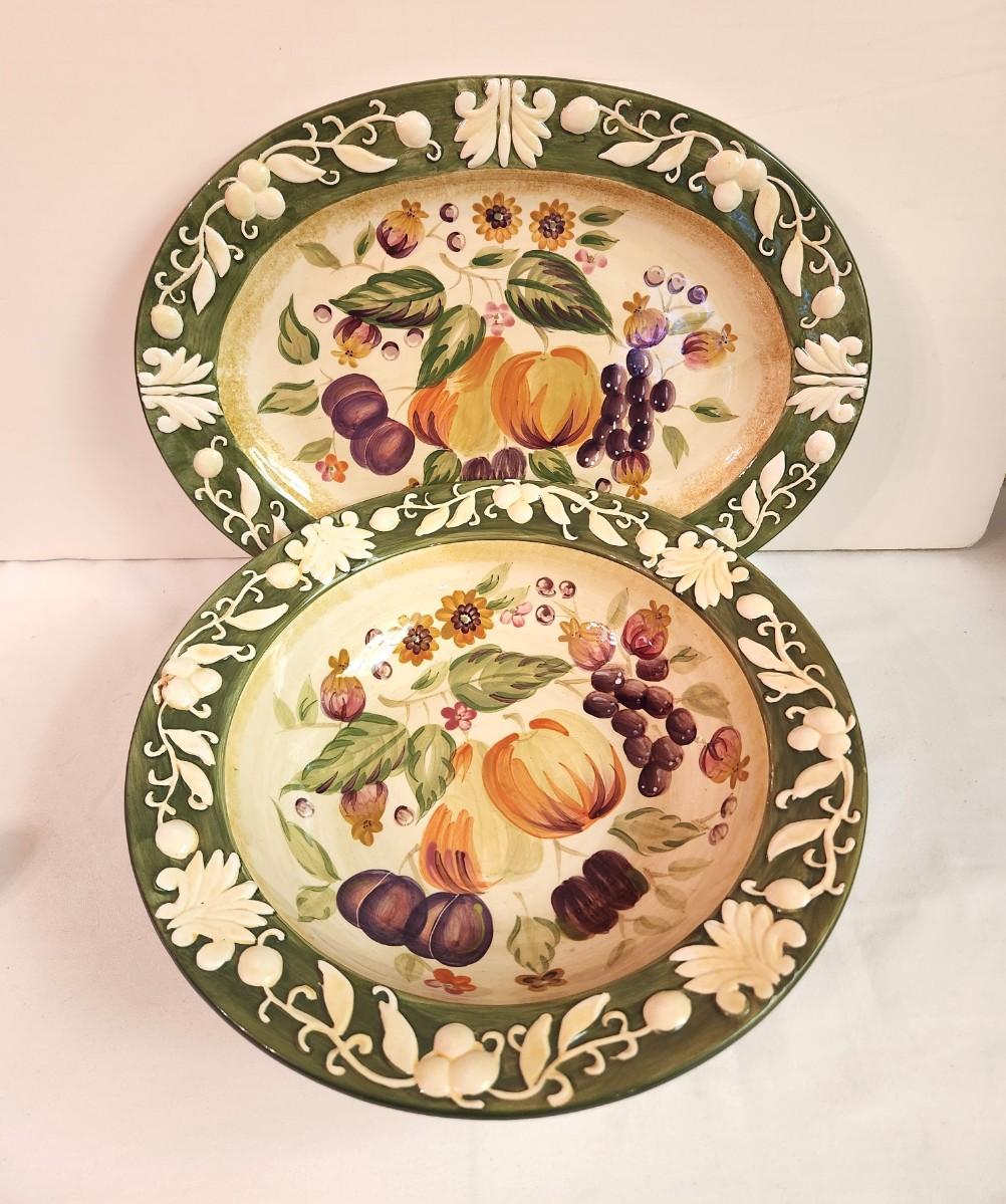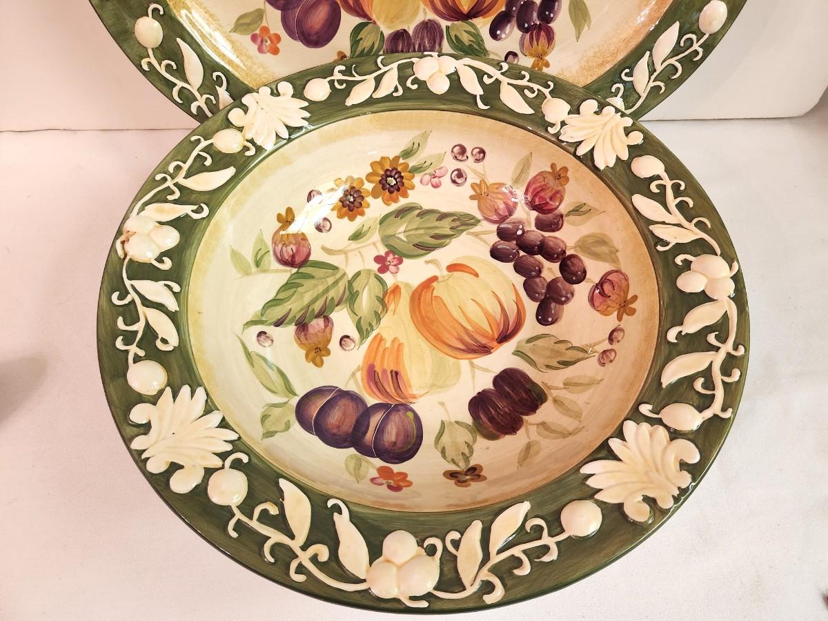 Good looking contemporary embossed platter (17" across) and matching serving bowl (14" across). Good condition.