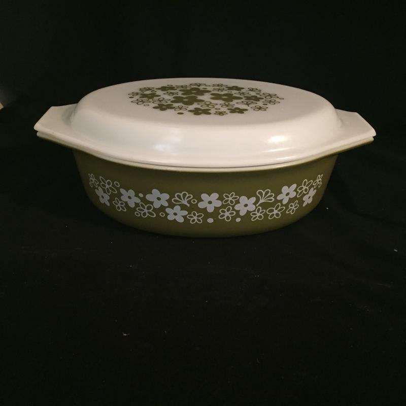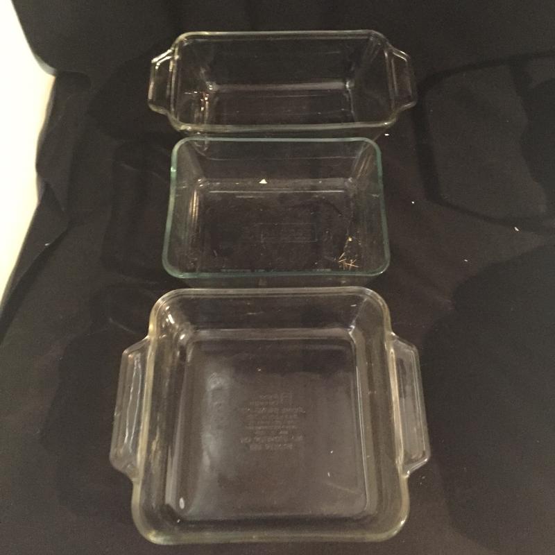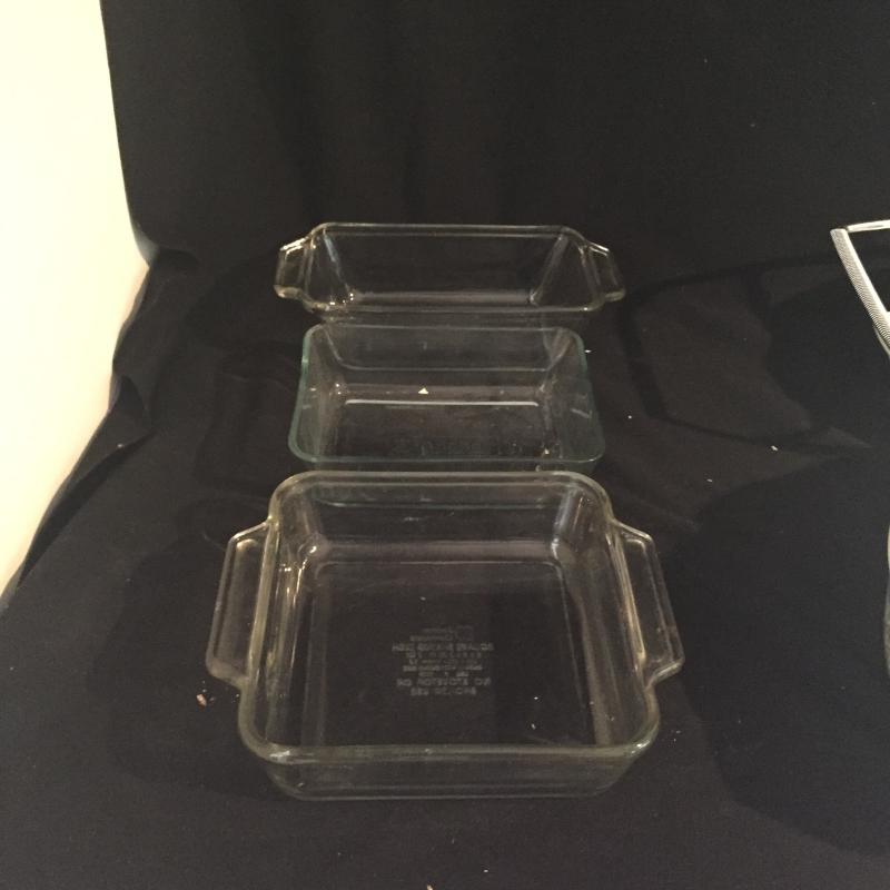 Plethora of Pyrex, Corning And Anchor Ware. Large selection of Serving Dishes, Casserole dishes and Extra Lids. Largest Serving Dish Measures 15” x 11” x 2.5”.