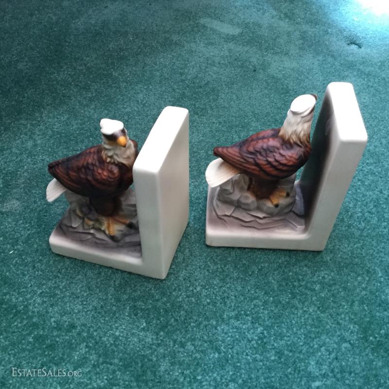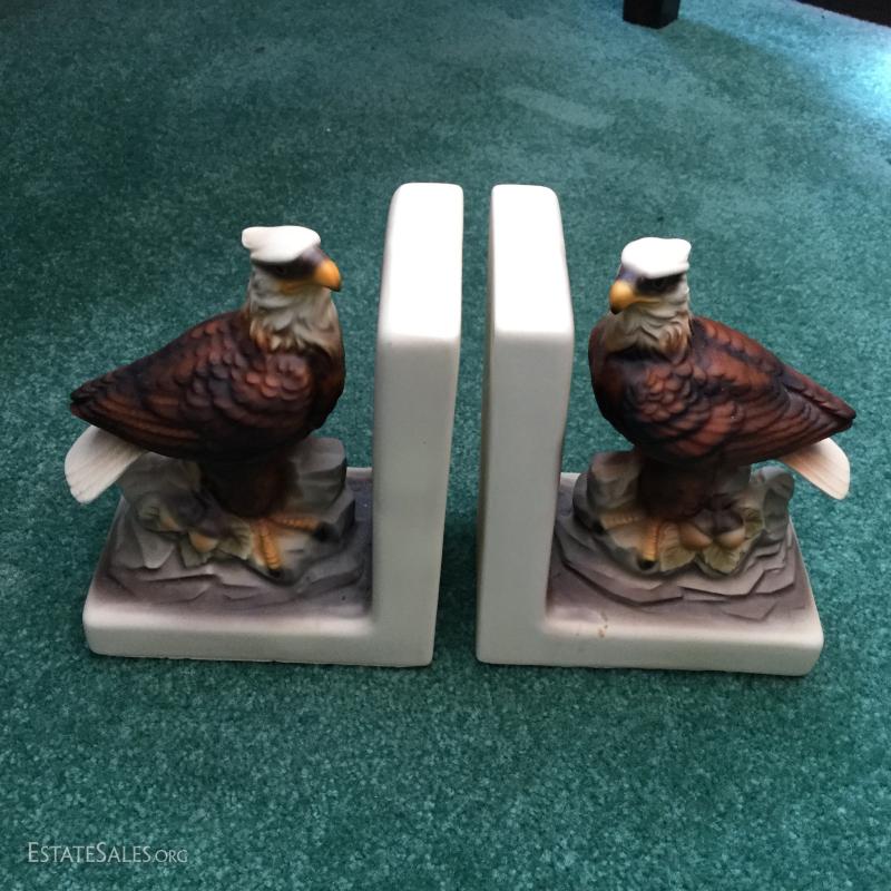 Also 15+ picture frames and set of Eagle bookends and misc Clown (single bookend or figurine).