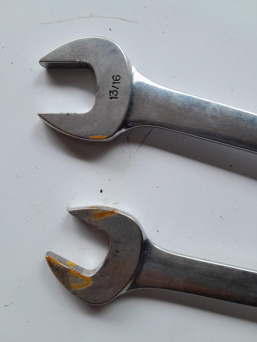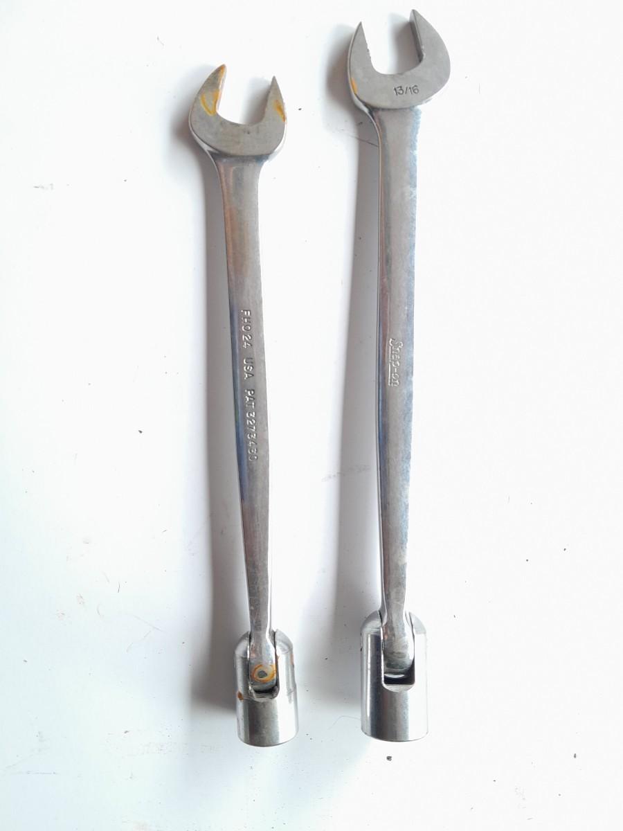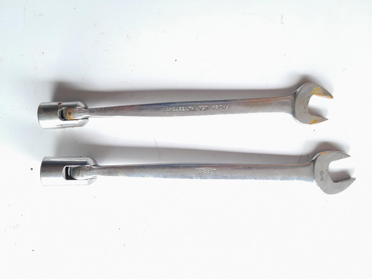 TWO SNAP ON FLANK DRIVE FLEX HEAD / OPEN END COMBINATION WRENCHES 13/16 AND 15