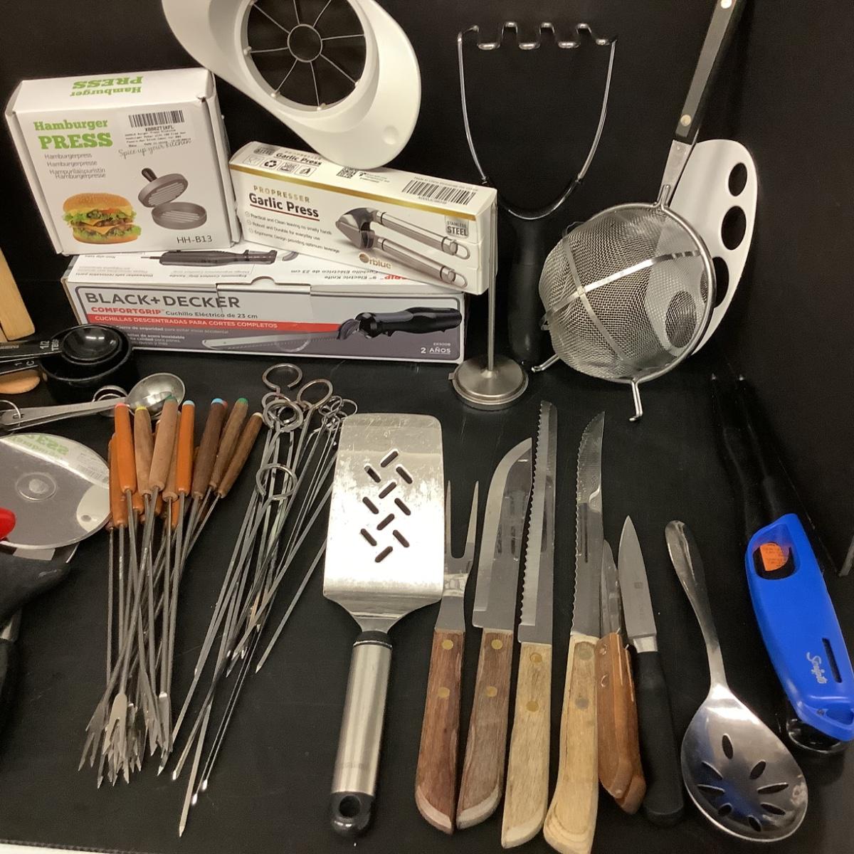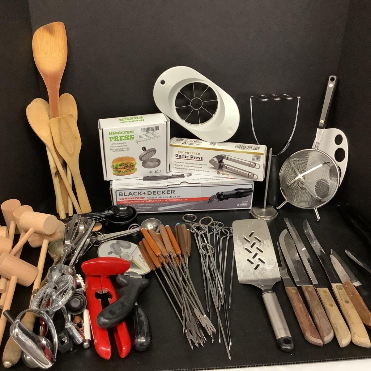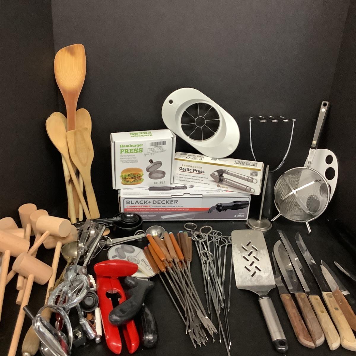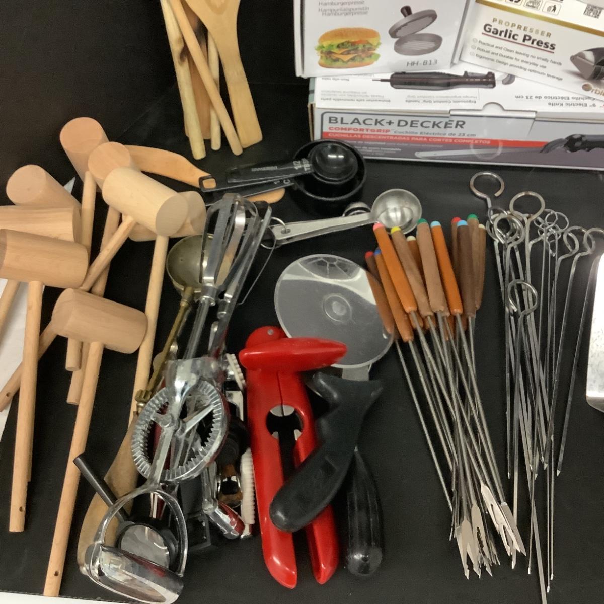 Lot 1081. Lot of Kitchen Utensils/ Crab Mallets / Knives / Fondu Forks / More