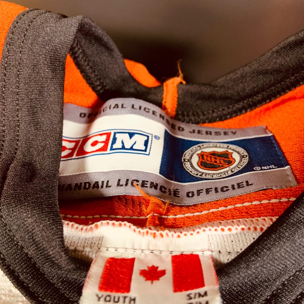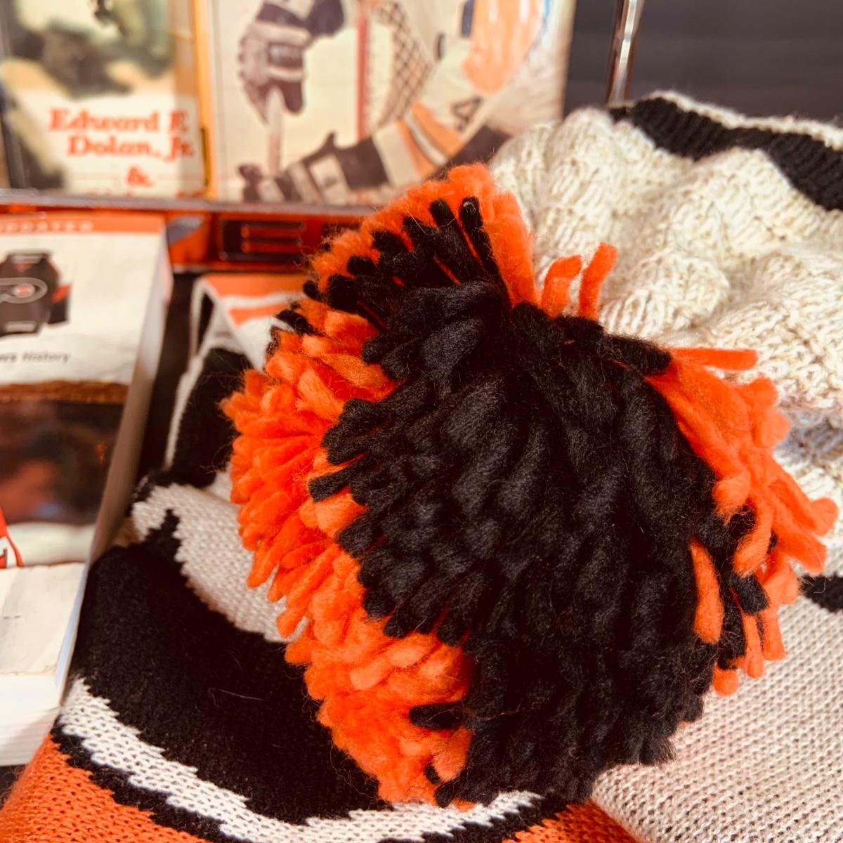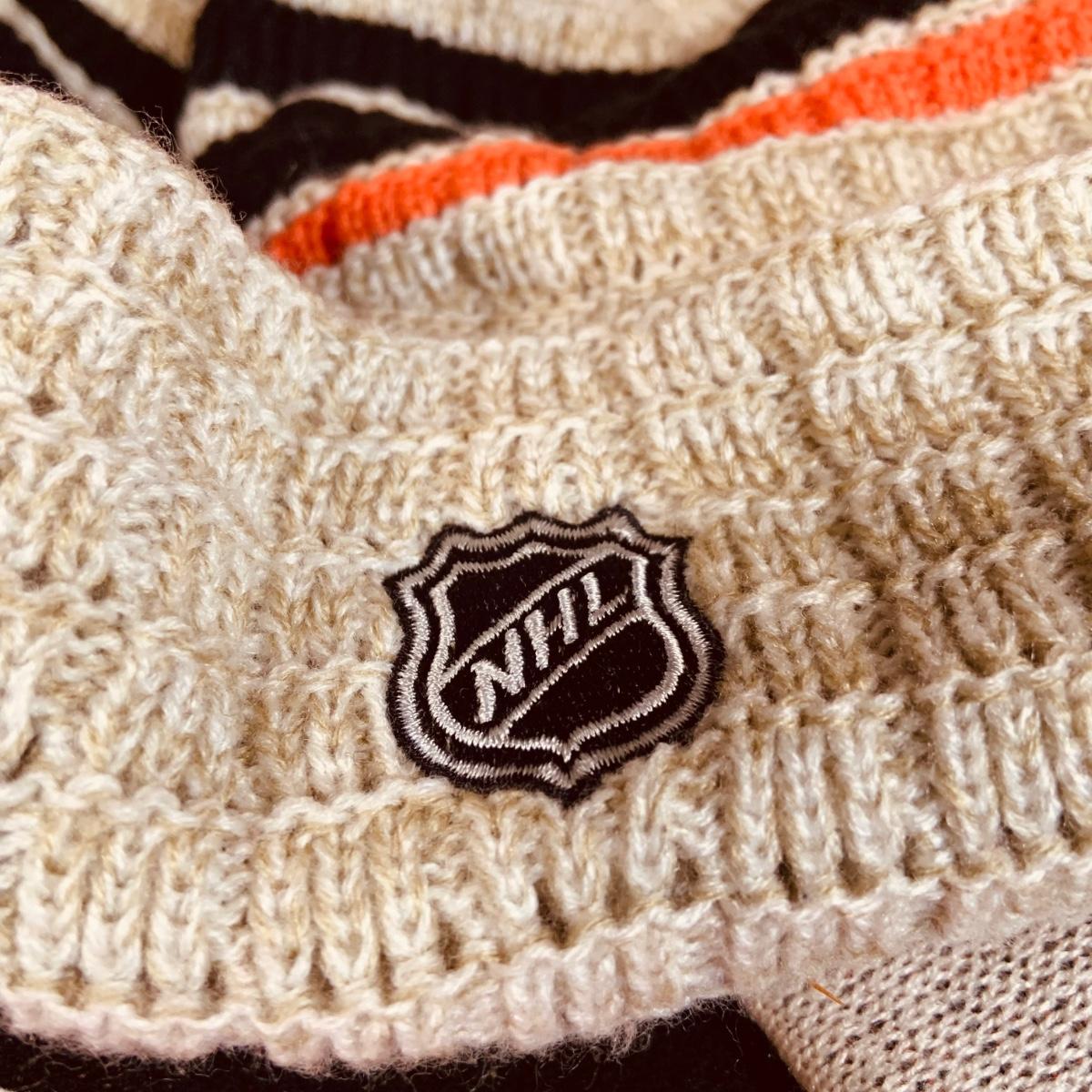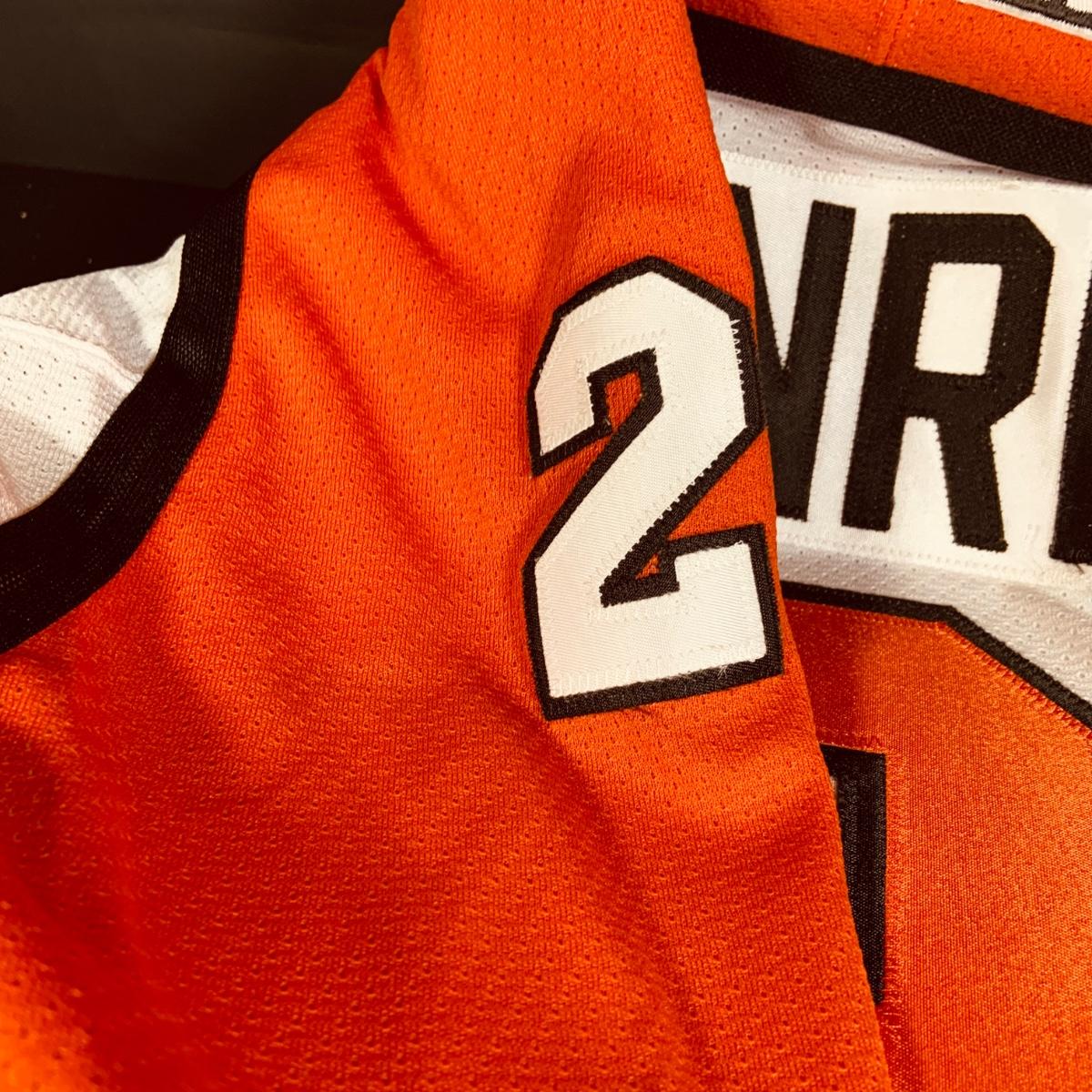 LOT::28: Philadelphia Flyers Collection Including a Child's Size Small #2 Weinrich Jersey, Reebok Scarf and Tosssel Cap, Assortment of Books and License Plate Holder and Leather Bag