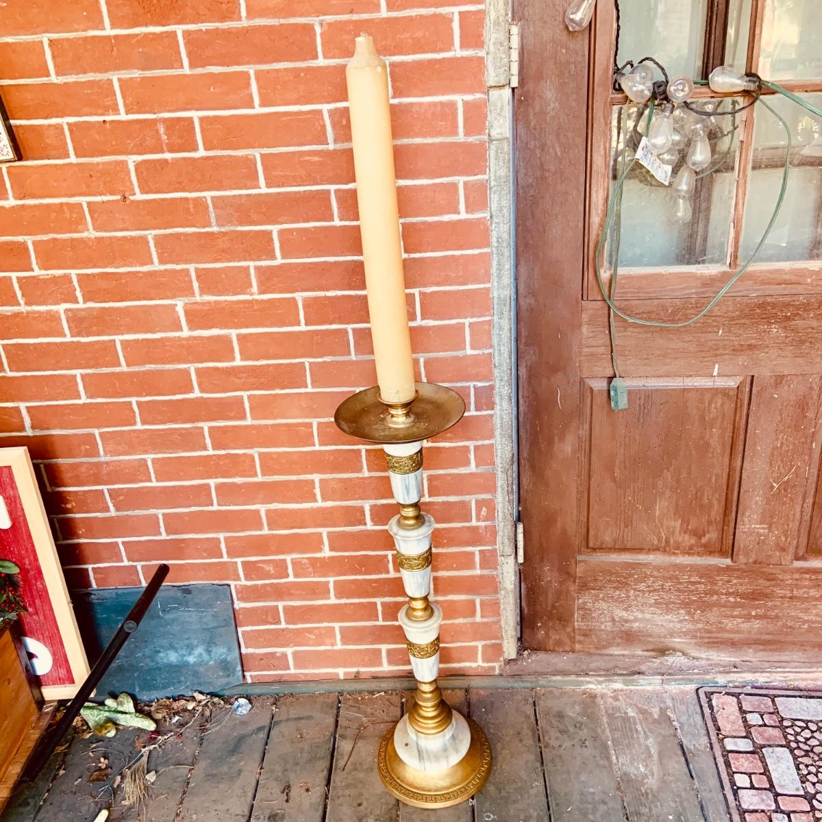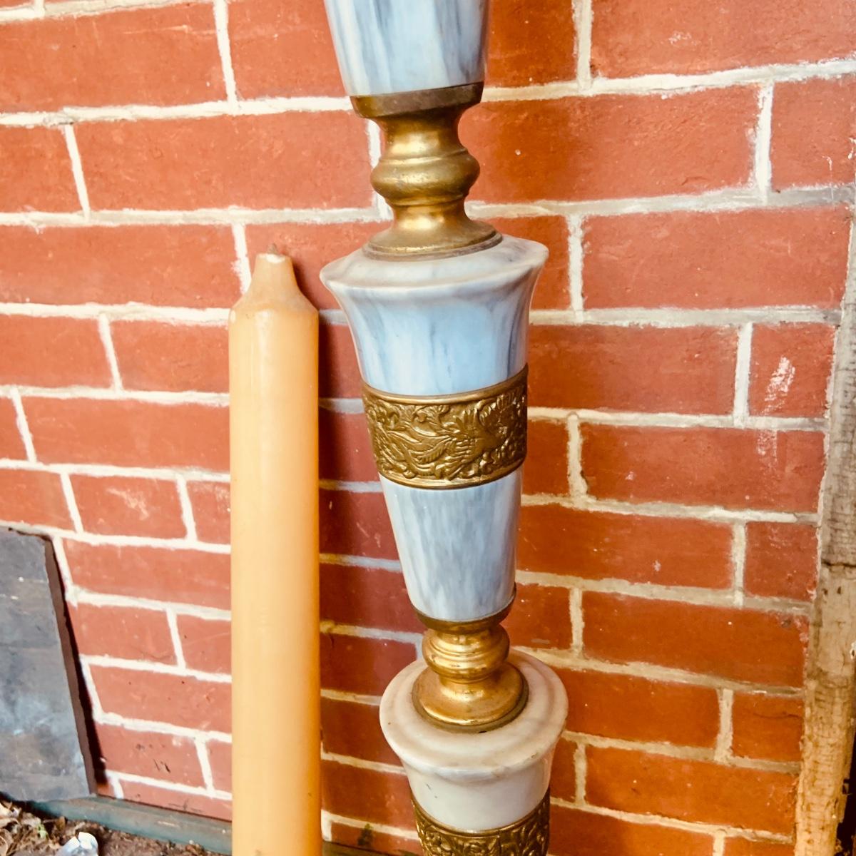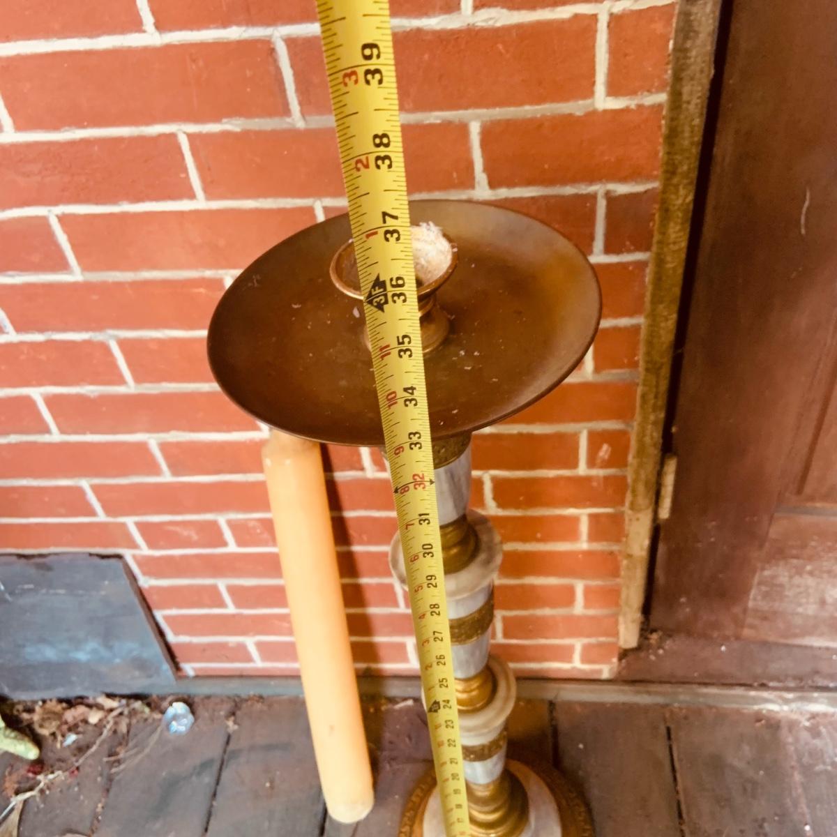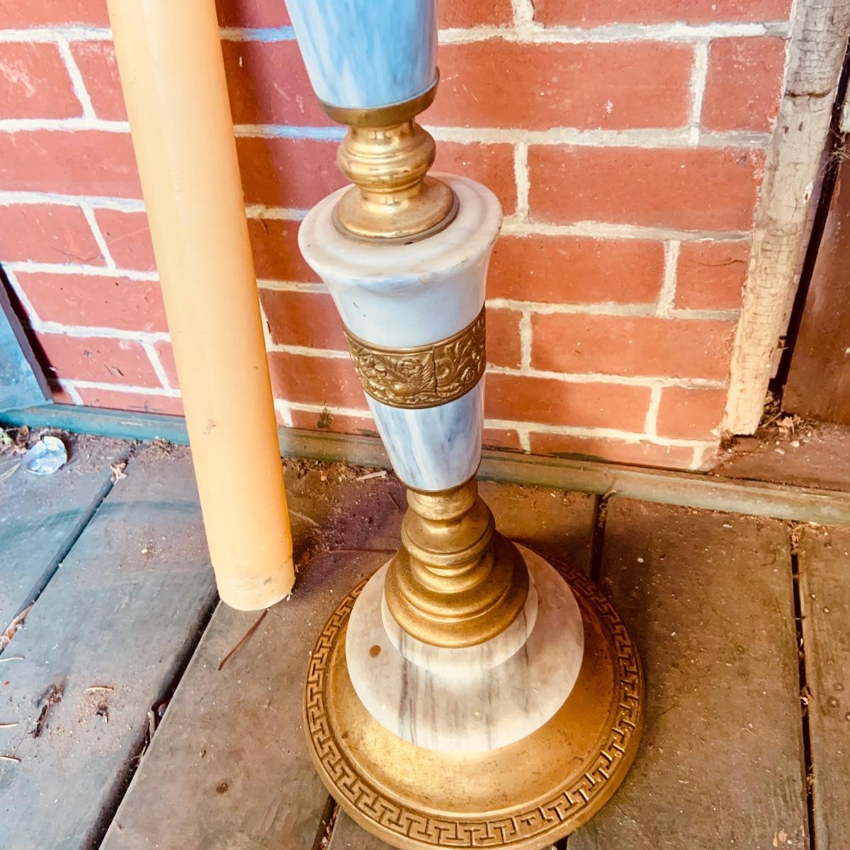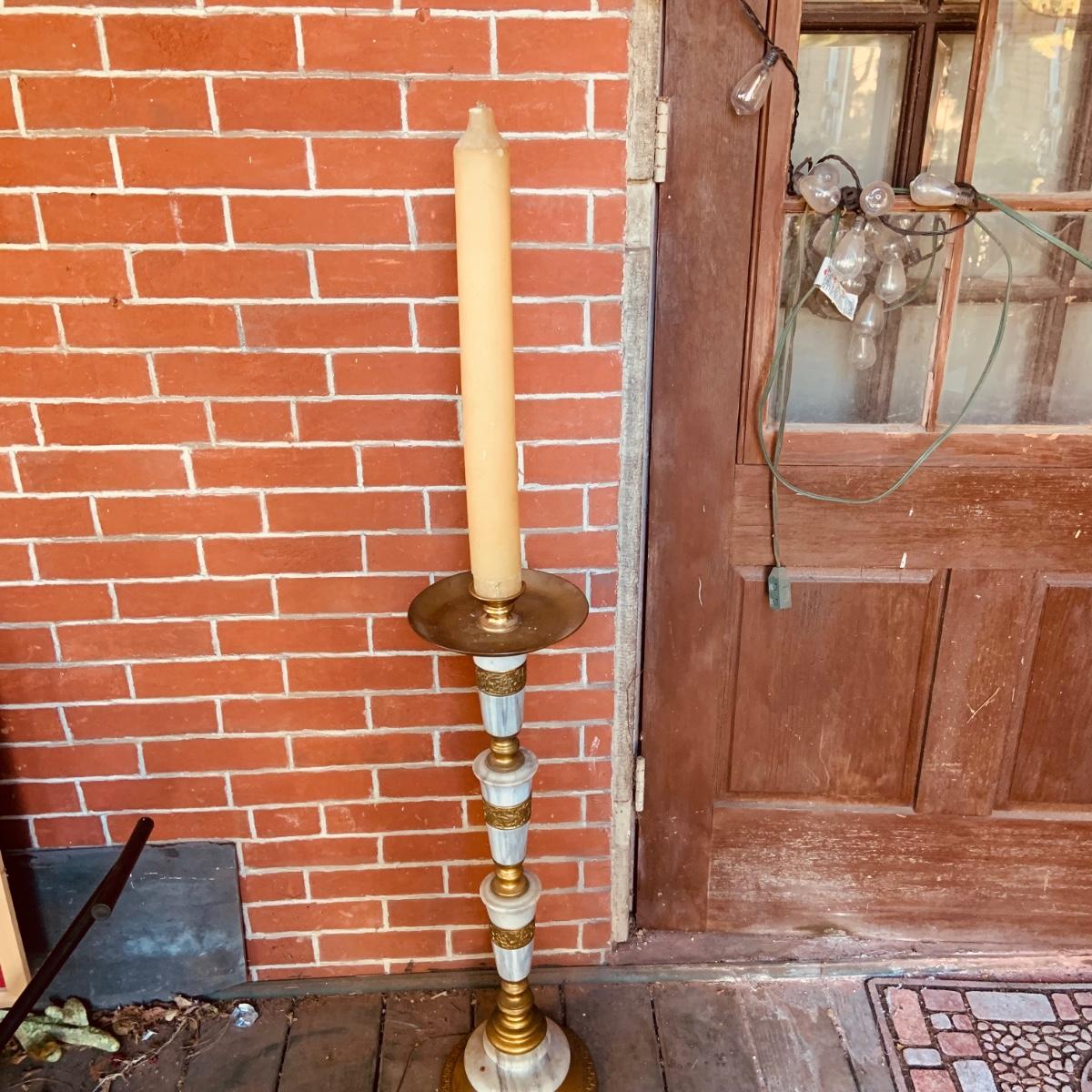 LOT:35: Large Brass and Marble Candle Stick Holder and Wax Candle