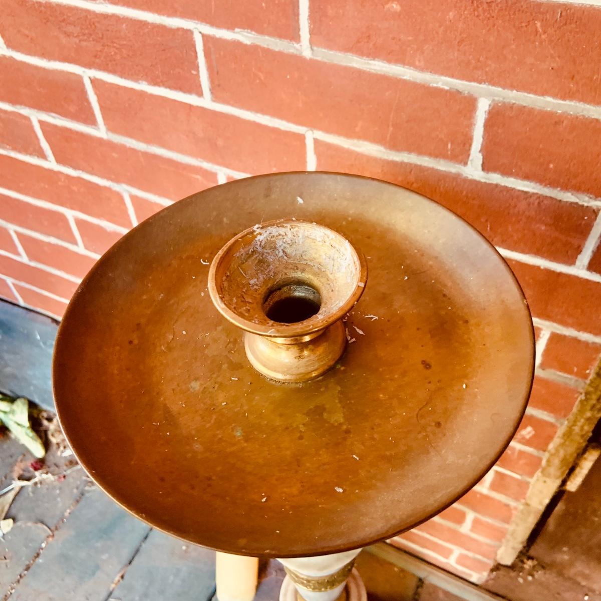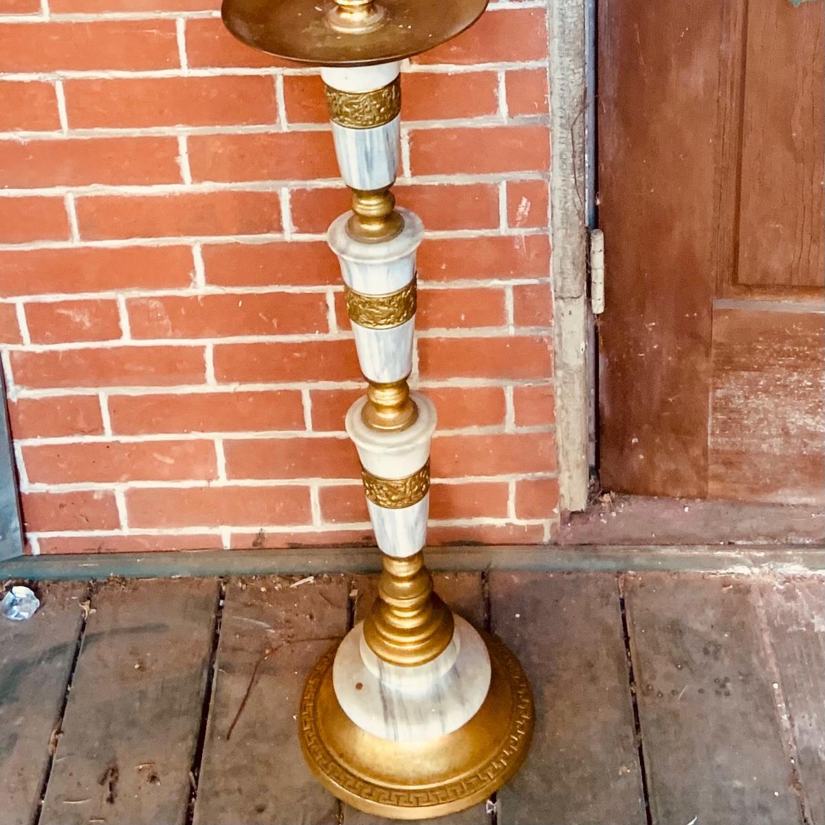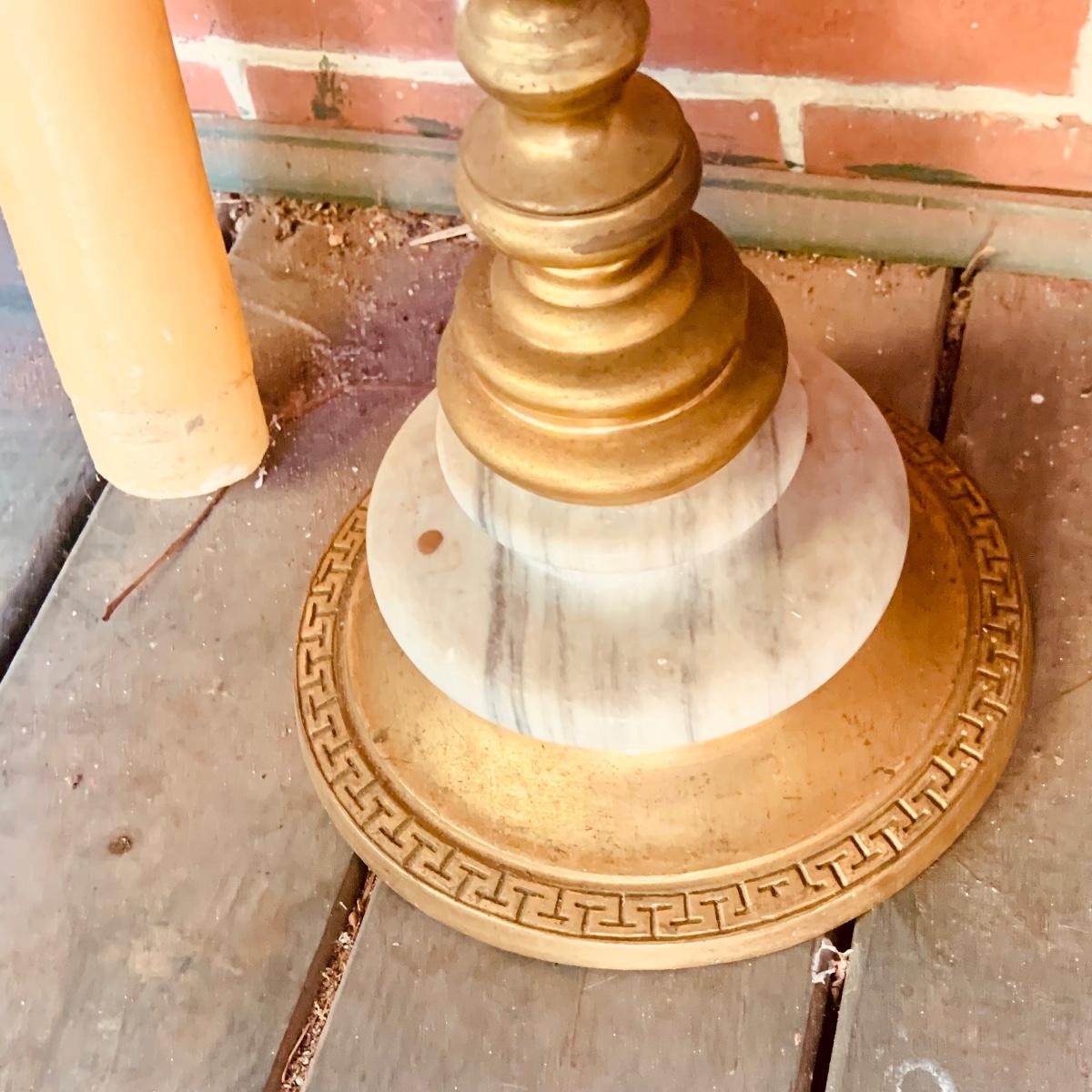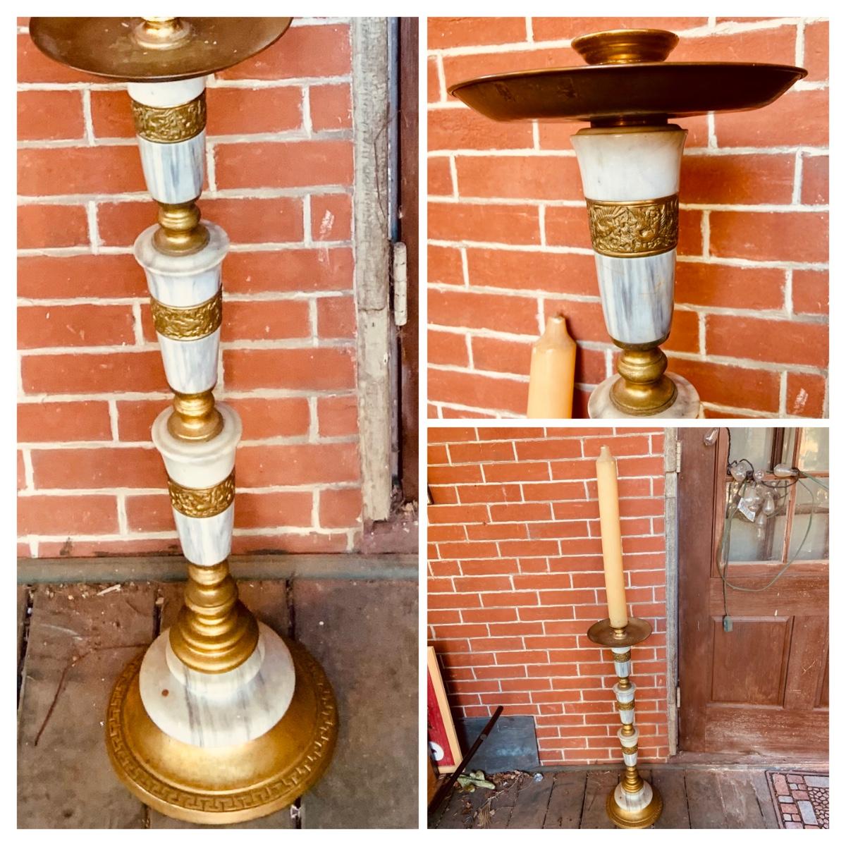 LOT:35: Large Brass and Marble Candle Stick Holder and Wax Candle