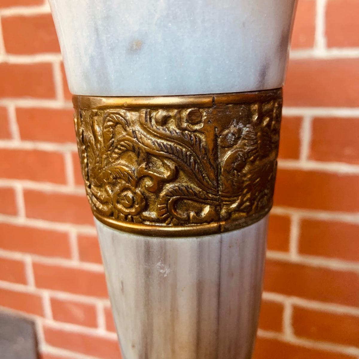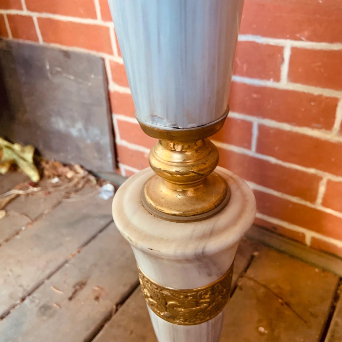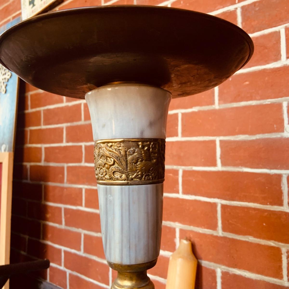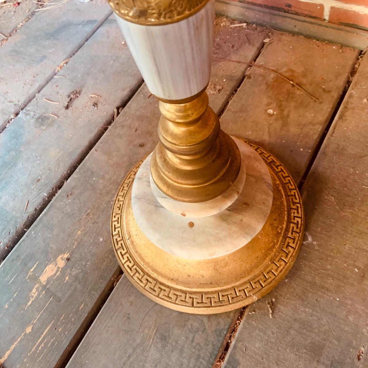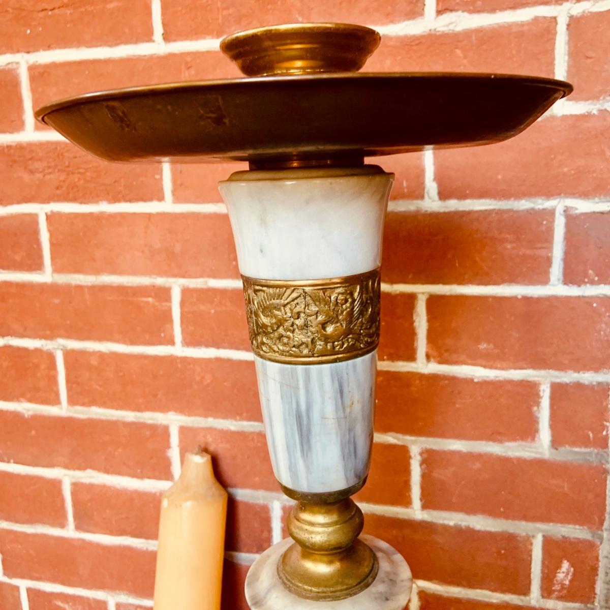 LOT:35: Large Brass and Marble Candle Stick Holder and Wax Candle