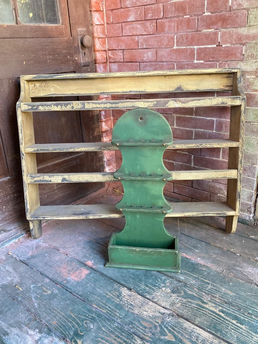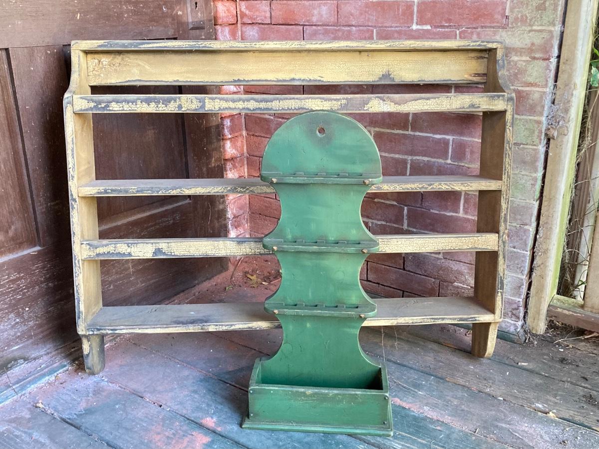 LOT 92: Primitive Wooden Spoon Rack / Holder and Hanging Display Shelf