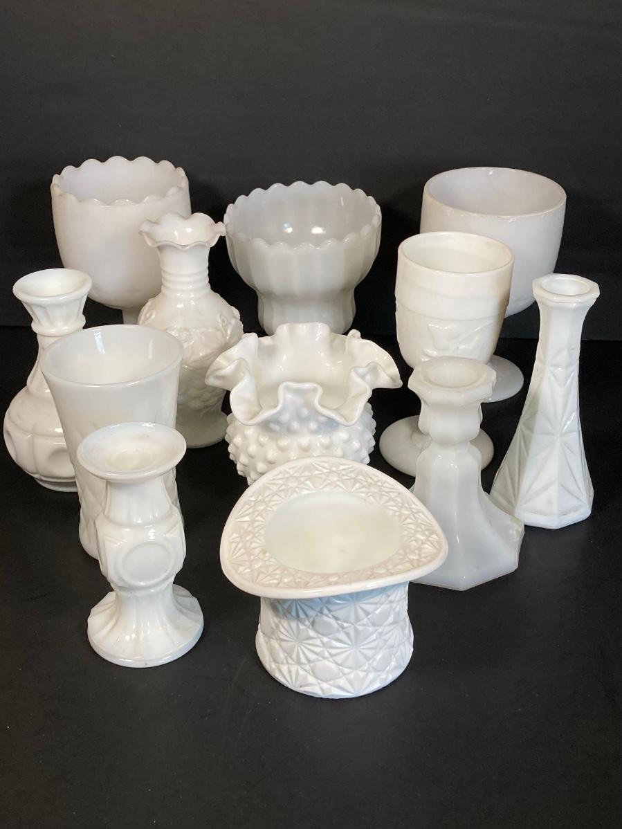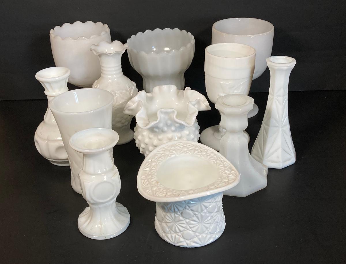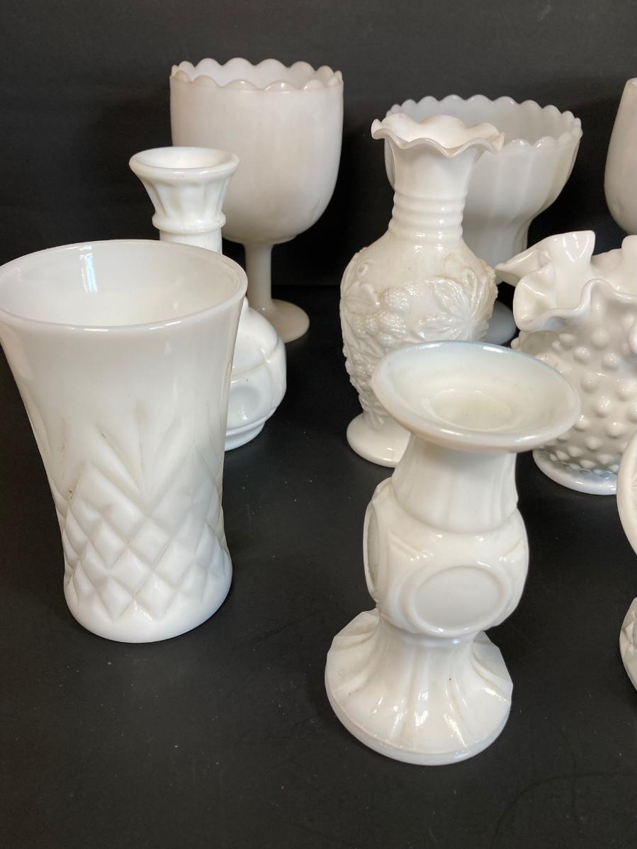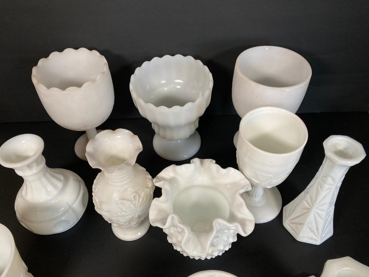 LOT 98: Large Collection of Milk Glass - Vases and More
