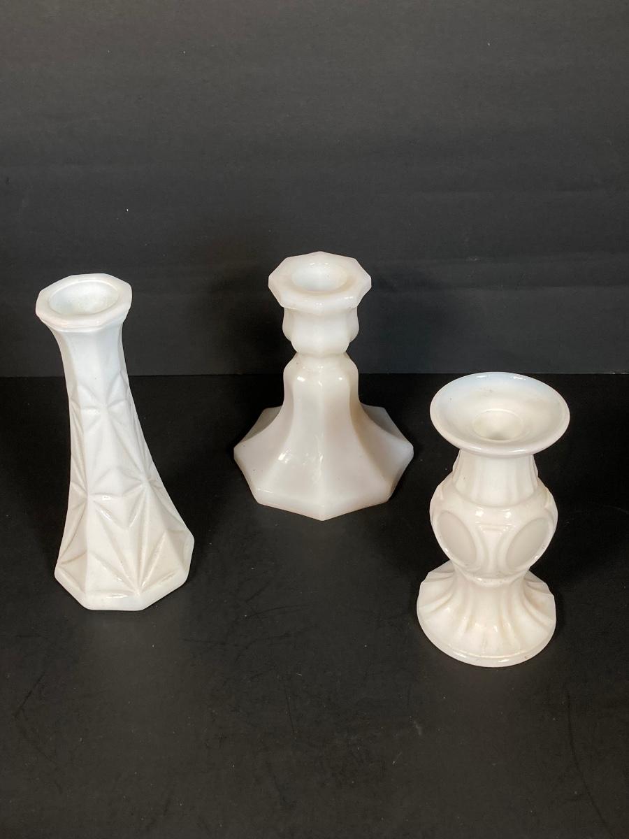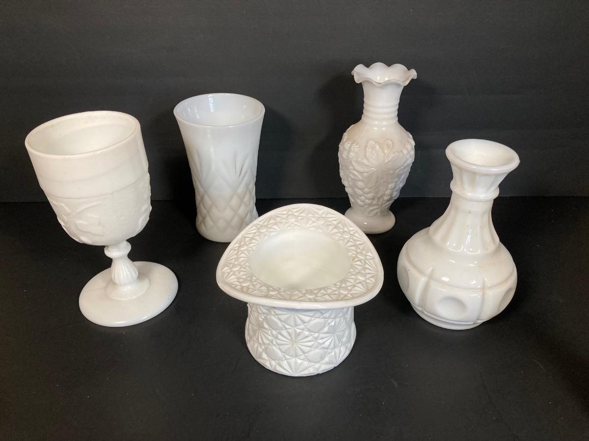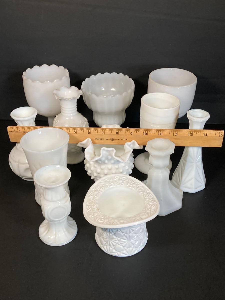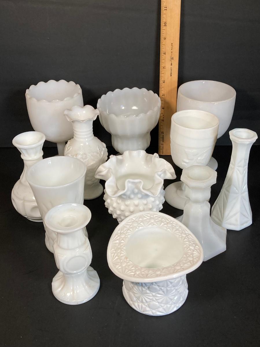LOT 98: Large Collection of Milk Glass - Vases and More