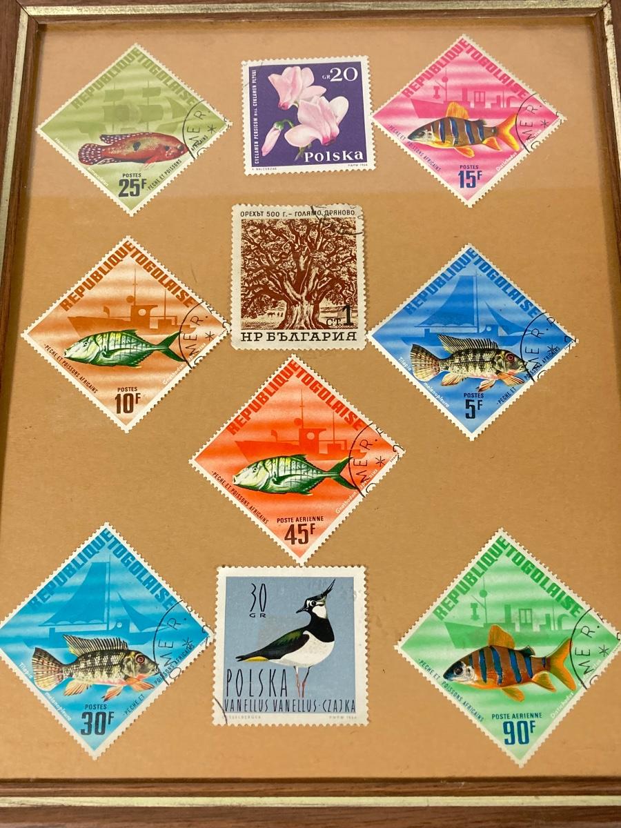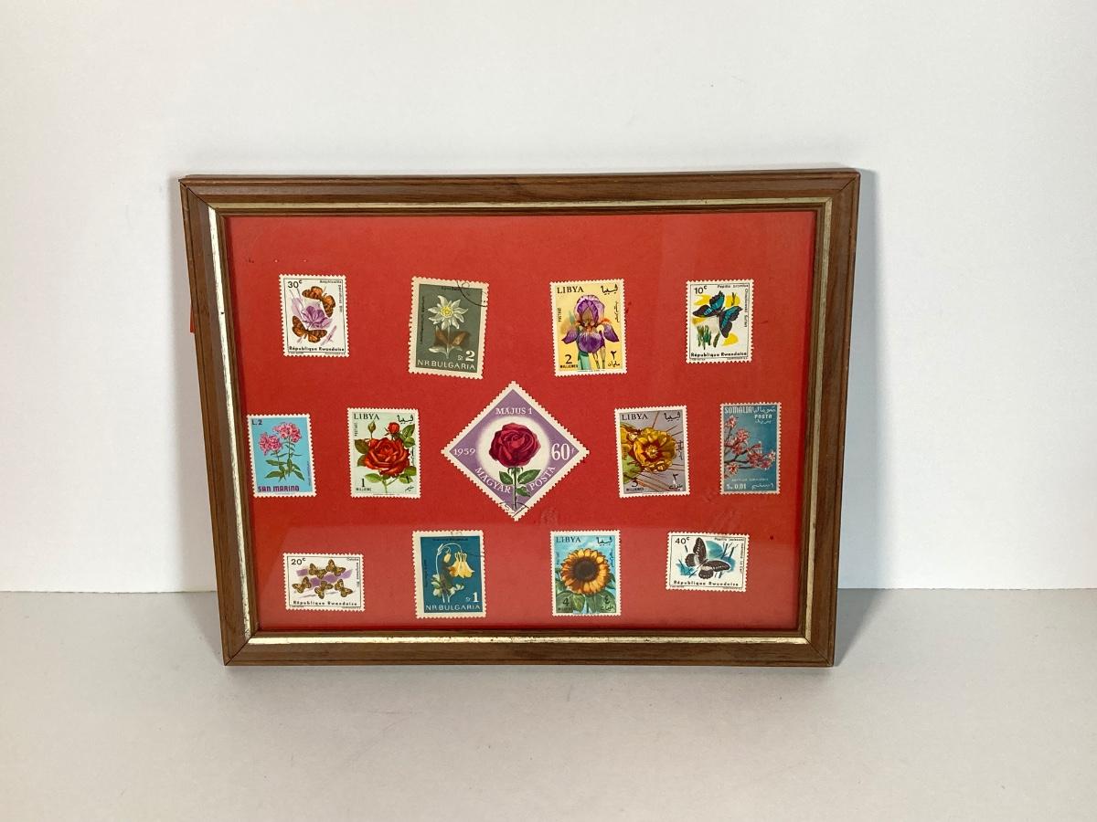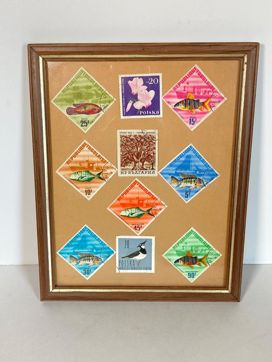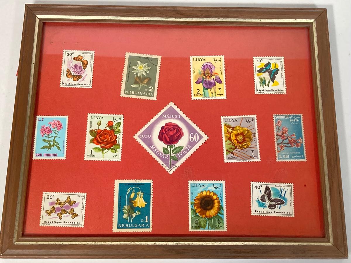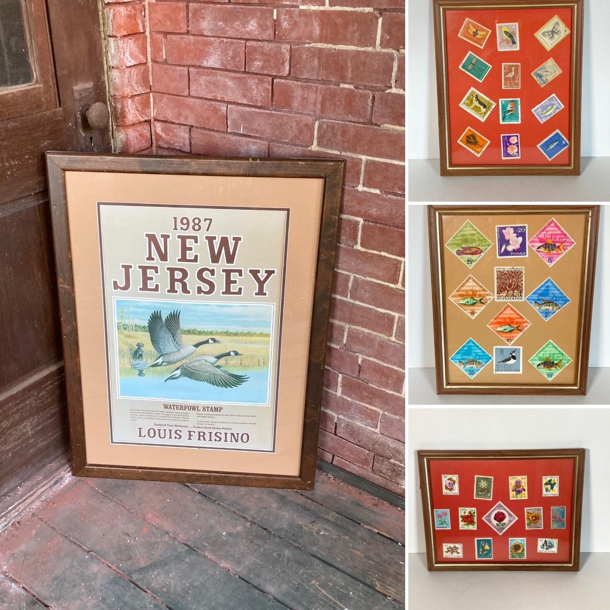 LOT 106: Framed Foreign Stamp Collection and 1987 New Jersey Waterfowl Stamp Framed Print