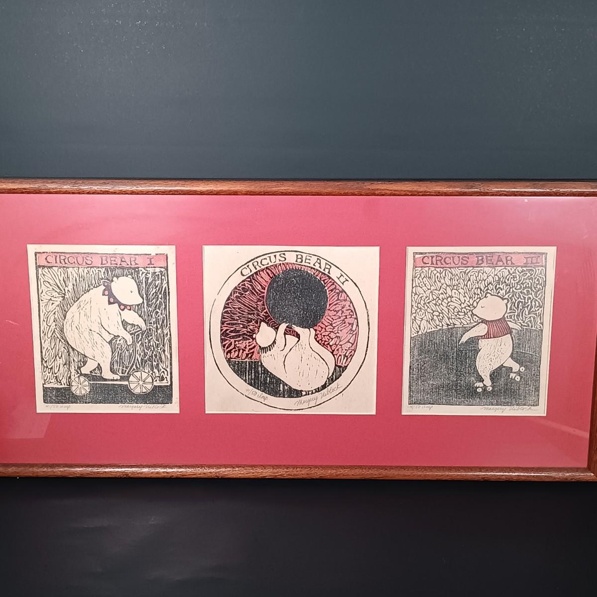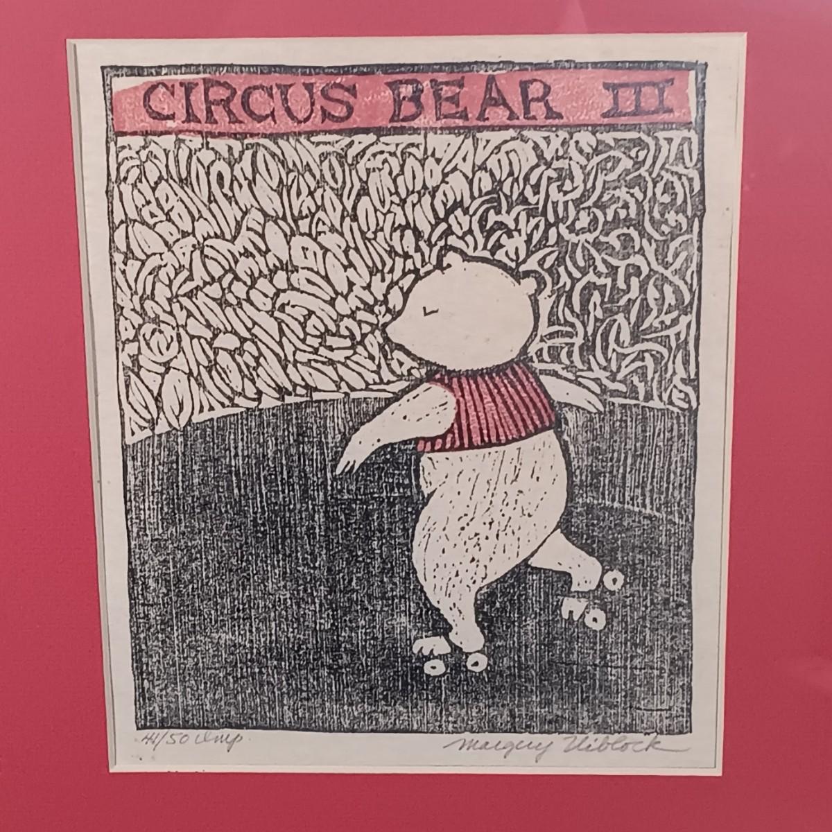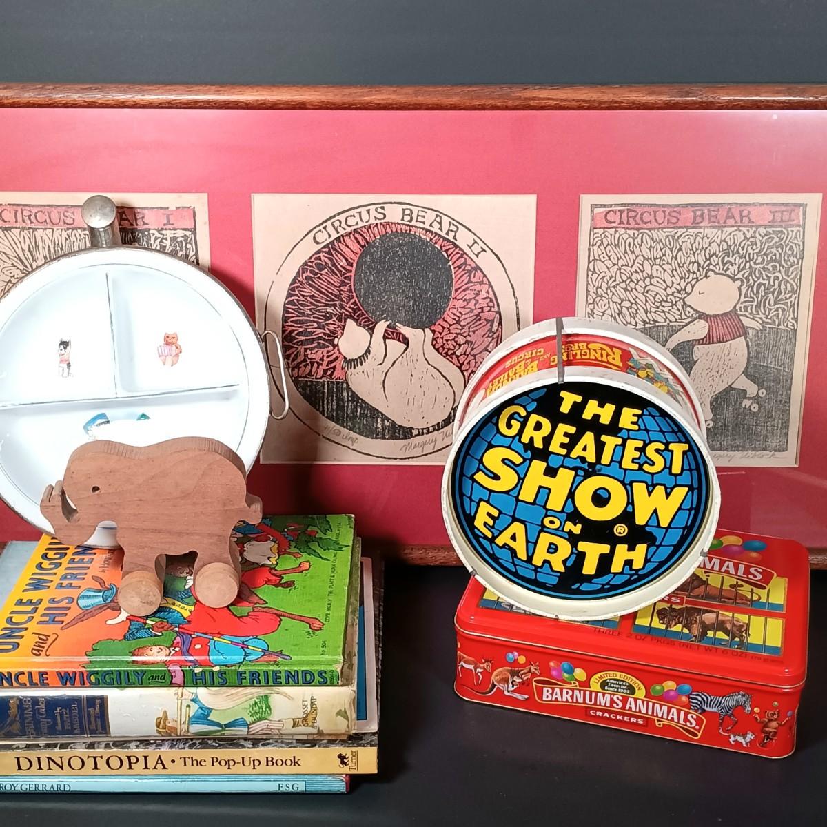 LOT 110: Signed and Numbered Margery Niblock Circus Bear Prints, Vintage Ringling Bros. Tin Drum, Excello Baby Food Warmer & More