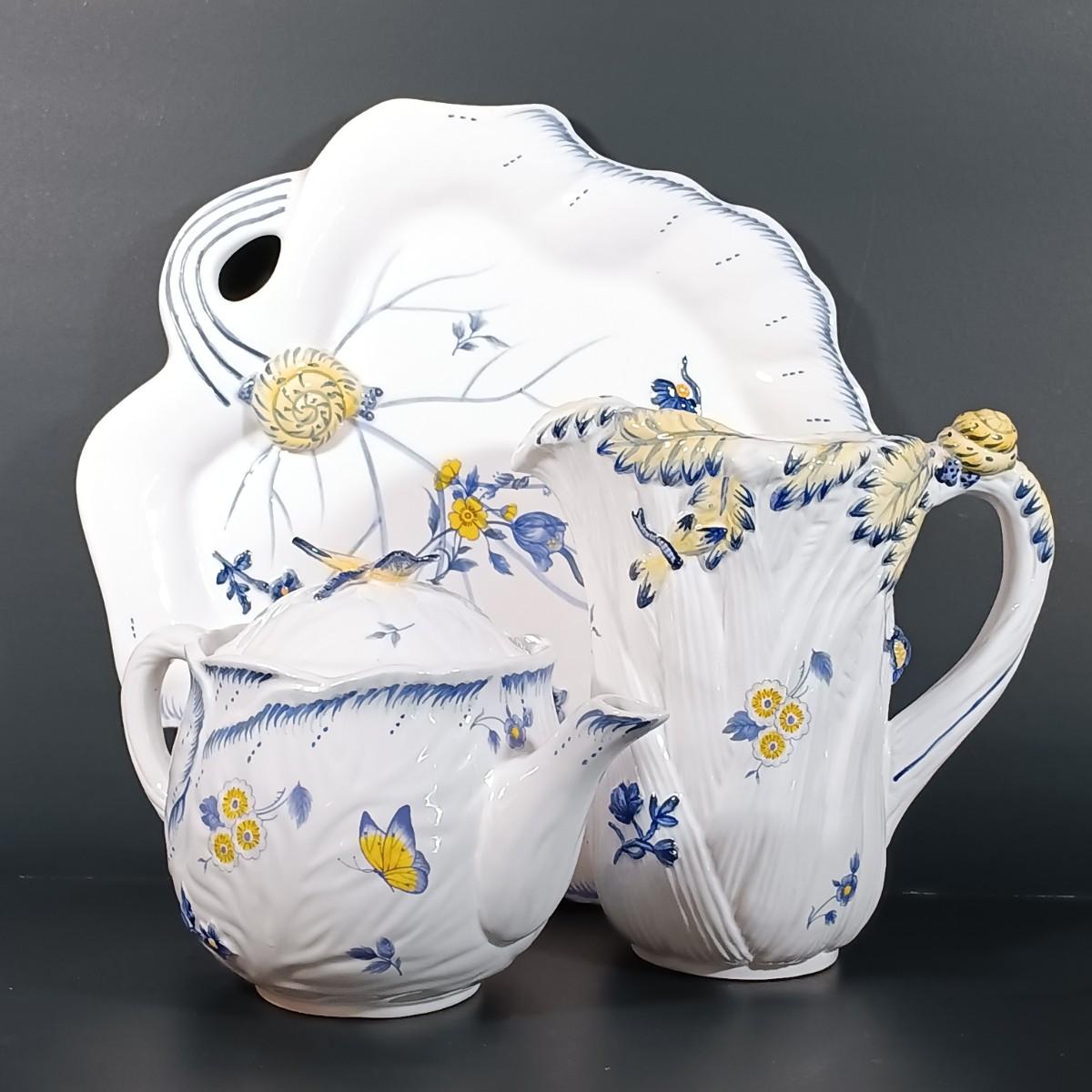 LOT 111: Spode Imperial Garden Celery Pitcher, Lettuce Teapot and Leaf Serving Tray