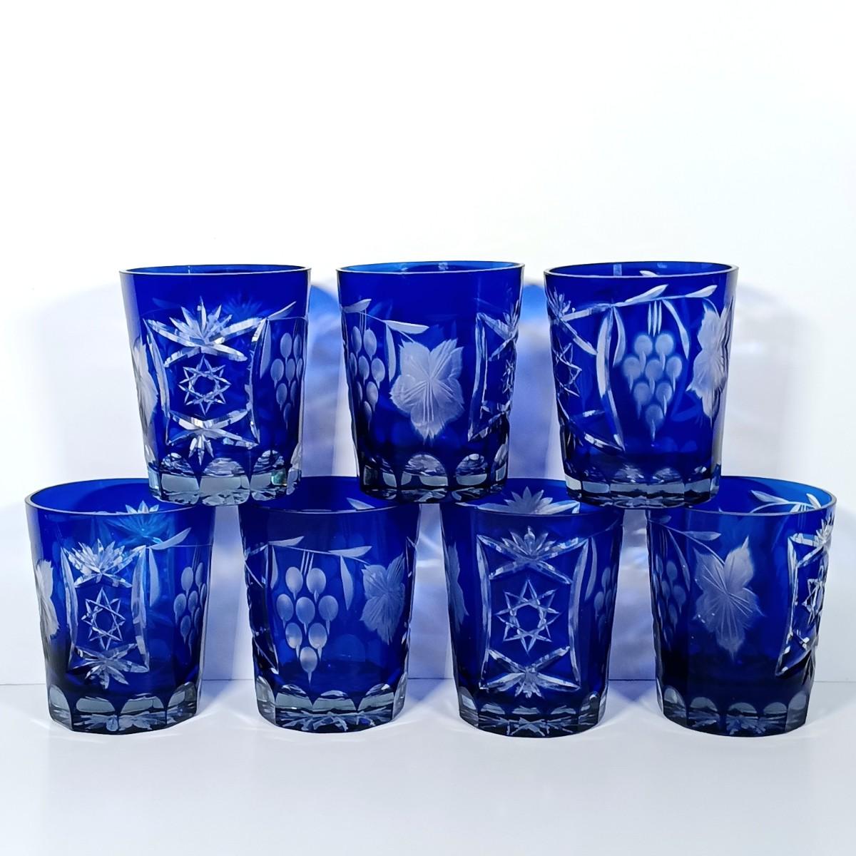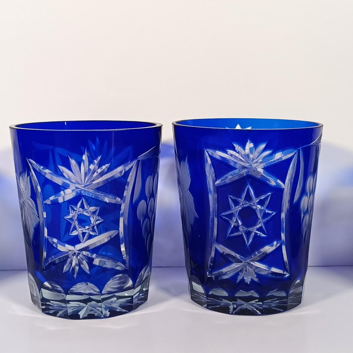 LOT 112: Cobalt Blue Cut Crystal Glasses