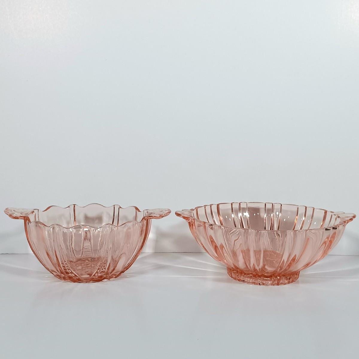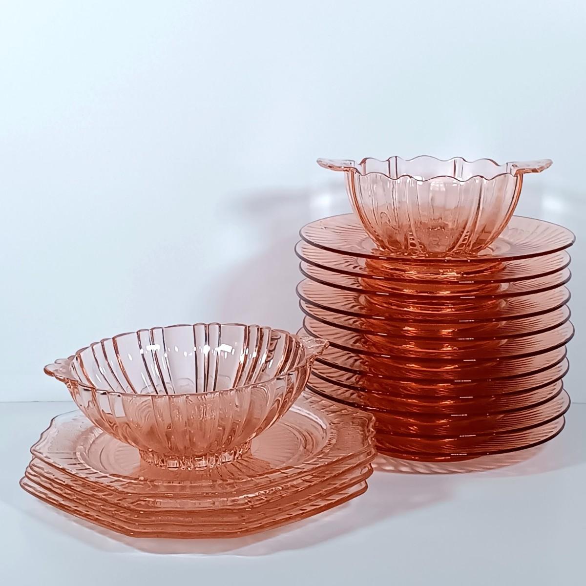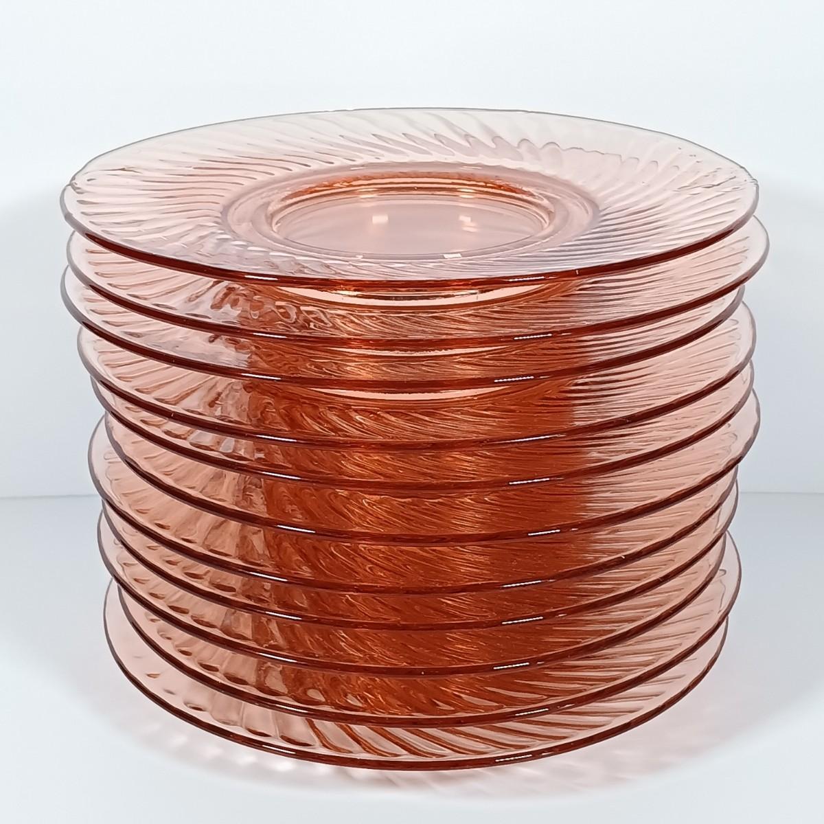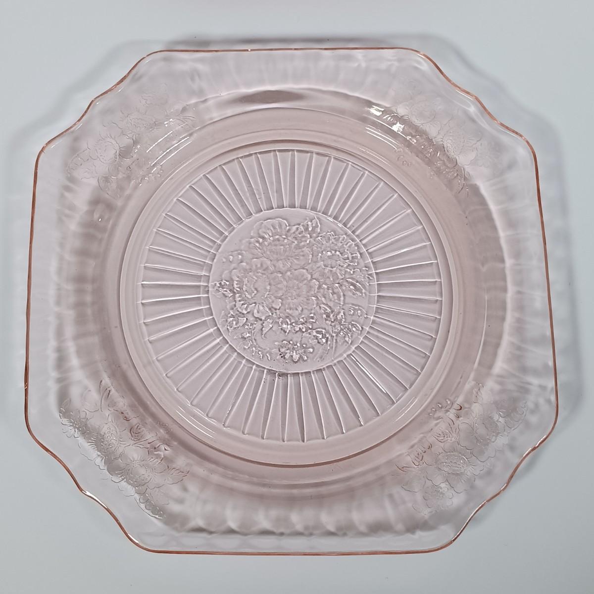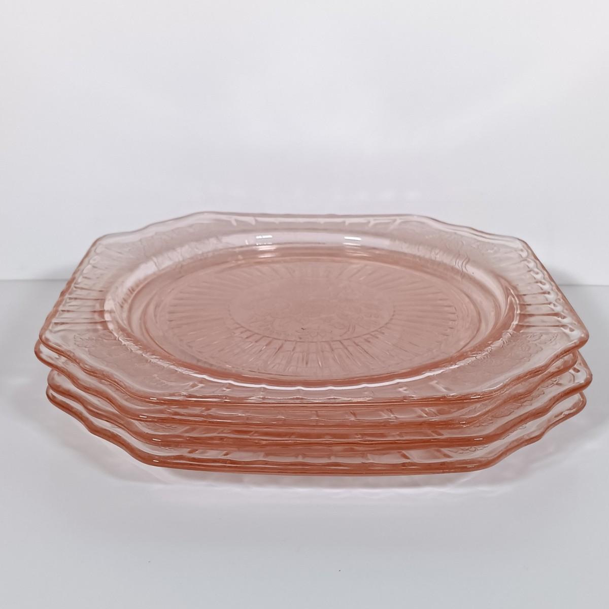 LOT 113: Pink Depression Glass Plates and Serving Bowls