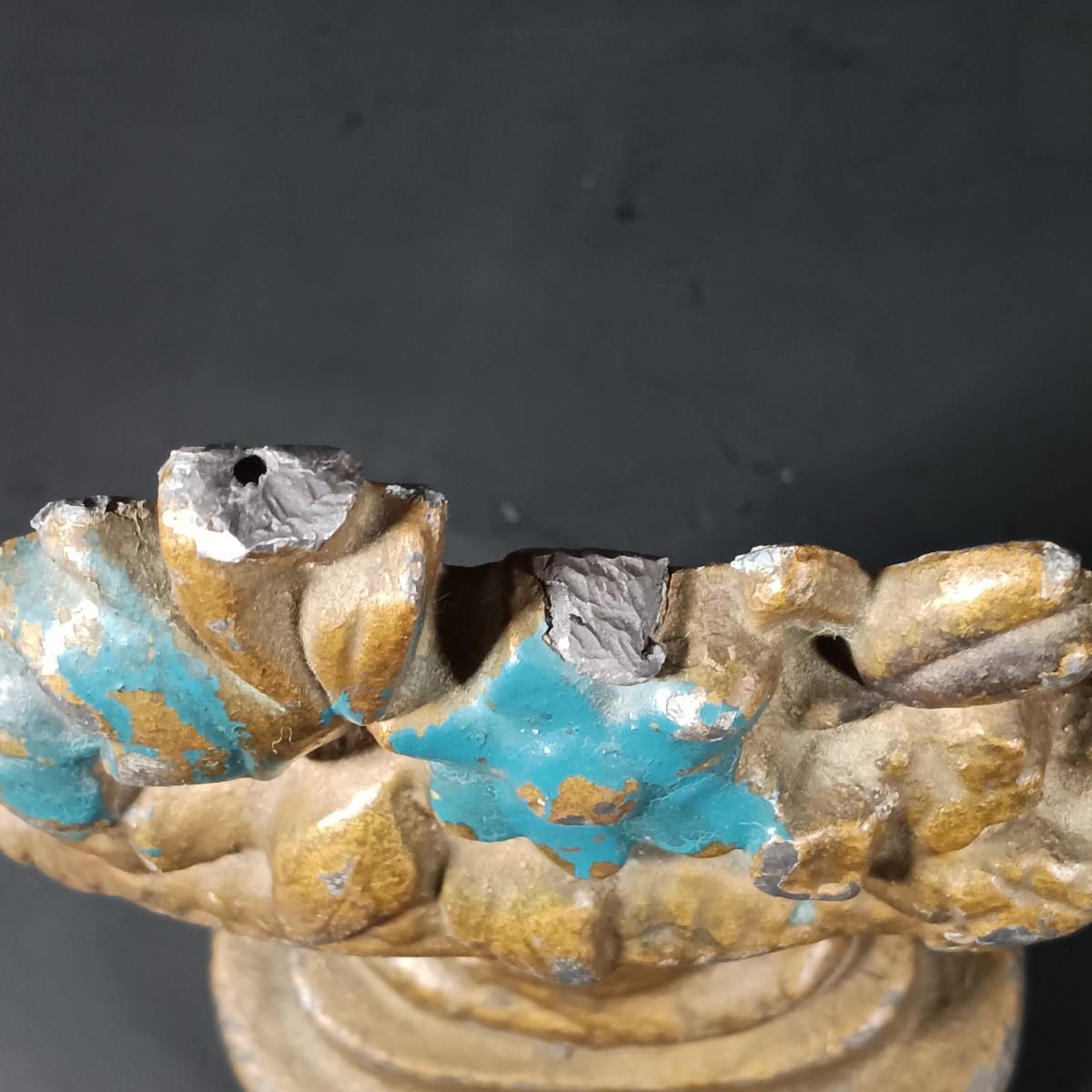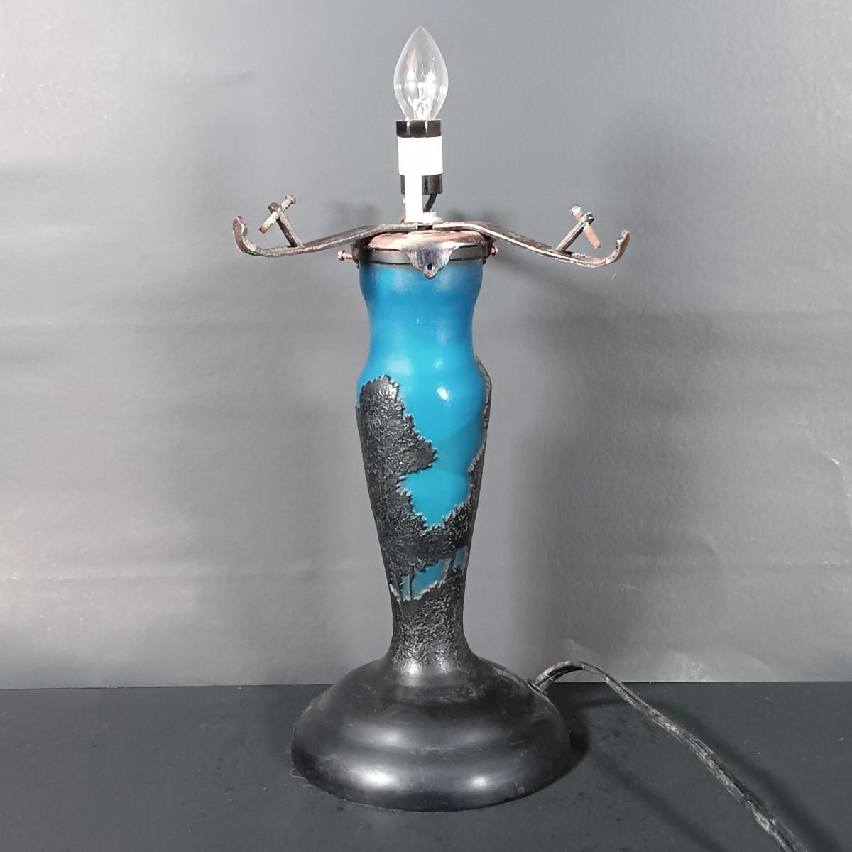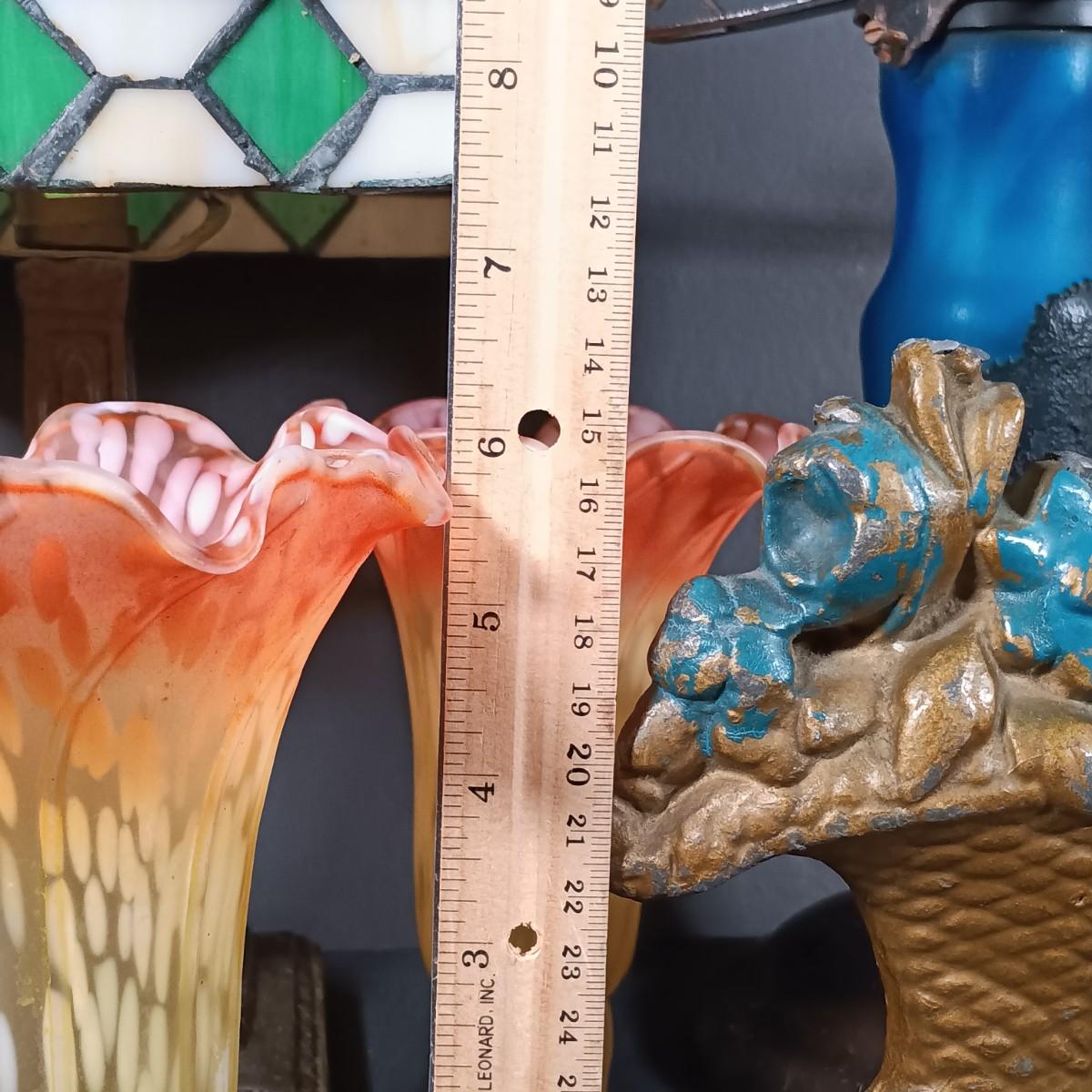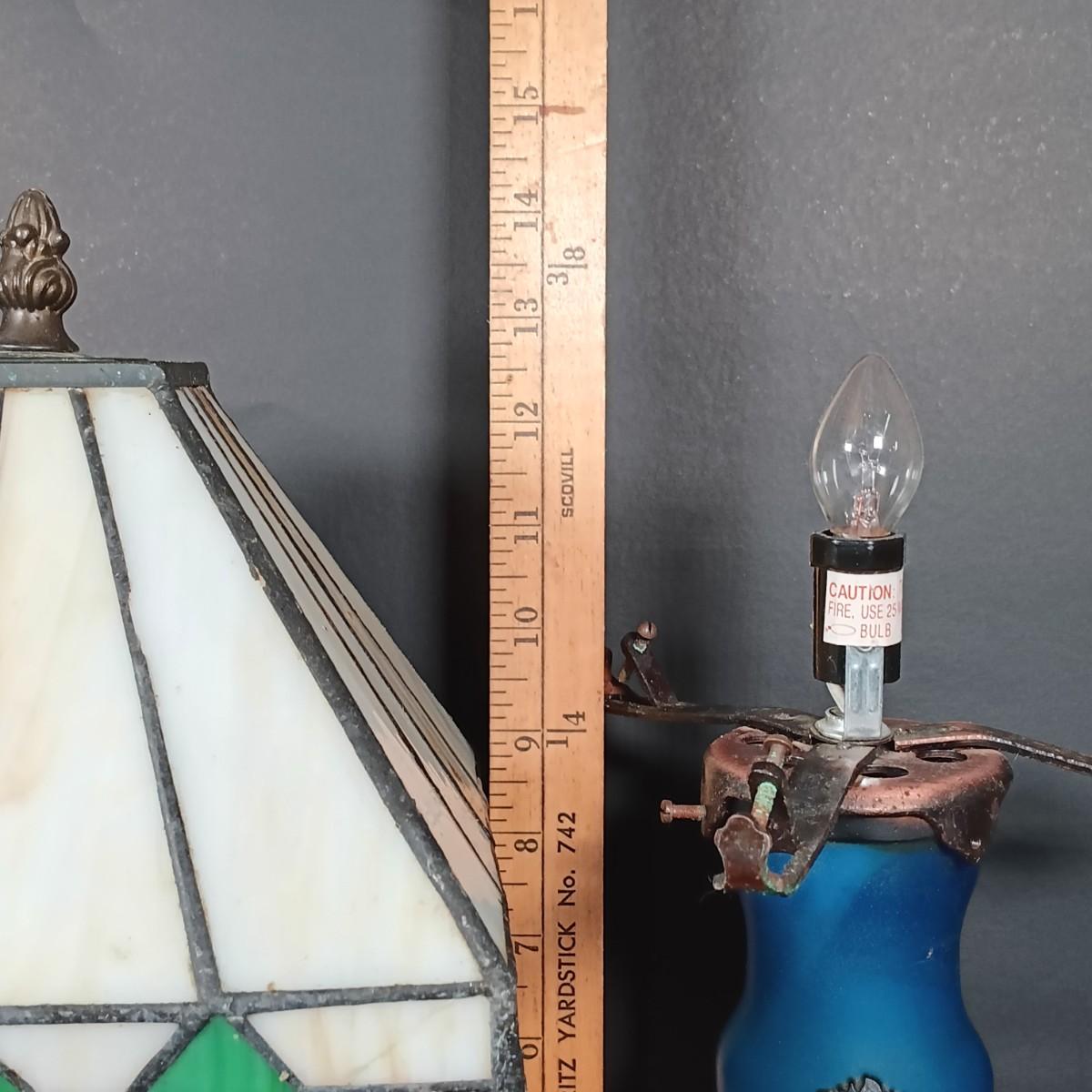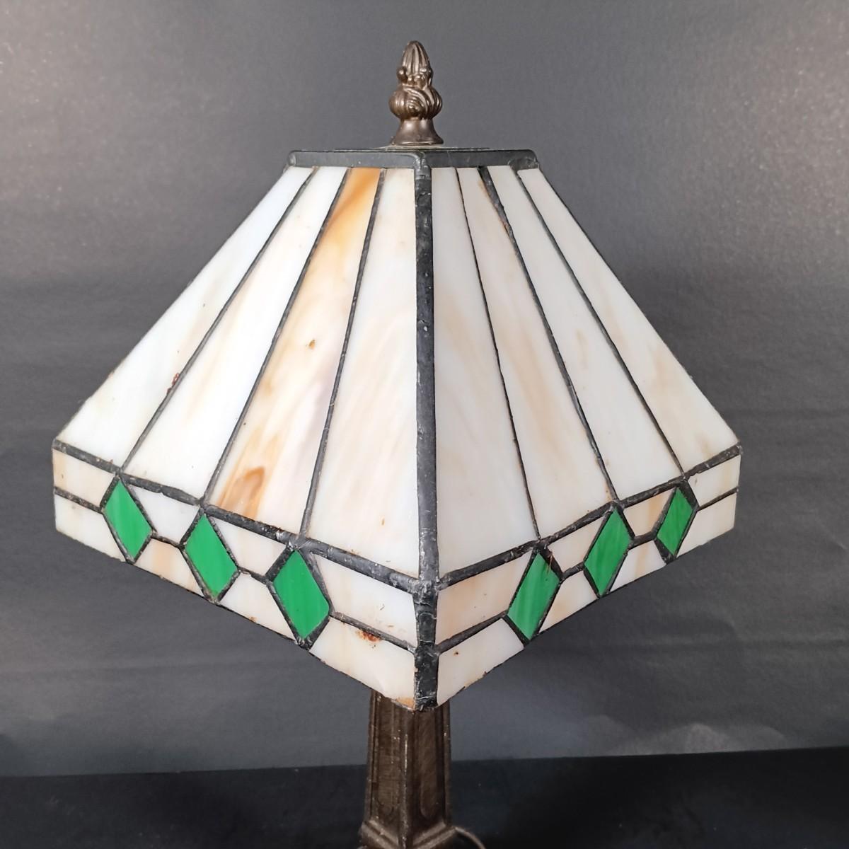 The stained glass lamp has some cracked panels.