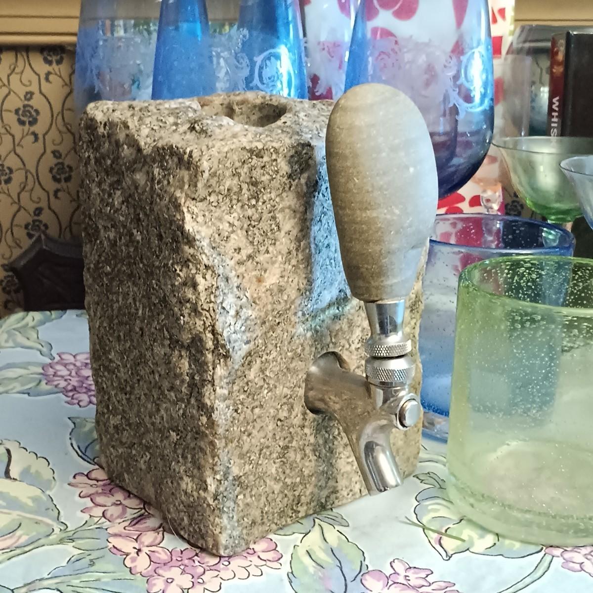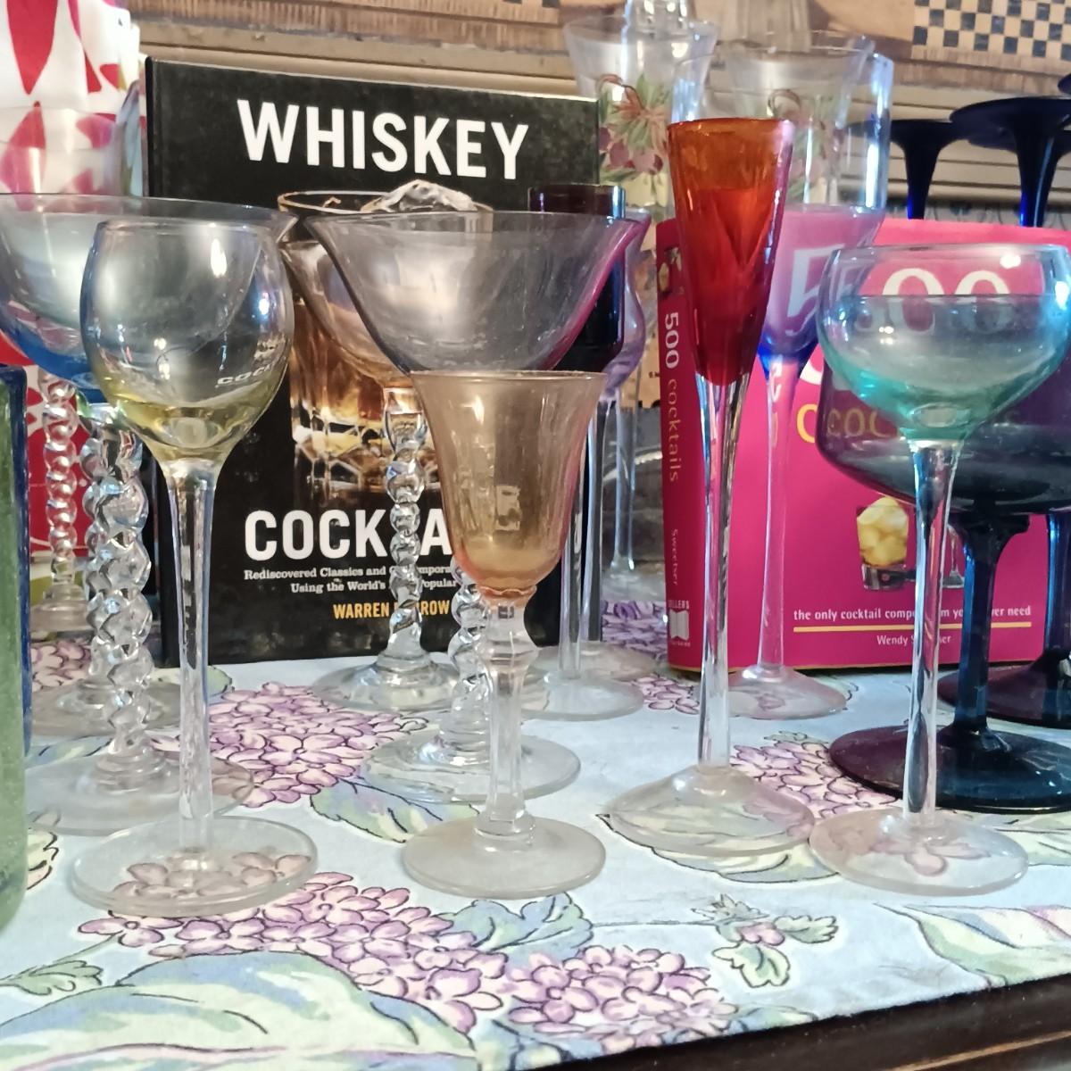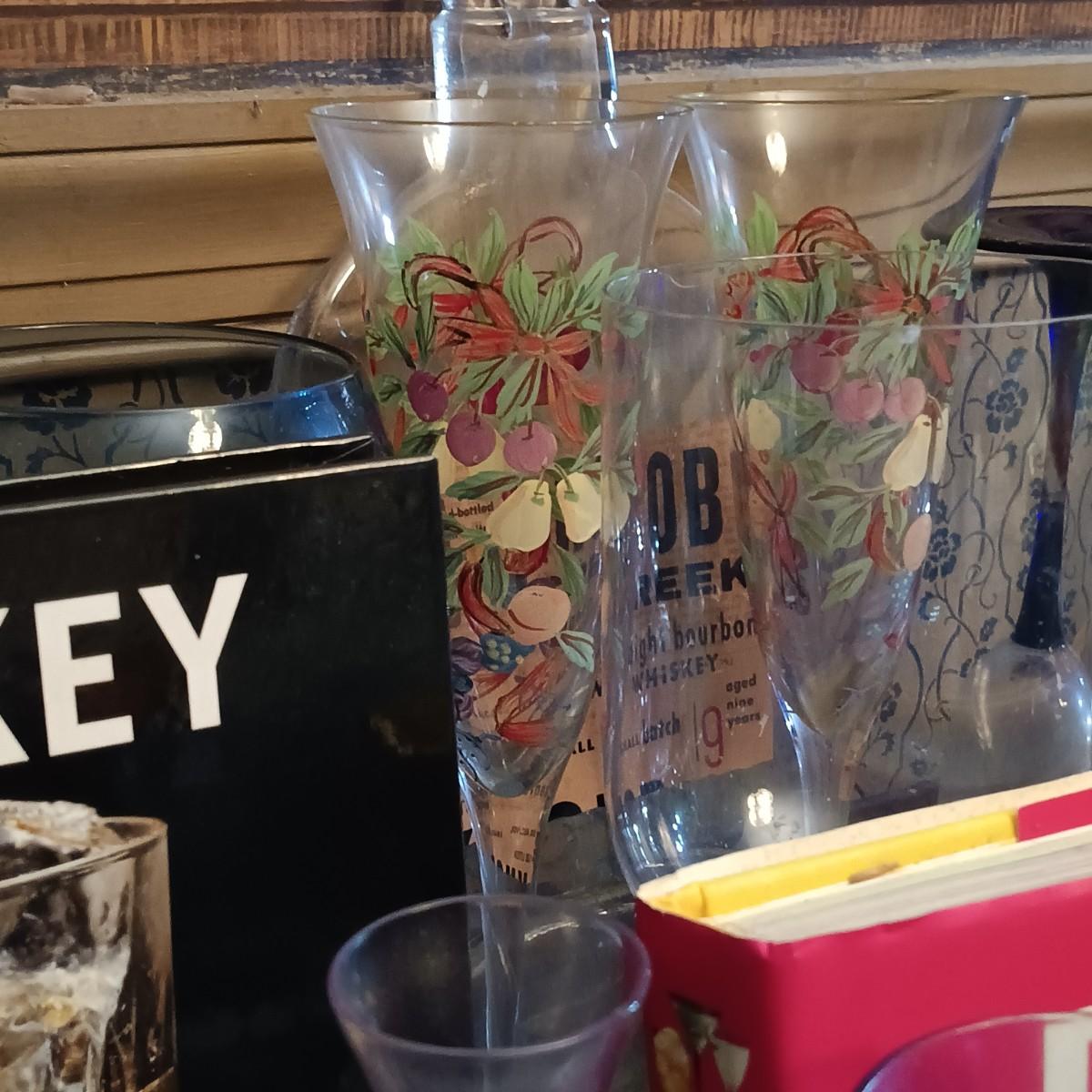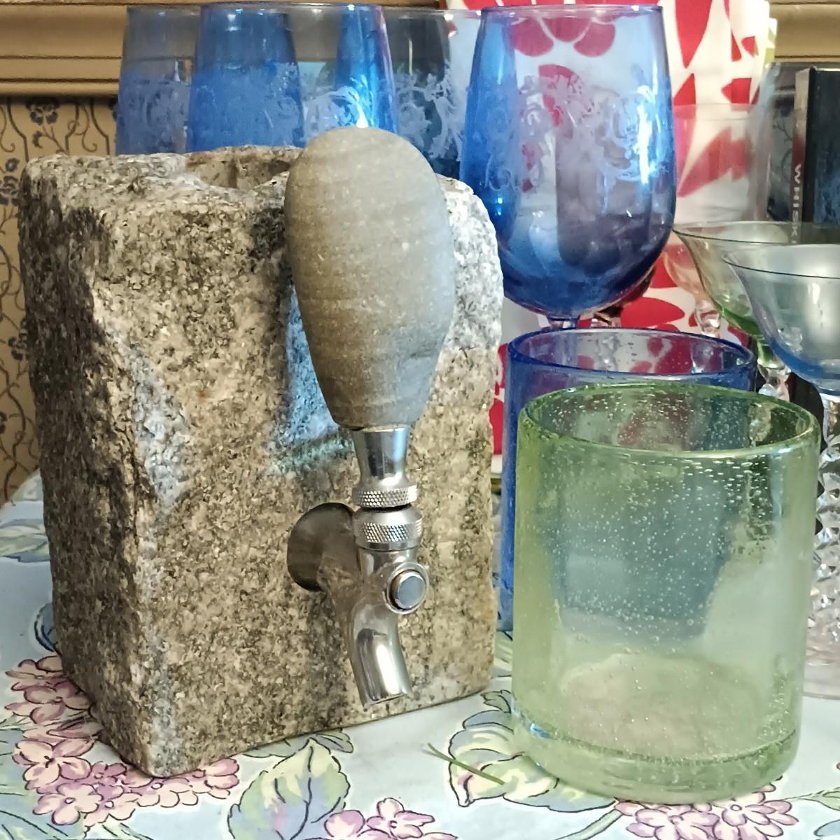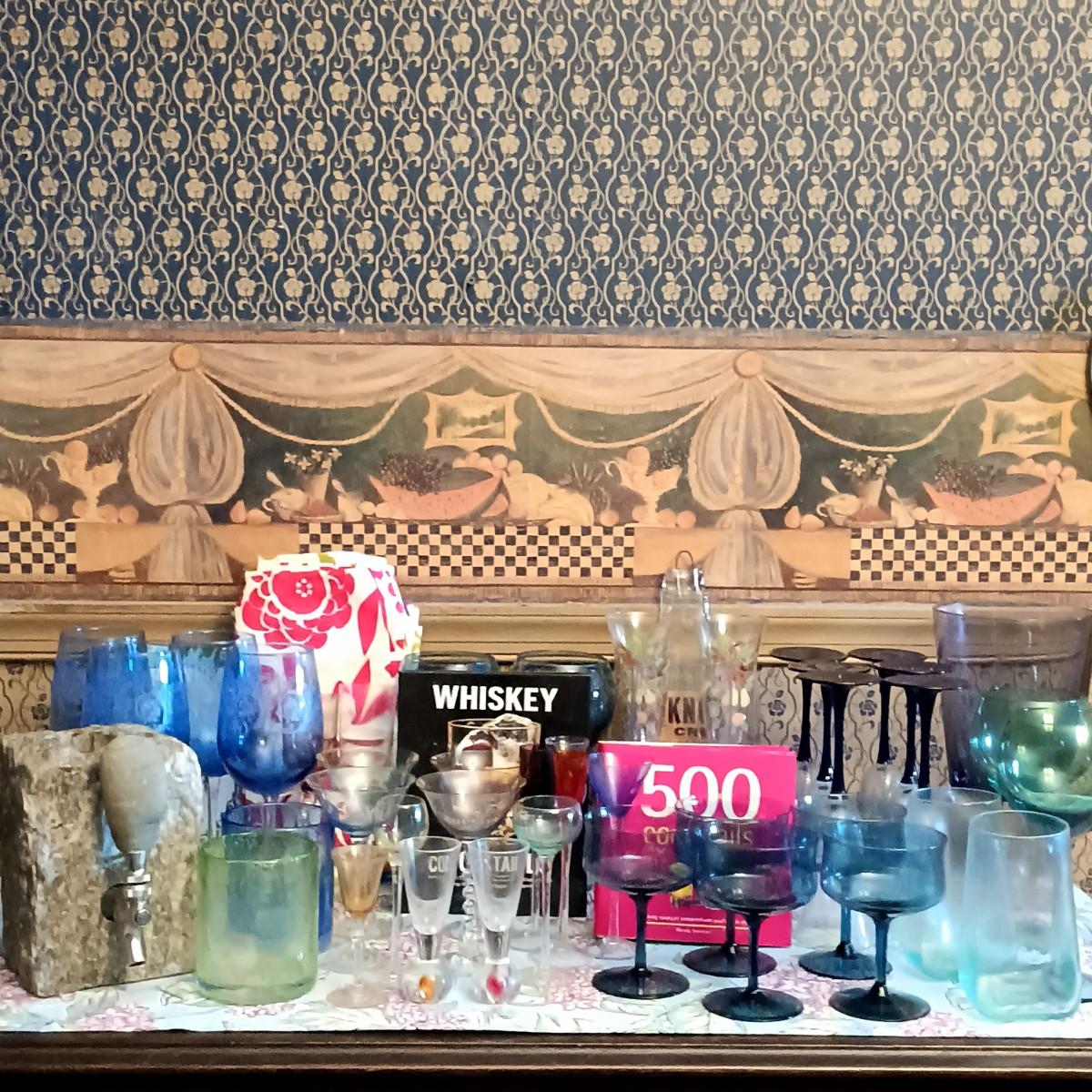 LOT 124: Bar Collection- Granite Drink Dispenser with a Large Collection of Vintage Glassware and More