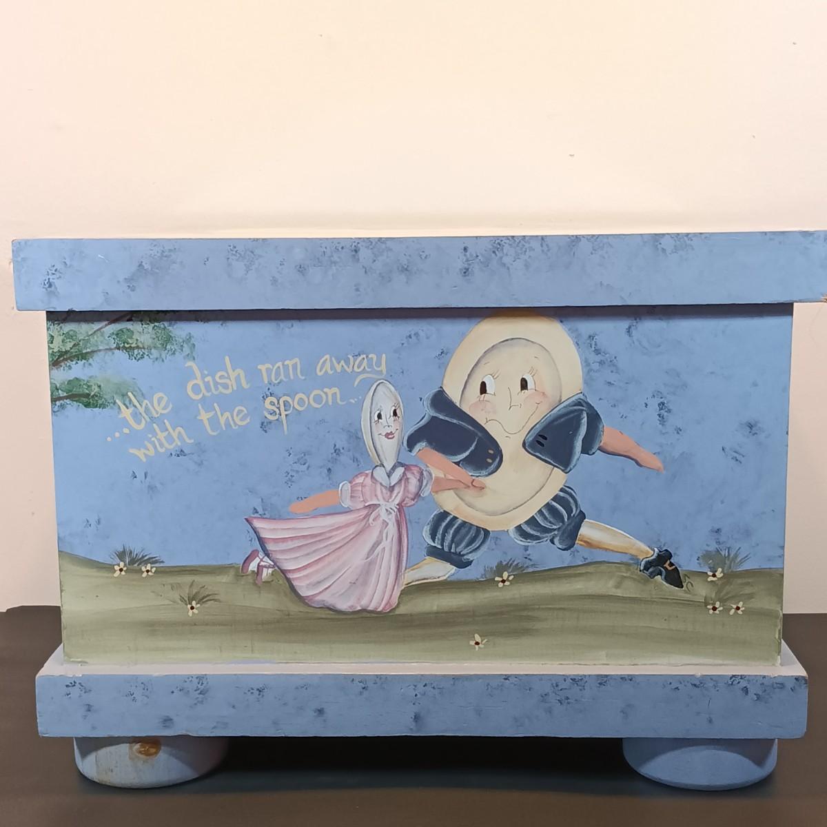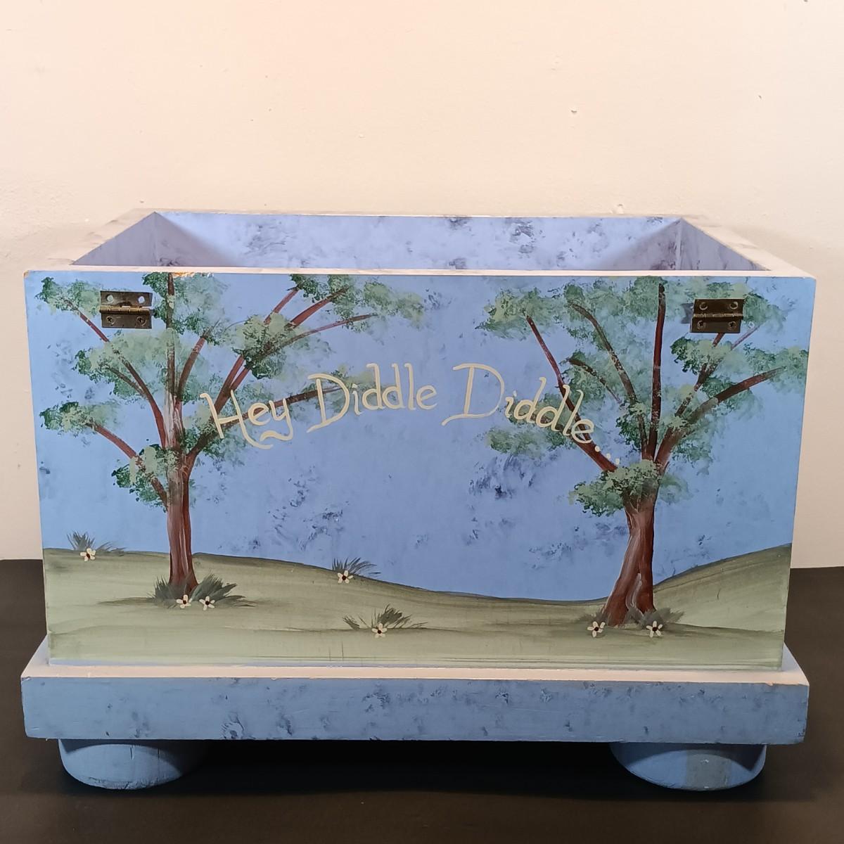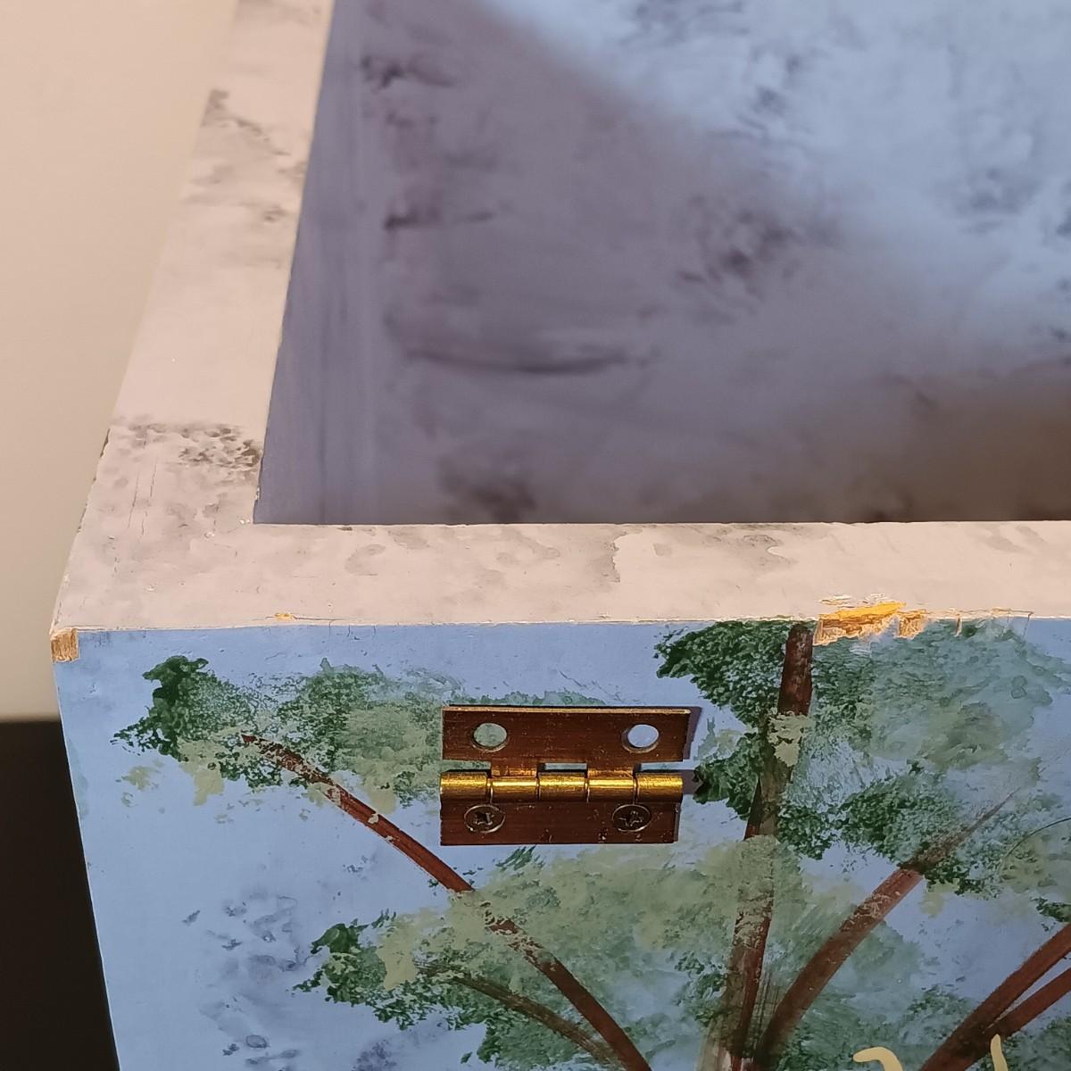 Toy Box lid has come free of the hinges and is missing part of the chain inside.