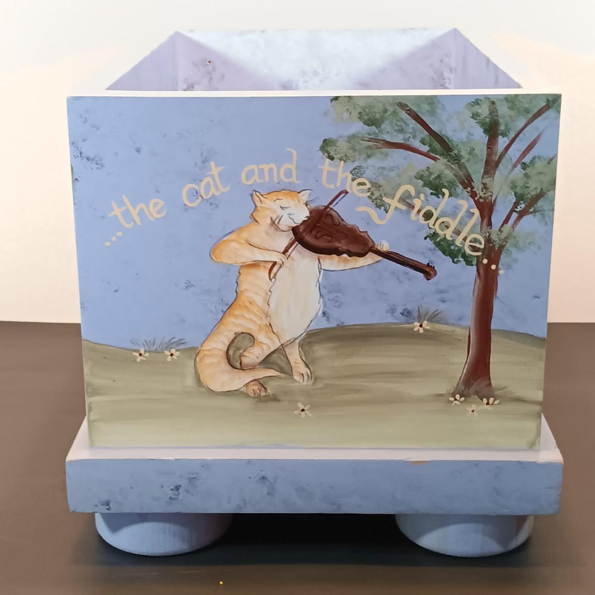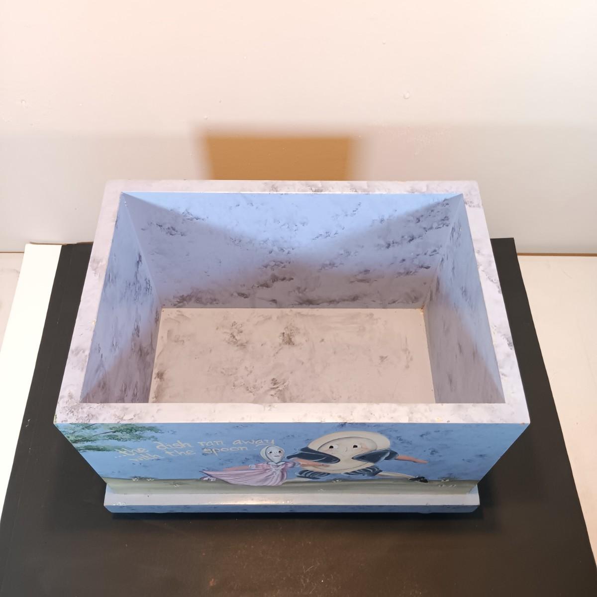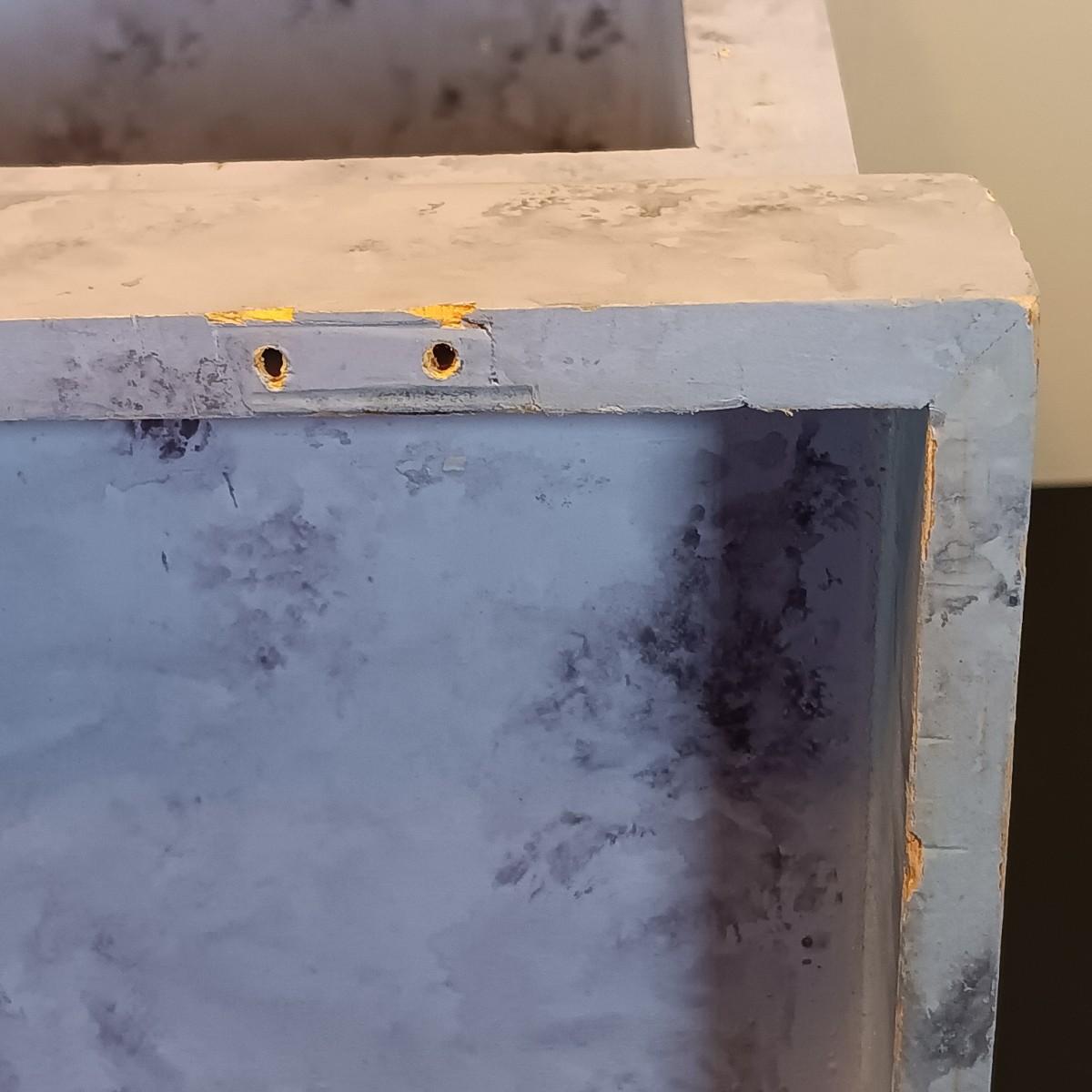 Toy Box lid has come free of the hinges and is missing part of the chain inside.