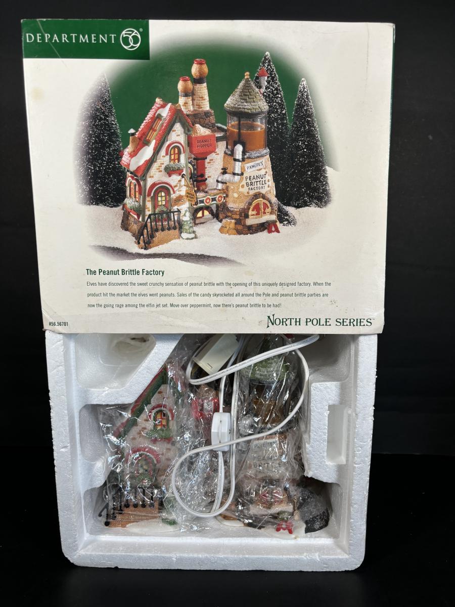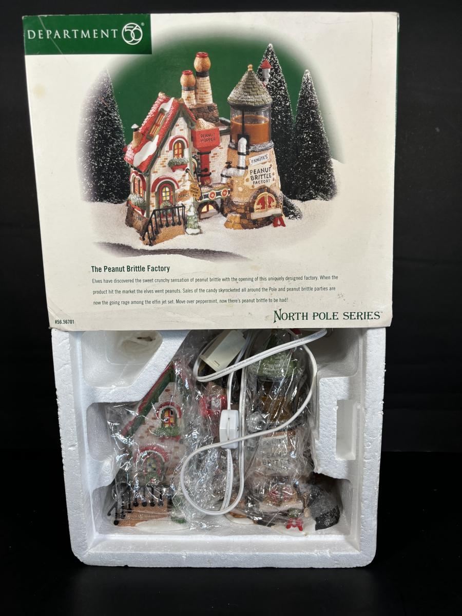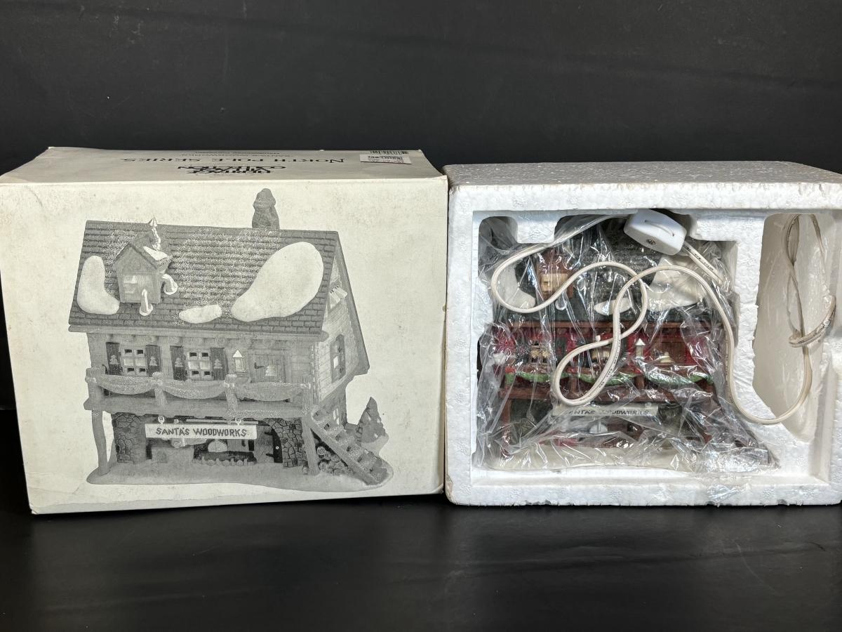 LOT 138: Dept 56 Santa's Sleigh Launch, Mini Donut Shop, Santa's Woodworks, The Peanut Brittle Factory & Others