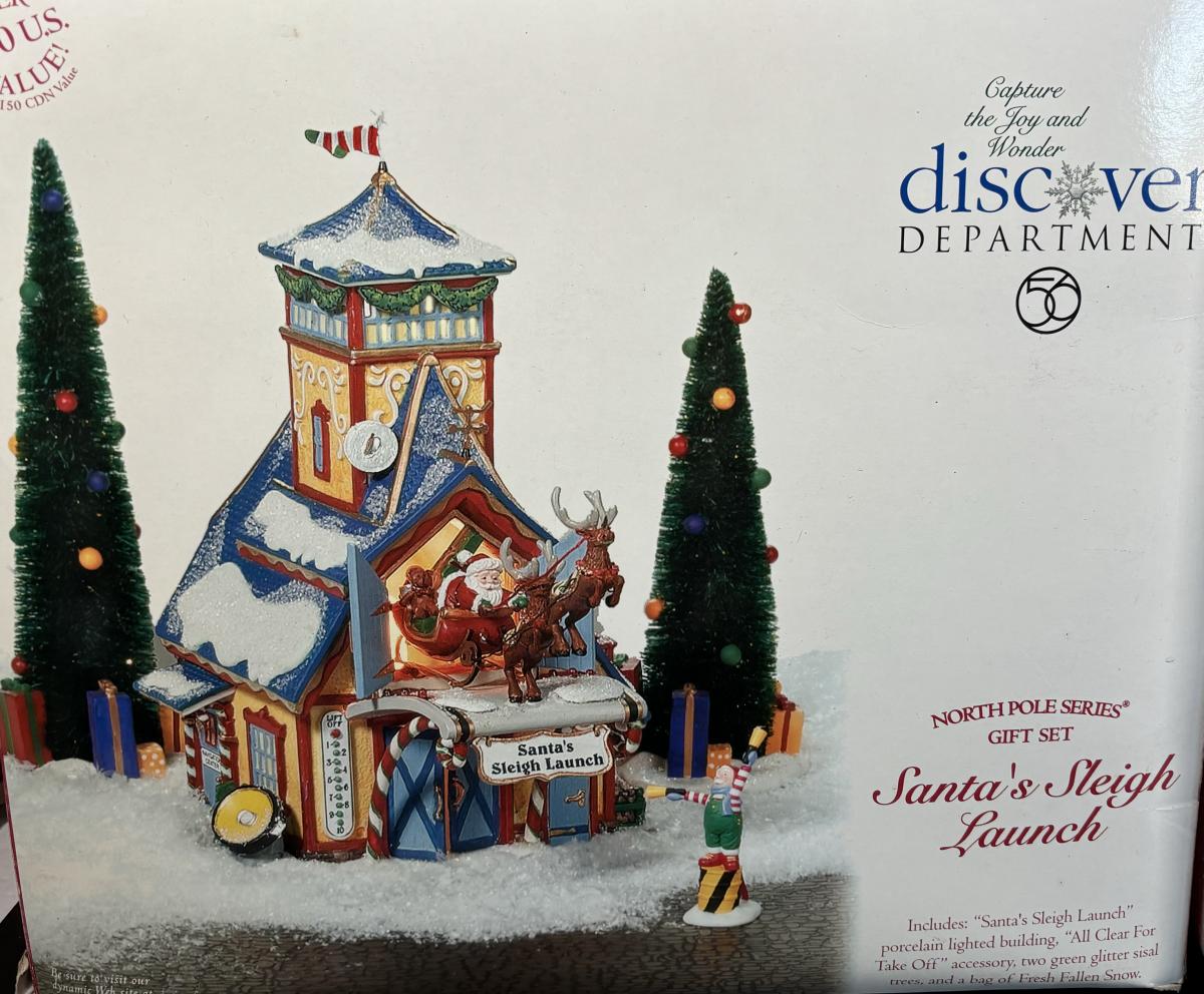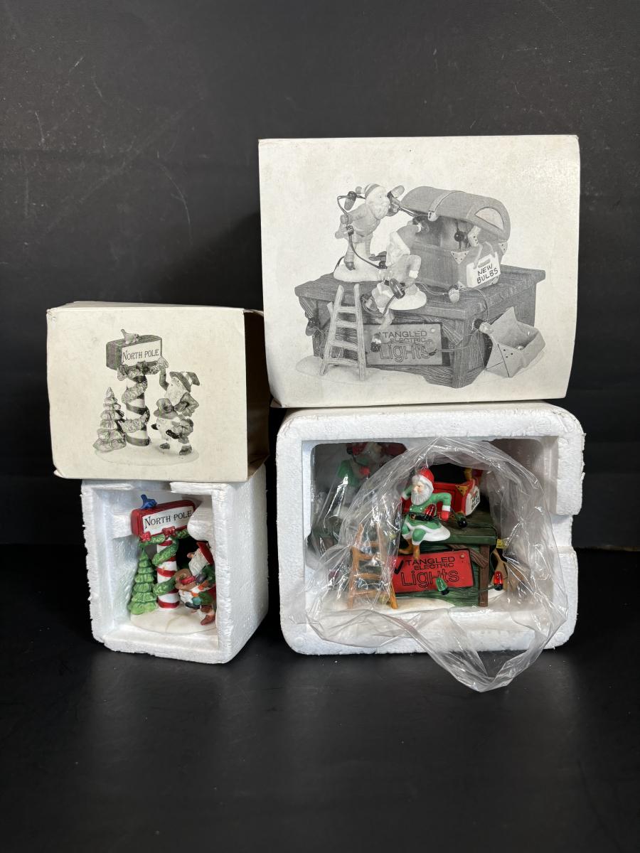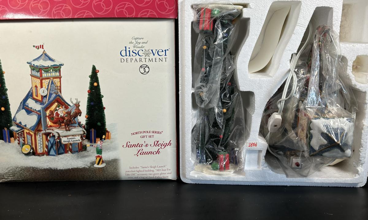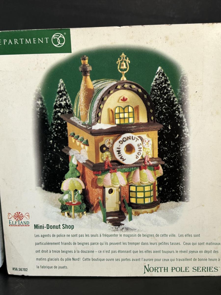 LOT 138: Dept 56 Santa's Sleigh Launch, Mini Donut Shop, Santa's Woodworks, The Peanut Brittle Factory & Others