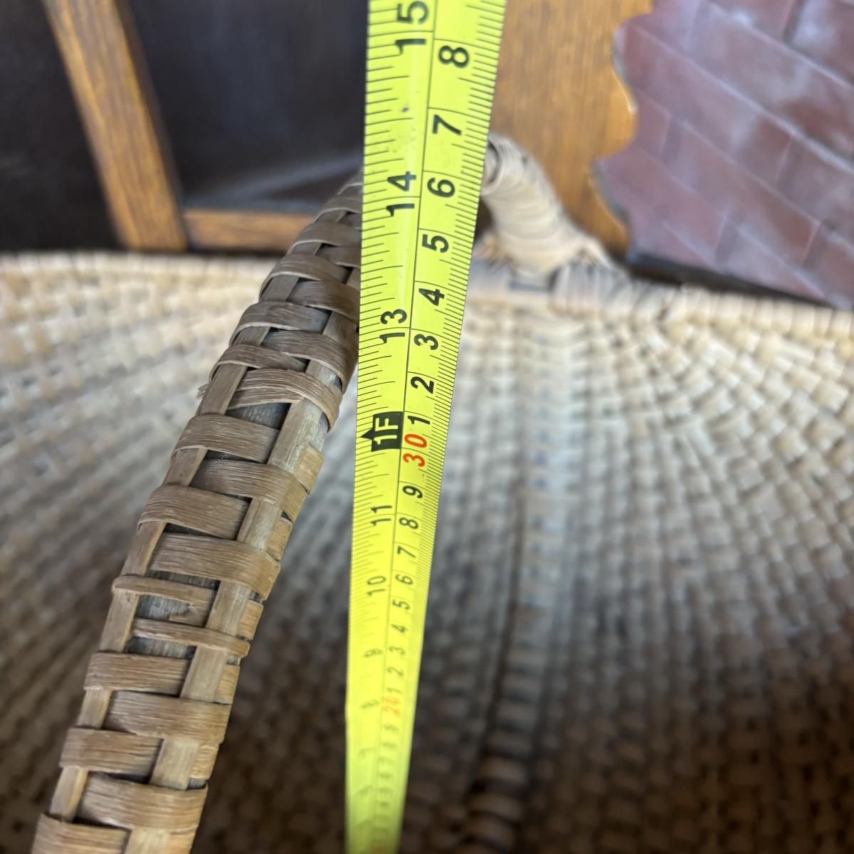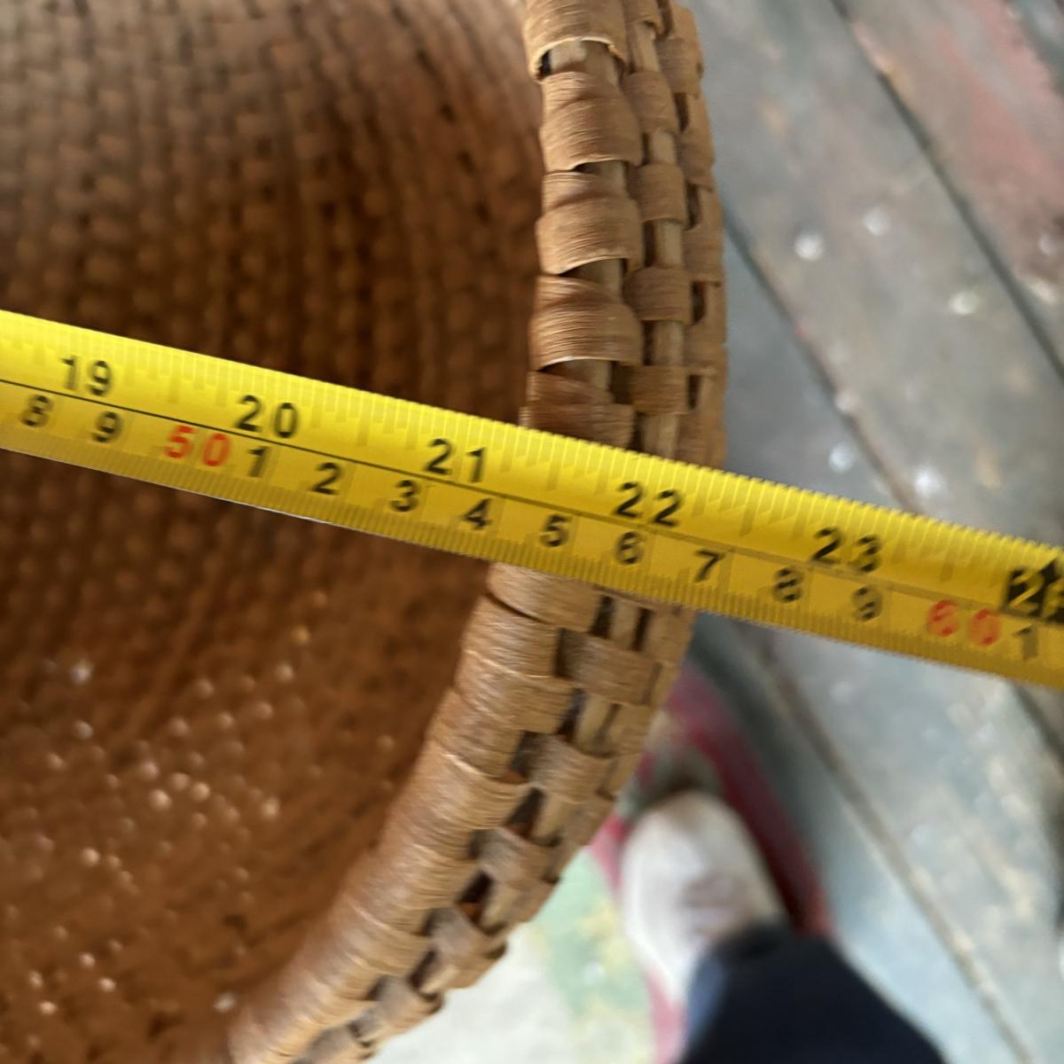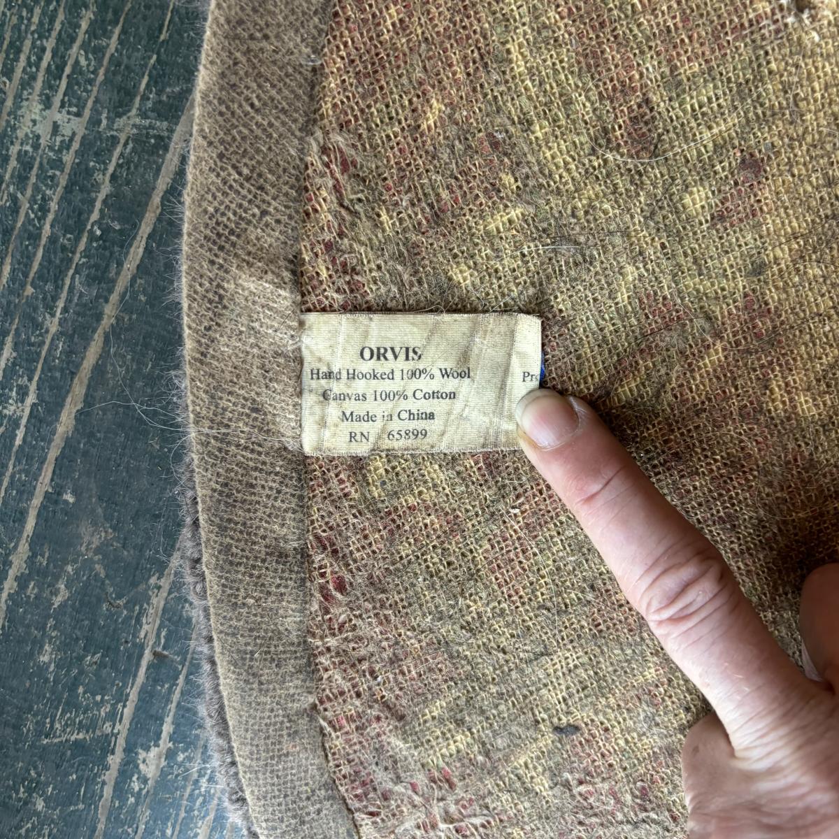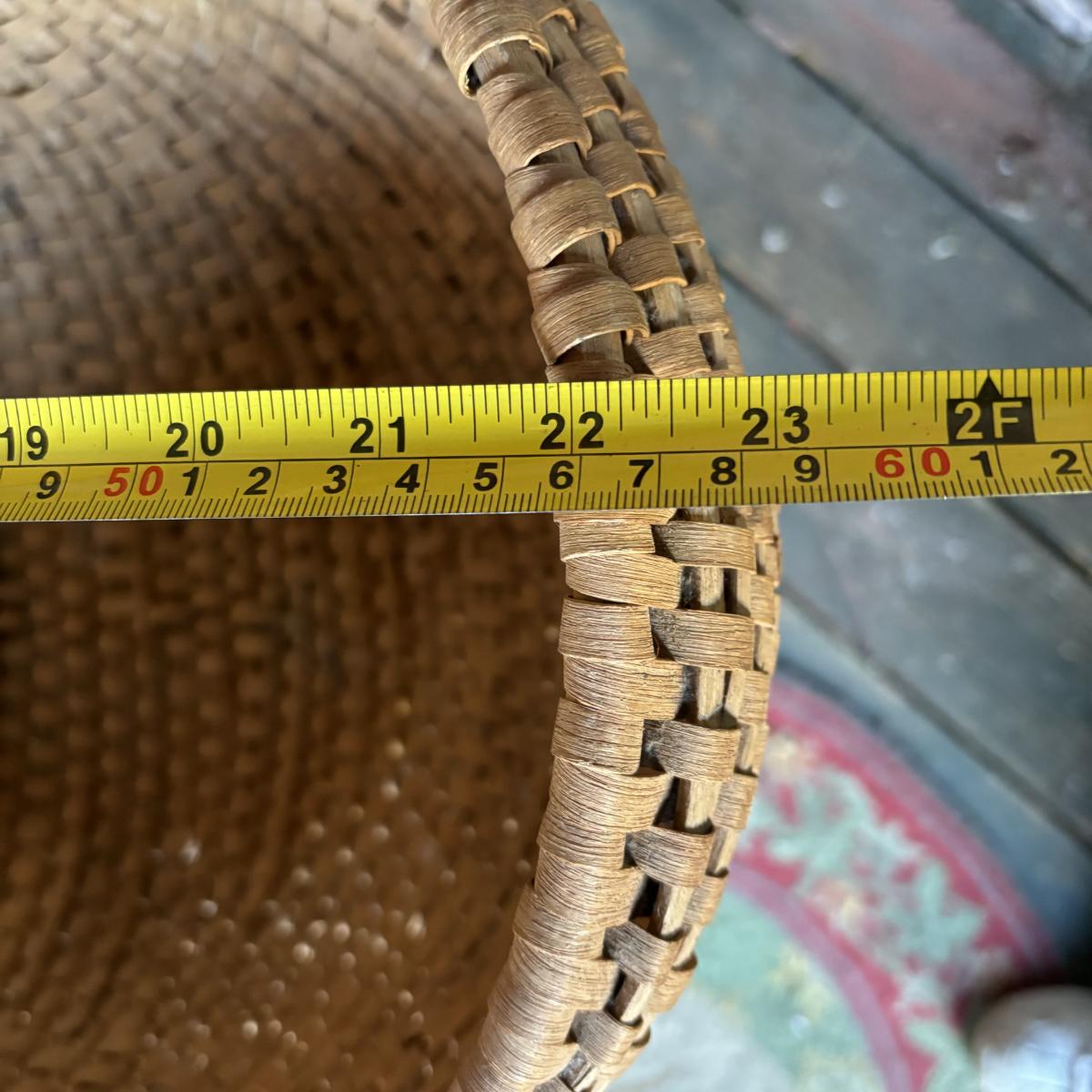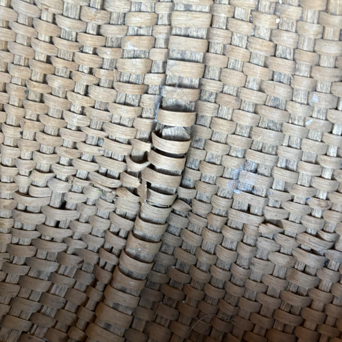 LOT 147: Vintage Cane Bottom Rocking Chair, Wool Area Rug & Gathering/Egg Basket