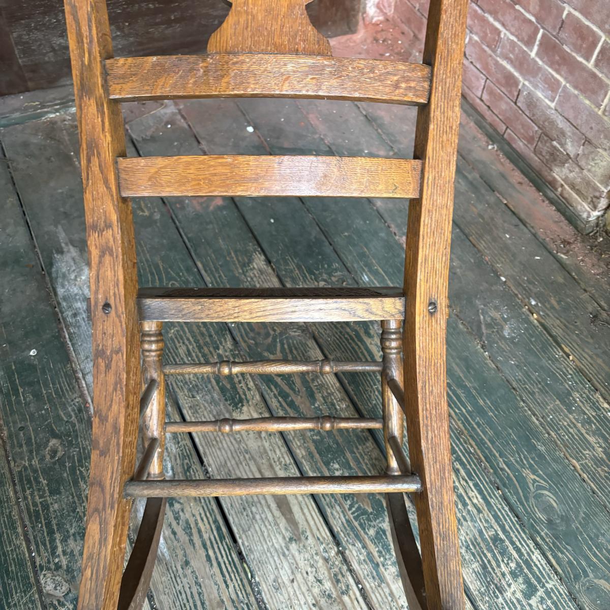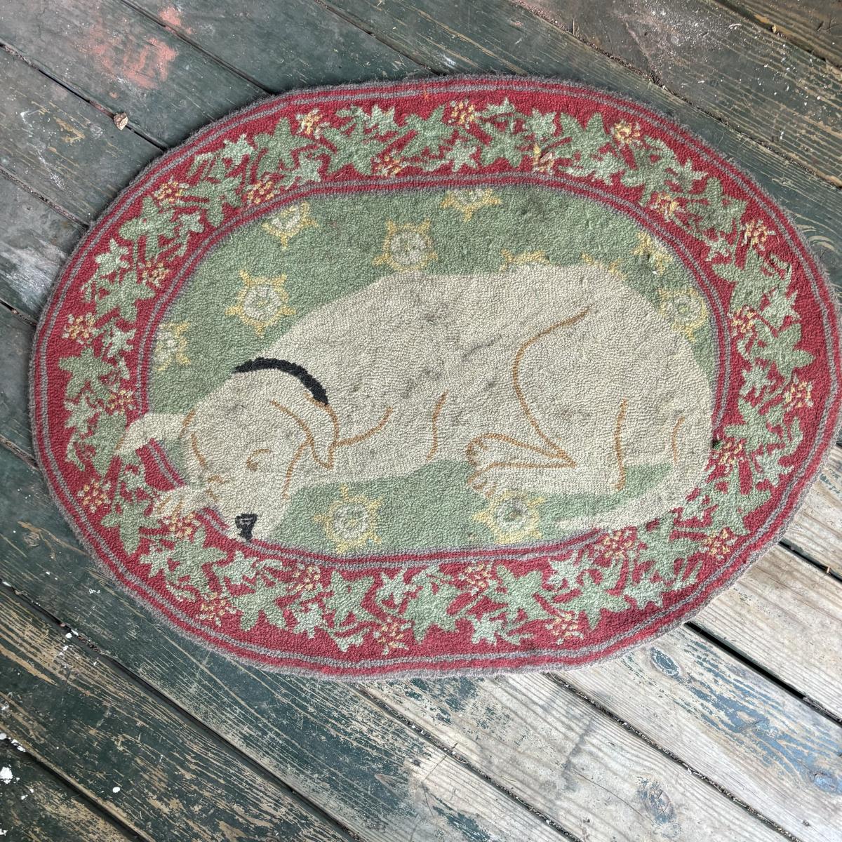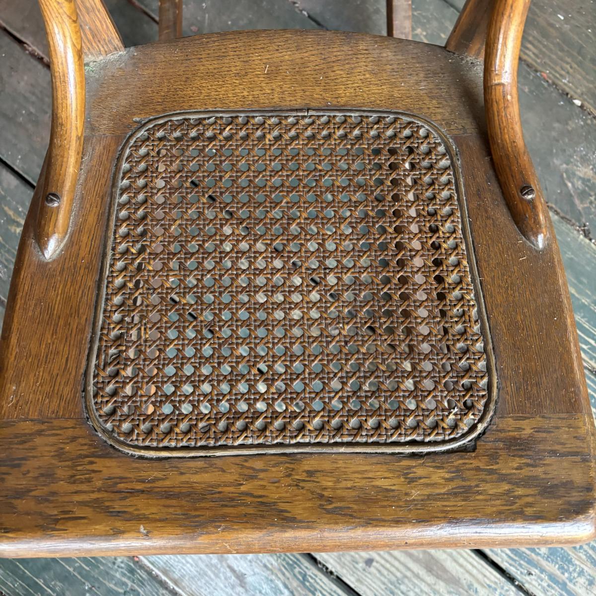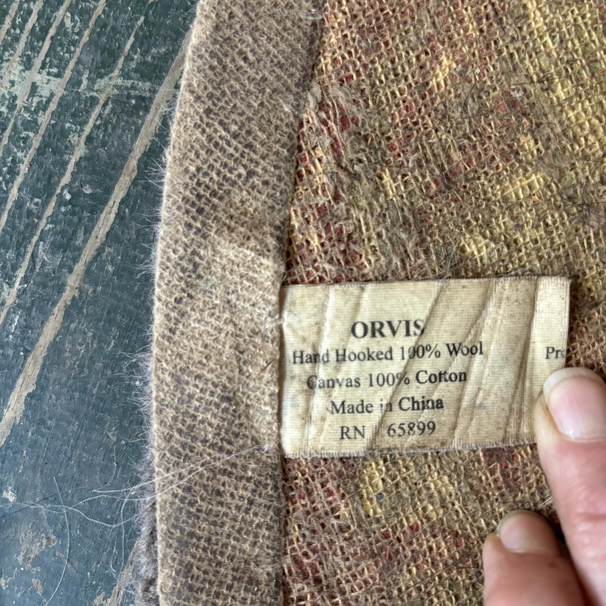 LOT 147: Vintage Cane Bottom Rocking Chair, Wool Area Rug & Gathering/Egg Basket