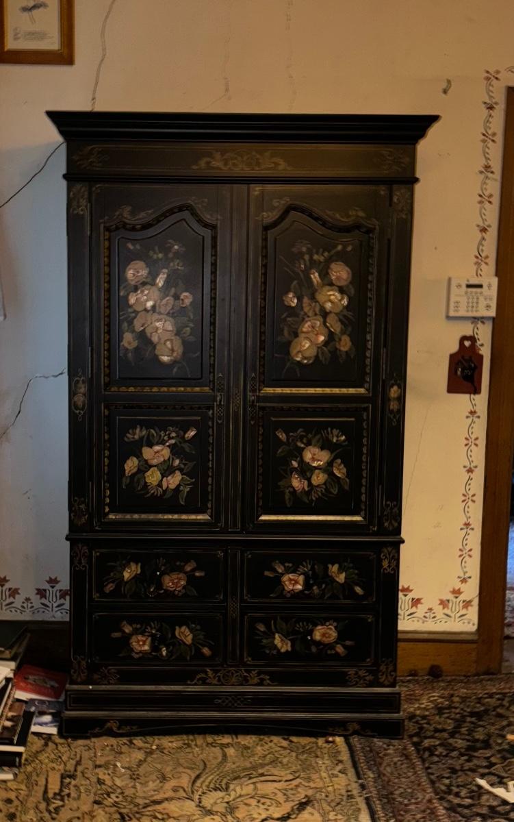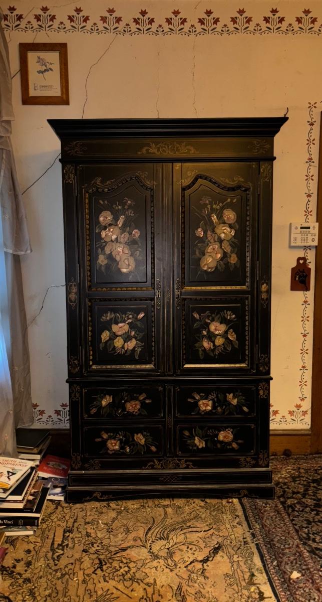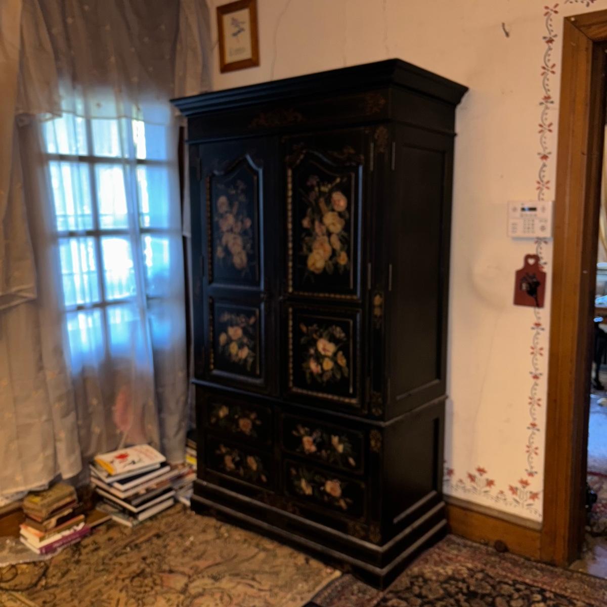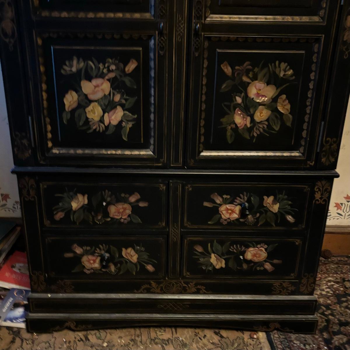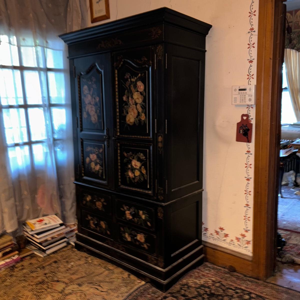 LOT 148: Black & Floral Painted Armoire